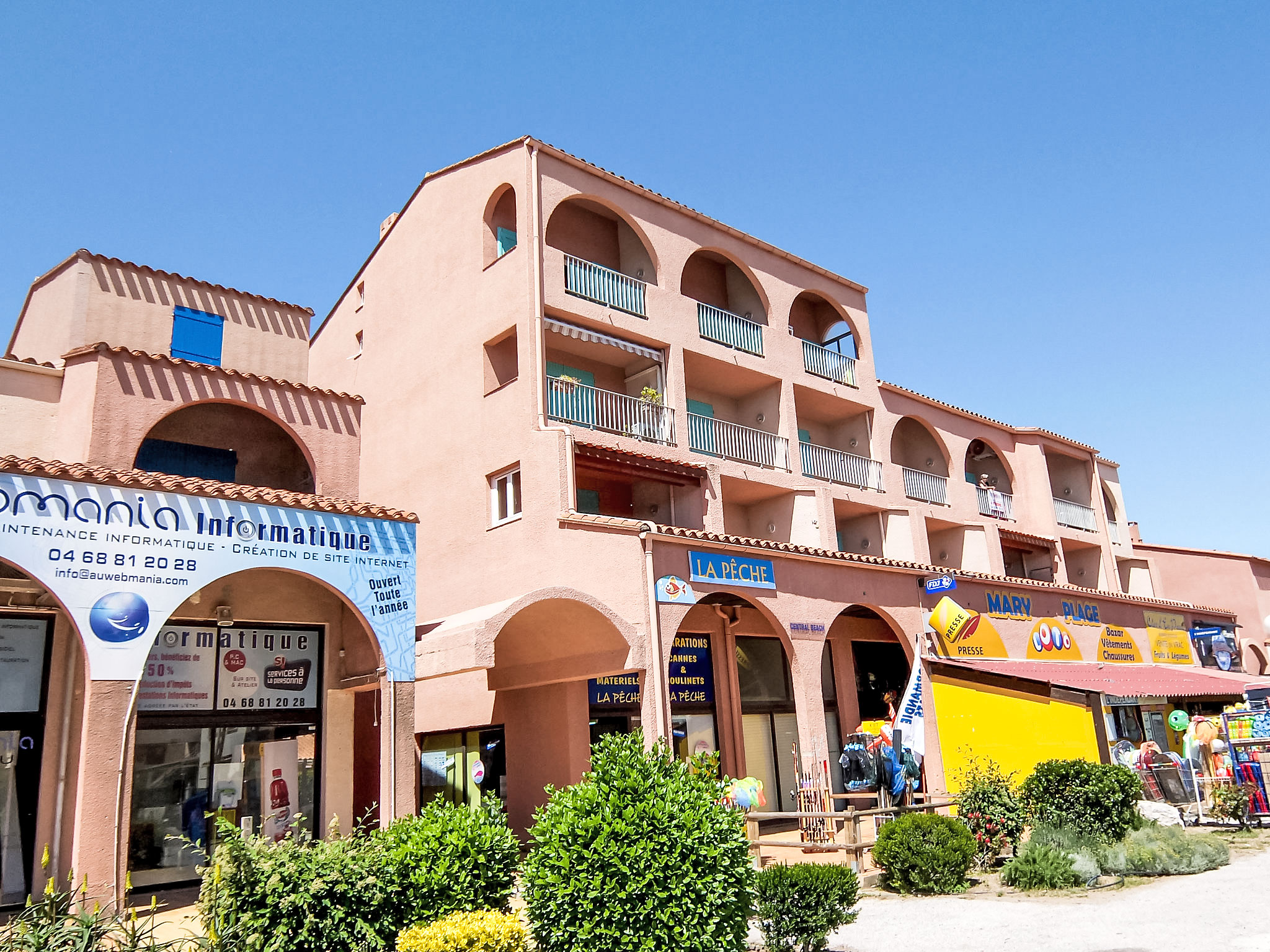 Residenz "Le Central Beach", auf 3 Stockwerken. Im Ortszentrum von Argelès Plage, zentrale, belebte Lage, 500 m vom Meer, 500 m vom Strand. Einkaufsgeschäft, Supermarkt 100 m, Einkaufszentrum 5.5 km, Restaurant 300 m, Bar 400 m, Fußgängerzone 450 m, Bahnstation "Argelès sur Mer" 4 km, Sandstrand 500 m, Tauchzentrum 1.6 km. Sporthafen 1.5 km, Golfplatz (27 Loch) 12 km, Reitstall 2 km. Nahe gelegene Sehenswürdigkeiten: Plage du Racou 3 km, Aqualand Saint-Cyprien 6 km. Die Schlüsselübergabe findet bei der Agentur Interhome in Saint-Cyprien statt, 10 km.