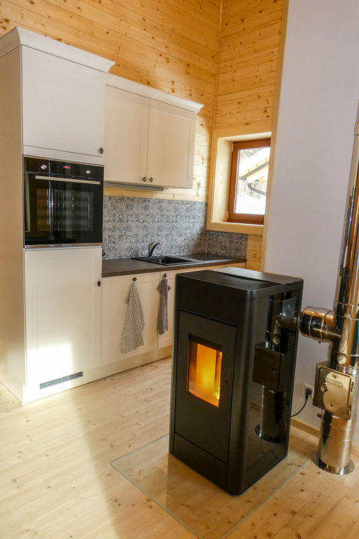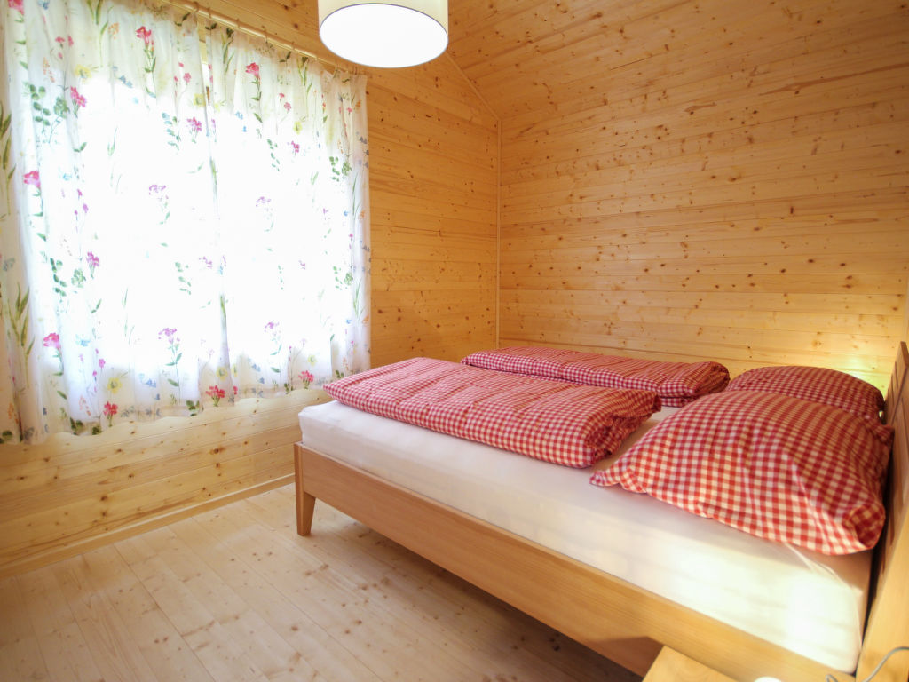 3-Zimmer-Chalet 60 m2. Objekt geeignet für 4 Erwachsene. Mit viel Holz eingerichtet: Wohn-/Esszimmer mit Sat-TV und Holzofen. Ausgang zur Loggia. 1 Doppelzimmer mit 1 Doppelbett. 1 Zimmer mit 2 Betten. Offene Küche (Backofen, Geschirrspüler, 4 Glaskeramikherd Platten, Toaster, Wasserkocher, elektrische Kaffeemaschine). Dusche, sep. WC. Liegestühle (2), Loggia. Zur Verfügung: Waschmaschine. Bitte beachten: Nichtraucher-Haus.