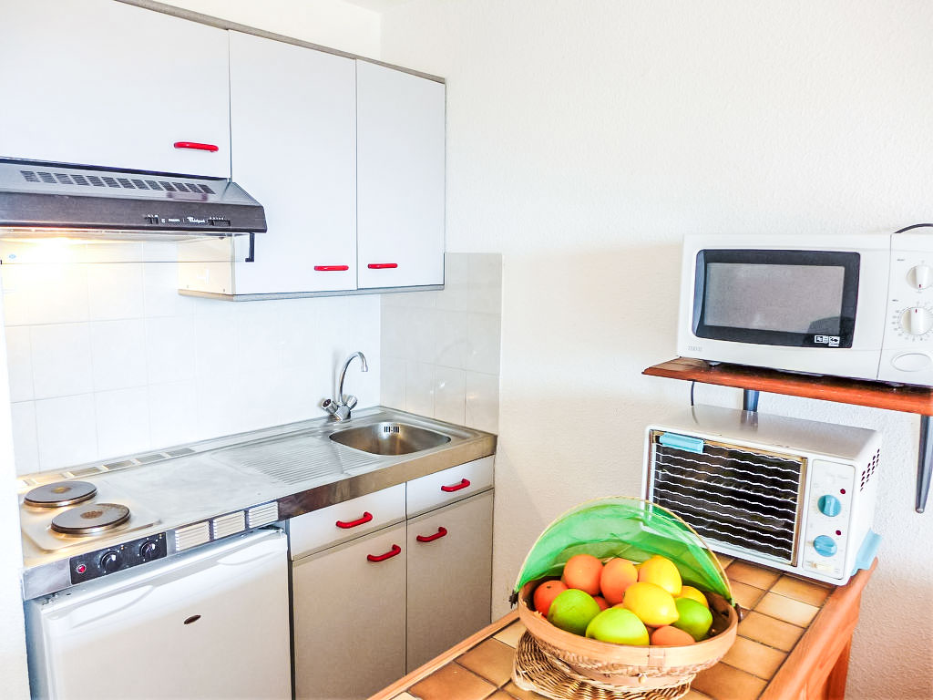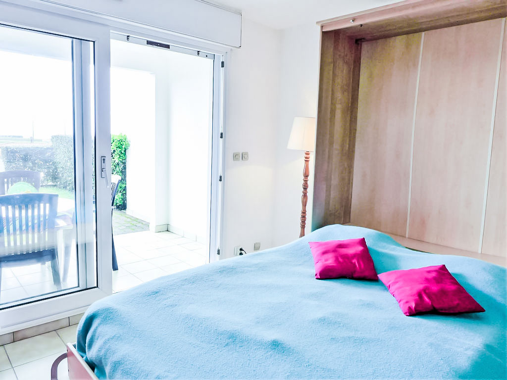 1-Zimmer-Wohnung 29 m2, im Erdgeschoss. Einfach und schön eingerichtet: Wohn-/Esszimmer mit 1 Wandklappbett (140 cm, Länge 190 cm), TV (Flachbildschirm). Ausgang zur Terrasse. Kabine mit 1 x 2 Etagenbetten (90 cm, Länge 190 cm). Offene Küche (Mini-Backofen, 2 Glaskeramikherd Platten, Mikrowelle, elektrische Kaffeemaschine). Dusche, sep. WC. E-Heizung. Terrasse 8 m2, Westlage, Gartensitzplatz 25 m2. Terrassenmöbel. Zur Verfügung: Waschmaschine, Bügeleisen, Haartrockner. Parkplatz Nr. 125. Inserat einer Privatperson nach Artikel 155, IV, CGI. 641250005327D