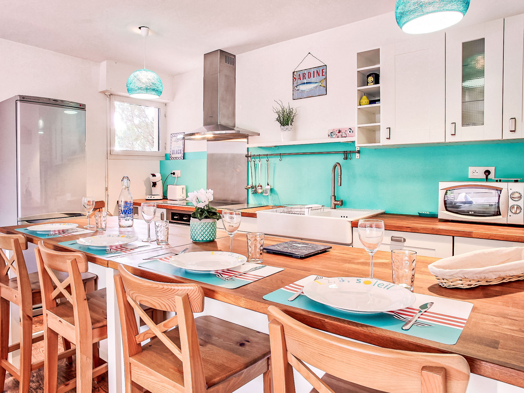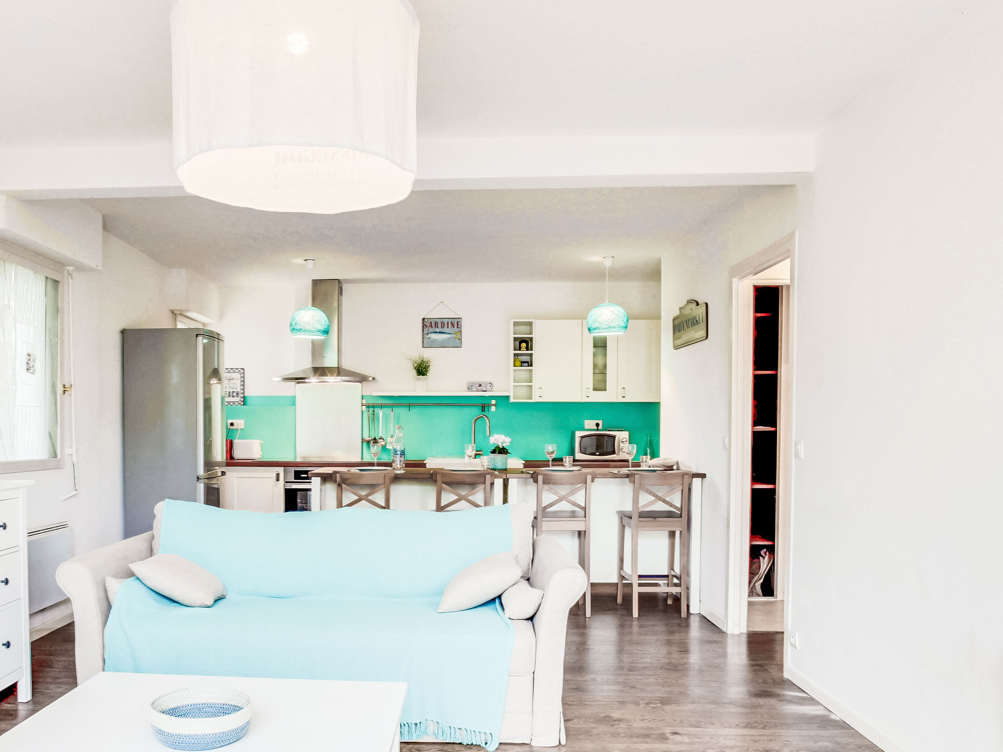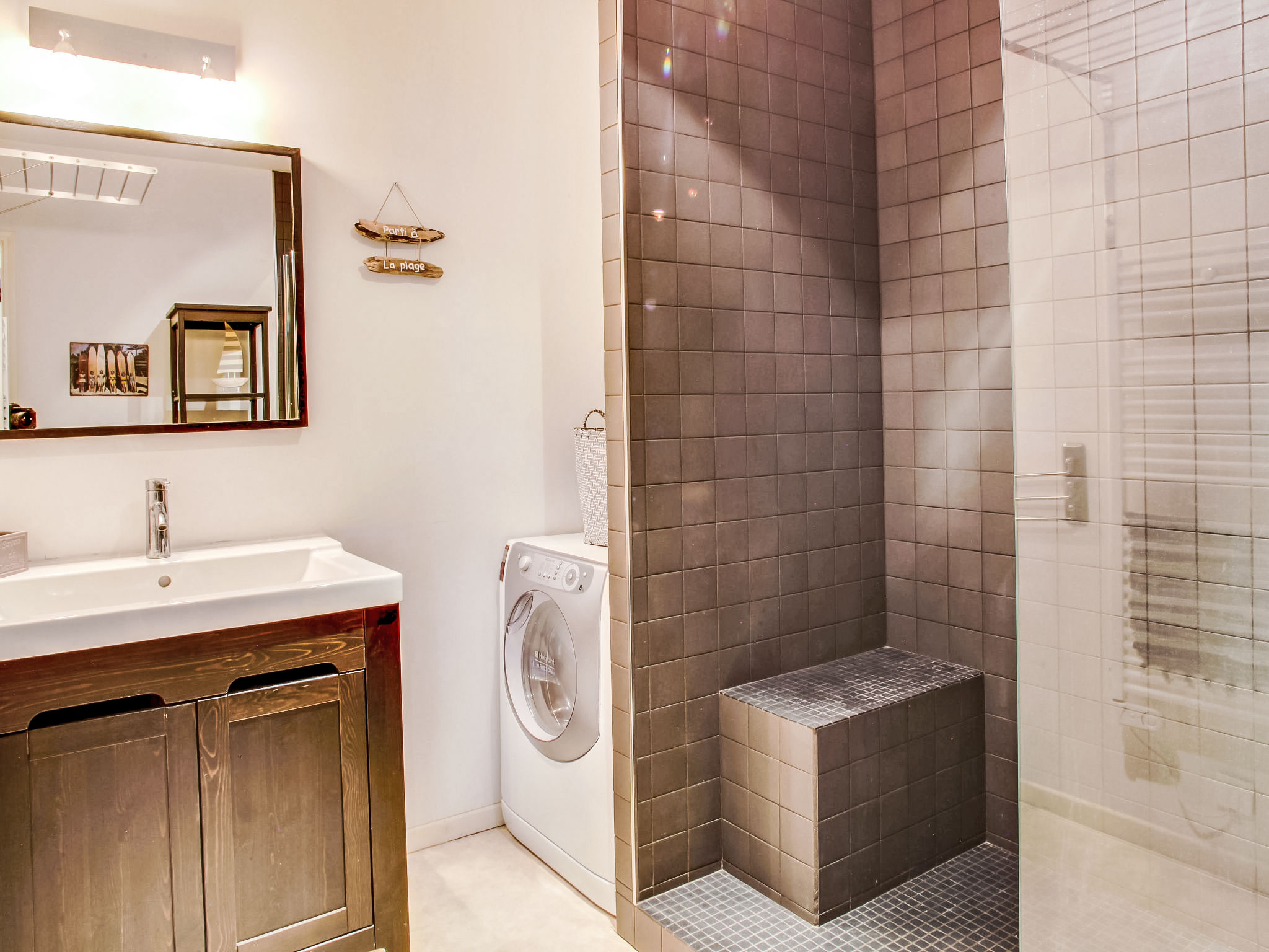 2-Zimmer-Wohnung 50 m2, im Erdgeschoss. Komfortabel und schön eingerichtet: Wohnzimmer mit 1 Diwanbett (130 cm, Länge 190 cm). Ausgang zur Terrasse. 1 Zimmer mit 2 Betten (90 cm, Länge 200 cm). Offene Küche (Backofen, Geschirrspüler, 4 Induktionskochplatten, elektrische Kaffeemaschine) mit Esstisch. Dusche, sep. WC. Terrasse 20 m2, Ostlage. Terrassenmöbel. Zur Verfügung: Waschmaschine. Internet (Wireless LAN, extra). Bitte beachten: geeignet für Familien. Nichtraucher-Unterkunft. Rauchmelder. Inserat einer Privatperson nach Artikel 155, IV, CGI. 400650000123J