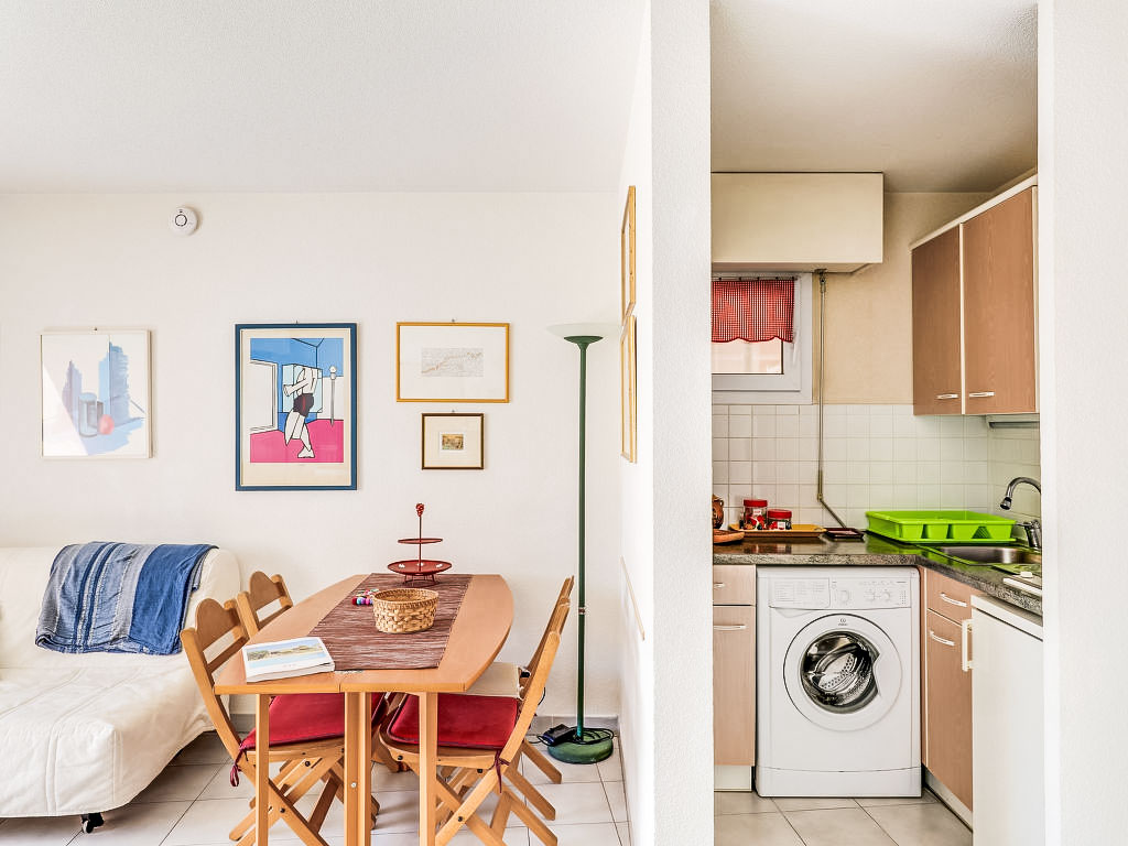 2-Zimmer-Wohnung 36 m2 im 2. Stock. Wohn-/Esszimmer mit 1 Doppeldiwanbett (1 x 140 cm, Länge 190 cm), TV und elektrischem Rollladen. Ausgang zur Terrasse. 1 Zimmer mit 1 Doppelbett (1 x 140 cm, Länge 190 cm). Kochnische (2 Kochplatten, Mikrowelle, Tiefkühler, elektrische Kaffeemaschine). Bad, sep. WC. Terrasse 9 m2. Terrassenmöbel. Zur Verfügung: Waschmaschine. Bitte beachten: kein Parkplatz. TV nur FR, IT. Rauchmelder. Inserat einer Privatperson nach Artikel 155, IV, CGI.