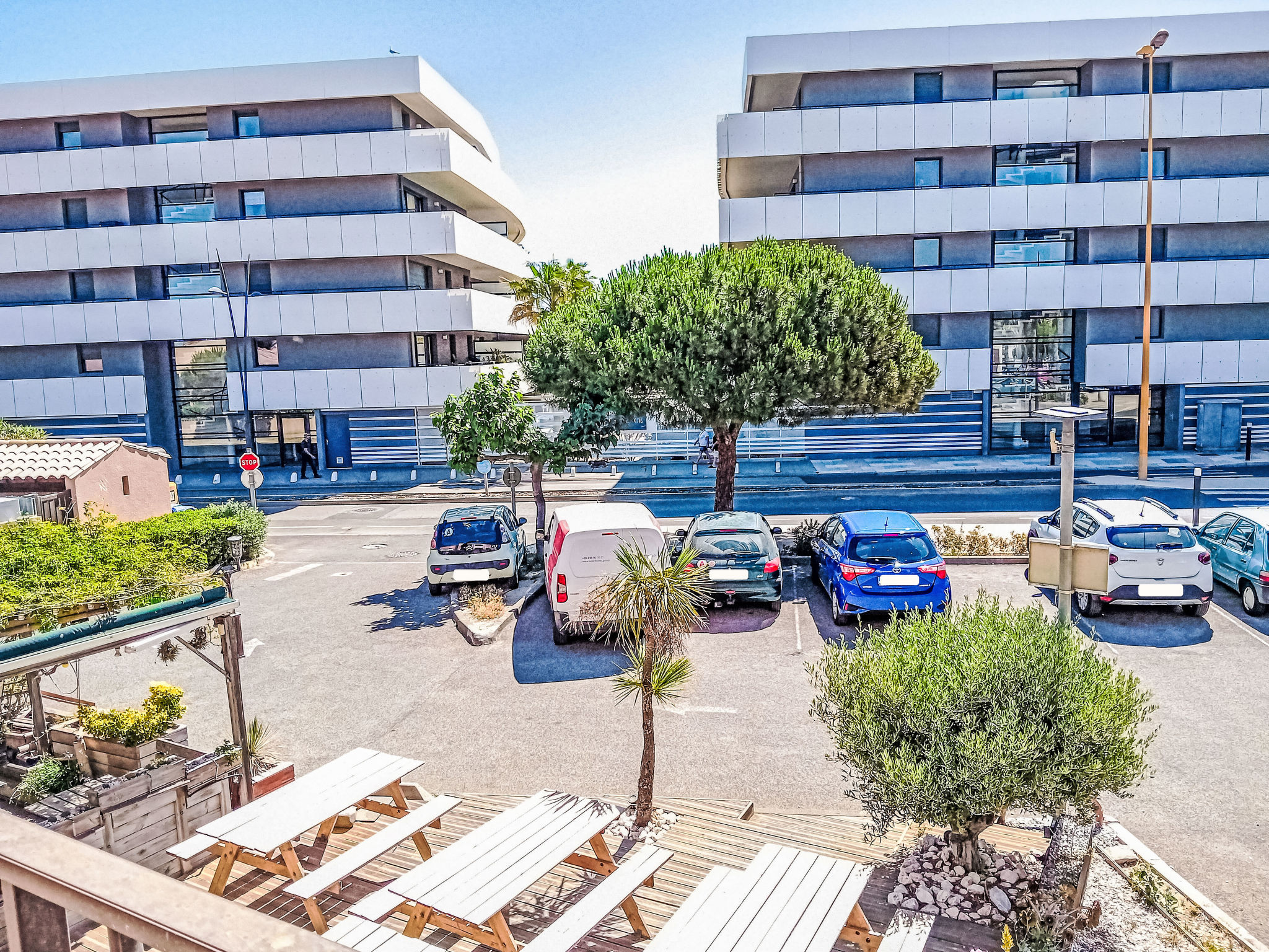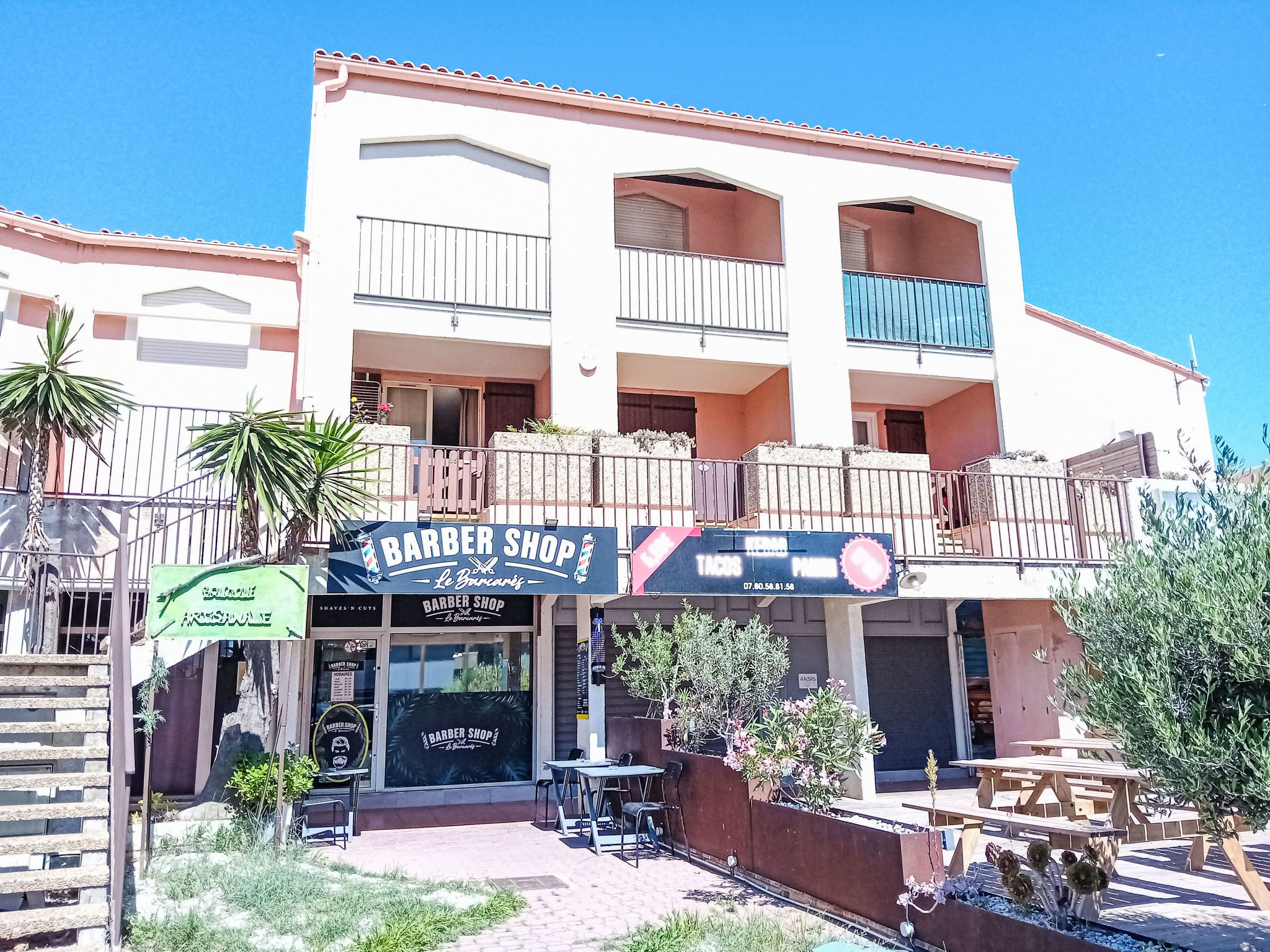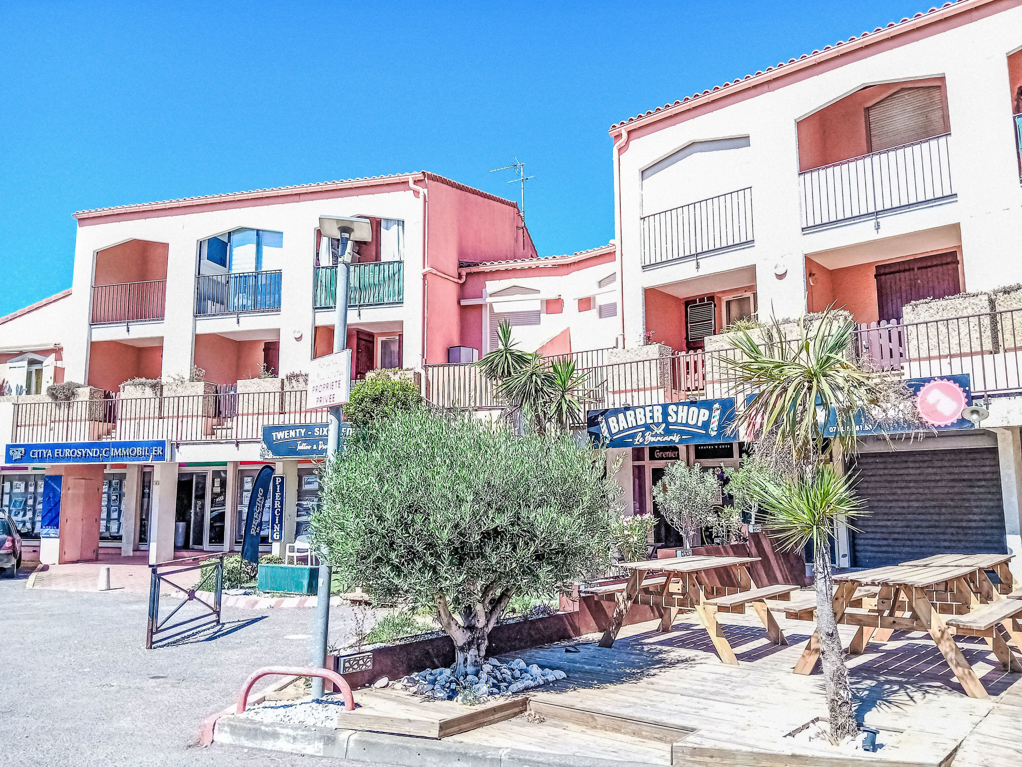 Residenz "Le Méditerranée". Im Ortsteil le village, 250 m vom Meer, 200 m vom Strand. Lebensmittelgeschäft 100 m, Supermarkt 150 m, Restaurant 100 m, Bahnstation "Perpignan" 20 km. Sporthafen 500 m. Nahe gelegene Sehenswürdigkeiten: Aqualand Port Leucate 7 km, Réserve Africaine de Sigean 41 km, site des dosses 7 km, cinema 4 km, parcours aventure 5 km. Bekannte Seen in der Umgebung sind gut erreichbar: Lac de Villeneuve de la Raho 34 km, Etang de Leucate ou salses 11 km. Wandergebiete: Sentier du guetteur 8 km, la forteresse de salses 15 km, Sentier du littoral Collioure 40 km. Bitte beachten: kein Fahrstuhl vorhanden.