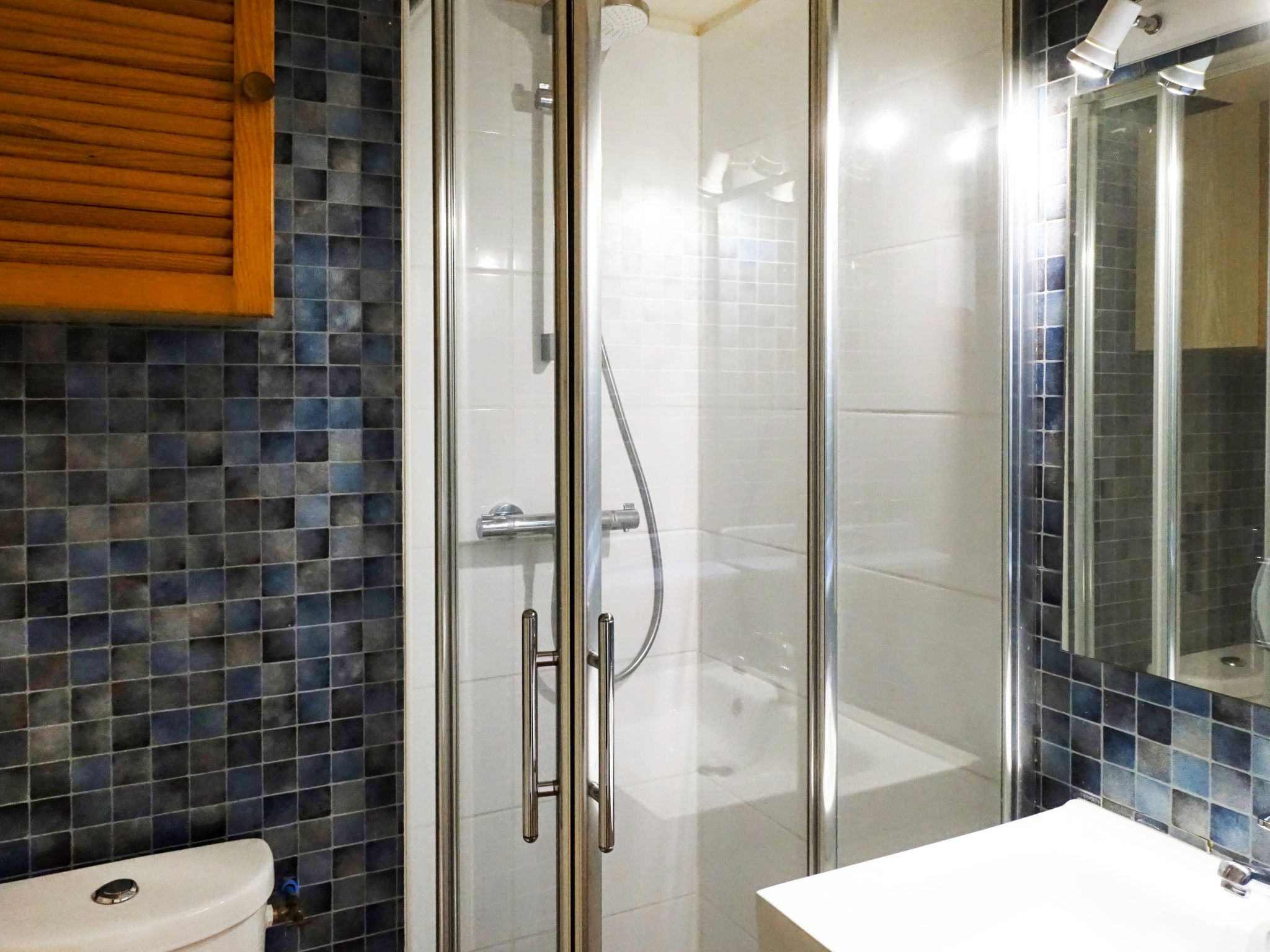 2-Zimmer-Wohnung 30 m2 im 1. Stock. Wohn-/Esszimmer mit 1 Doppeldiwanbett (1 x 140 cm), TV. Ausgang zur Terrasse. 1 Zimmer mit 1 franz. Bett (1 x 140 cm). Wohnküche (4 Kochplatten, Mini-Backofen, Geschirrspüler, Mikrowelle, Tiefkühler, elektrische Kaffeemaschine). Dusche/WC. Terrasse 8 m2. Zur Verfügung: Waschmaschine. Parkplatz. Bitte beachten: Rauchmelder. Inserat einer Privatperson nach Artikel 155, IV, CGI.