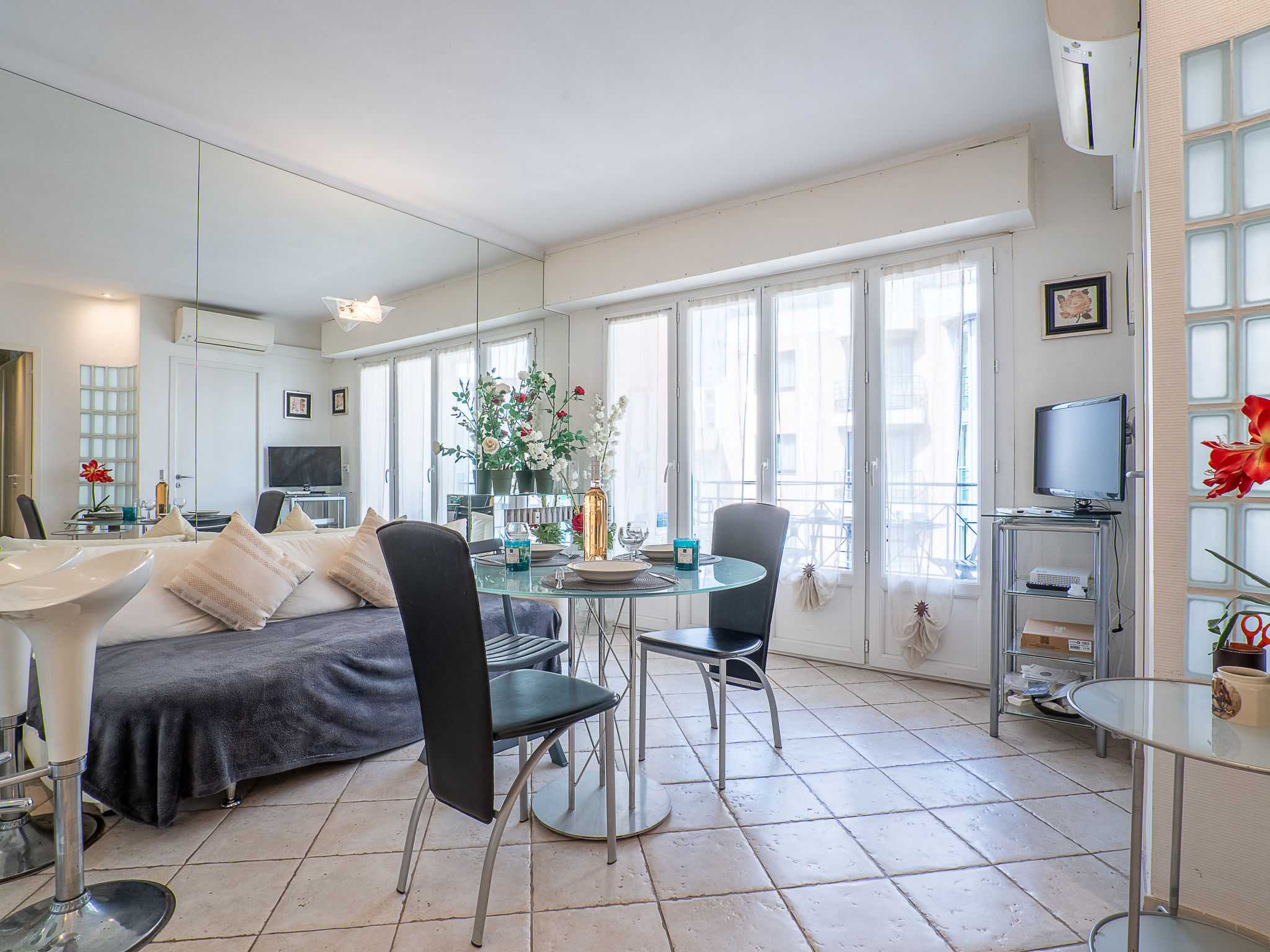 Residenz "LE CHEVERNY". Im Ortsteil Le Carré D'Or, im Ortszentrum von Cannes, zentrale, belebte Lage, 200 m vom Meer, 200 m vom Strand. In der Anlage: Fahrstuhl. Öffentliche Parkplätze extra. Lebensmittelgeschäft 200 m, Supermarkt 750 m, Restaurant, Café 50 m, Sandstrand "La Croisette" 200 m, Freibad 1.9 km. Sporthafen 750 m, Golfplatz (18 Loch) 11 km, Tennis 1.9 km. Nahe gelegene Sehenswürdigkeiten: Palais des festivals 500 m, La Croisette 200 m, Monaco, Aquarium 55 km, Marineland, Antibeland 11 km. Wandergebiete: Iles de Lérins 7 km. Bitte beachten: Eisenbahnlinie in der Nähe 50 m vom Haus.