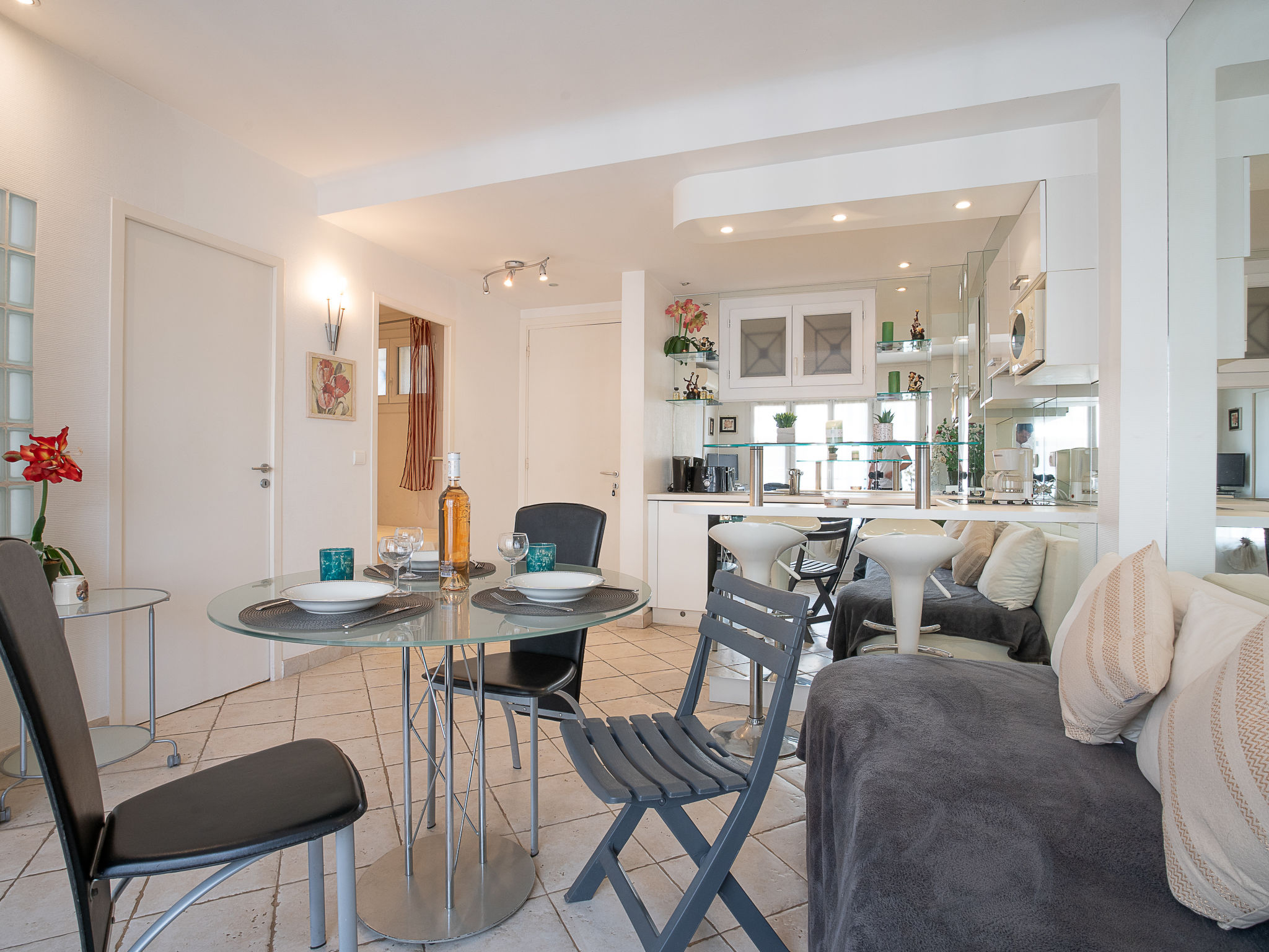 3-Zimmer-Wohnung 40 m2 im 4. Stock. Wohn-/Esszimmer mit Esstisch, TV und Internationale TV-Sender (Flachbildschirm), Klimaanlage. Ausgang zum Balkon, Richtung Westen. 1 kleines Zimmer mit 1 Bett (80 cm, Länge 190 cm). 1 Zimmer mit 1 franz. Bett (1 x 140 cm, Länge 200 cm), Dusche/WC. Grosse, offene Küche (4 Kochplatten, Backofen, Geschirrspüler, Mikrowelle, Tiefkühler, elektrische Kaffeemaschine). E-Heizung. Balkon 6 m2. Balkonmöbel. Zur Verfügung: Waschmaschine. Internet (Wireless LAN, gratis). Bitte beachten: TV nur FR, EN. Rauchmelder. Inserat einer Privatperson nach Artikel 155, IV, CGI. 06029003881DP