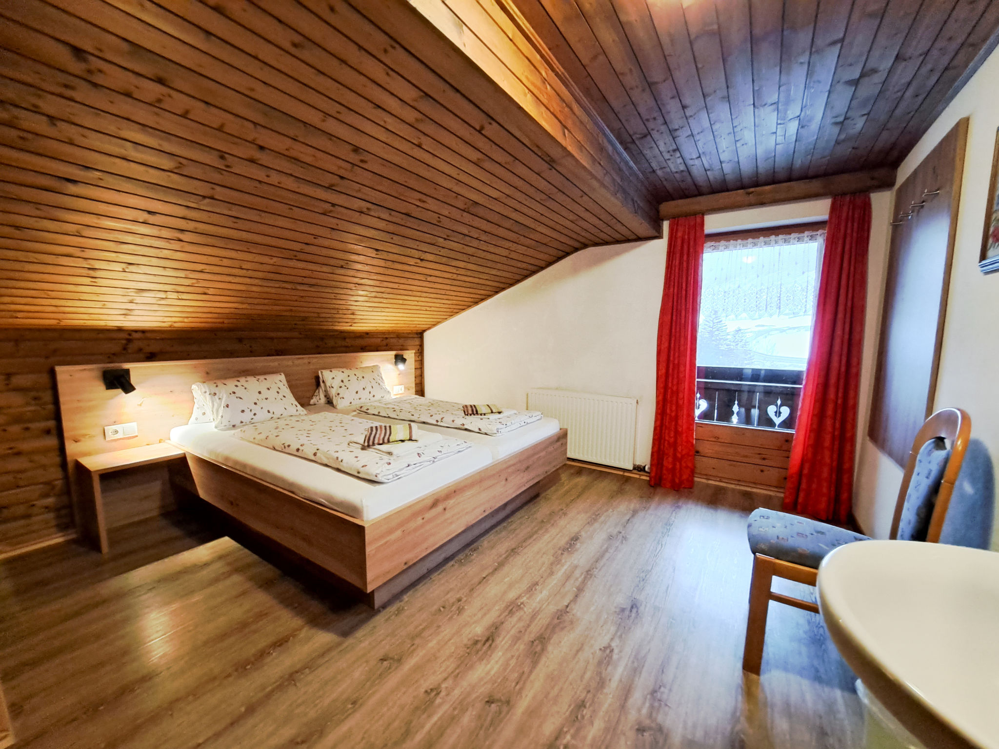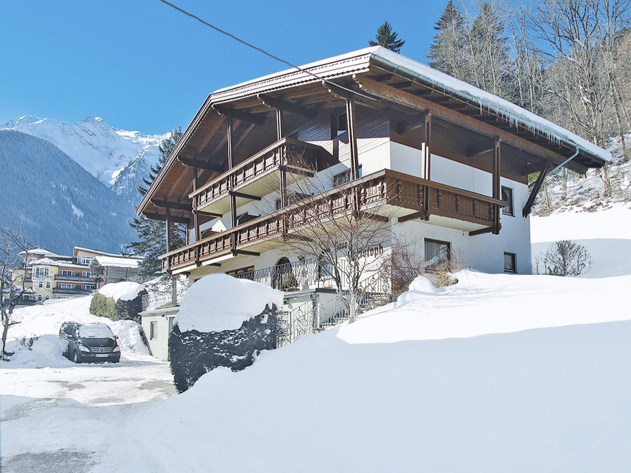 Haus CHRISTOPH mit schönem Blick auf Mayrhofen steht in Hanglage im Ort Finkenberg. Ortsmitte mit Einkaufsmöglichkeit ca. 200 m. Freibad ca. 600 m. Mayrhofen mit Supermarkt 3 km. Golfplatz Uderns 20 km. Offenes Gundstück mit Wiesen. Parkmöglichkeiten auf dem Grundstück. Liegewiese mit Sonnenliegen und Sonnenschirm sowie Terrasse mit Mobiliar zur gemeinsamen Nutzung. Jede Wohnung hat einen überdachten Balkon mit Mobiliar. Im Haus Saunalandschaft mit Dampfbad (gegen Bezahlung). Aufenthaltsraum mit Sat-TV. Leseecke. Zusätzliche Zimmer mit Dusche/WC können auf Anfrage dazugemietet werden. Brötchenservice. Die geräumigen Wohnungen sind feriengerecht unter Verwendung von viel Holz eingerichtet. Offene Dachstuhlkonstruktion. Jeweils Teppich-, Laminatboden, Sat-TV, Internetzugang (WLAN, inklusive), Heizung. Hinweise: Rauchen ist in den Wohnungen nicht gestattet. Der Besitzer akzeptiert keine Gruppen. Winter-Infos: Skibushaltestelle ca. 200 m. Talstation der Finkenberger Almbahn ca 500 m. Skiabfahrt bis zum Haus bei geeigneter Schneelage möglich. Im Haus Ski- und Schuhraum mit Skischuhtrockner.