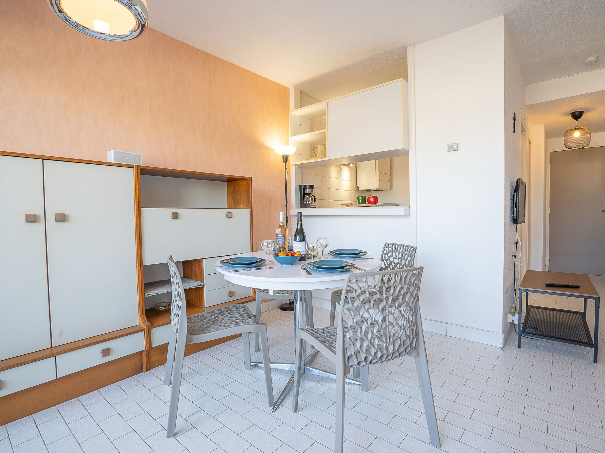 Residenz "Le Serpent de Mer". Im Ortsteil la Plage Nord, 100 m vom Meer, 50 m vom Strand. Einkaufsgeschäft, Lebensmittelgeschäft 450 m, Einkaufszentrum 500 m, Restaurant 450 m, Bahnstation 2 km, Sandstrand 50 m, Hallenbad 1.5 km, Thermalbad "Thalazur Les Bains de Camargue" 3.5 km. Sporthafen 400 m, Segelschule 1 km, Tennis, Minigolf 400 m. Nahe gelegene Sehenswürdigkeiten: Seaquarium 500 m, Casino Flamingo 800 m, Aigues-Mortes 8 km, La Grande Motte 12 km, Les Saintes-Maries-de-la-Mer 37 km, Nîmes 52 km. Wandergebiete: Réserve Naturelle de Camargue. Bitte beachten: kein Fahrstuhl vorhanden. Flugplatz 25 km vom Haus.