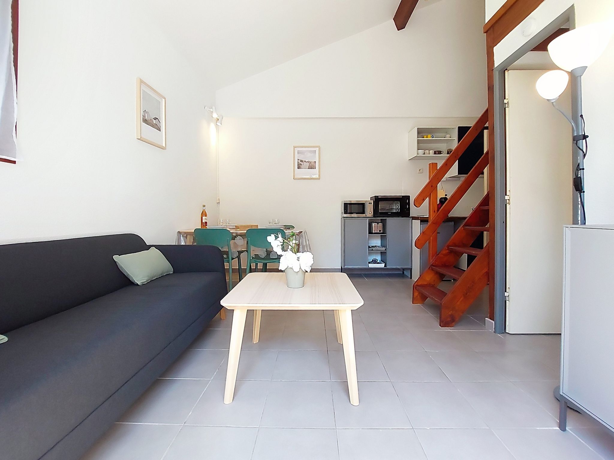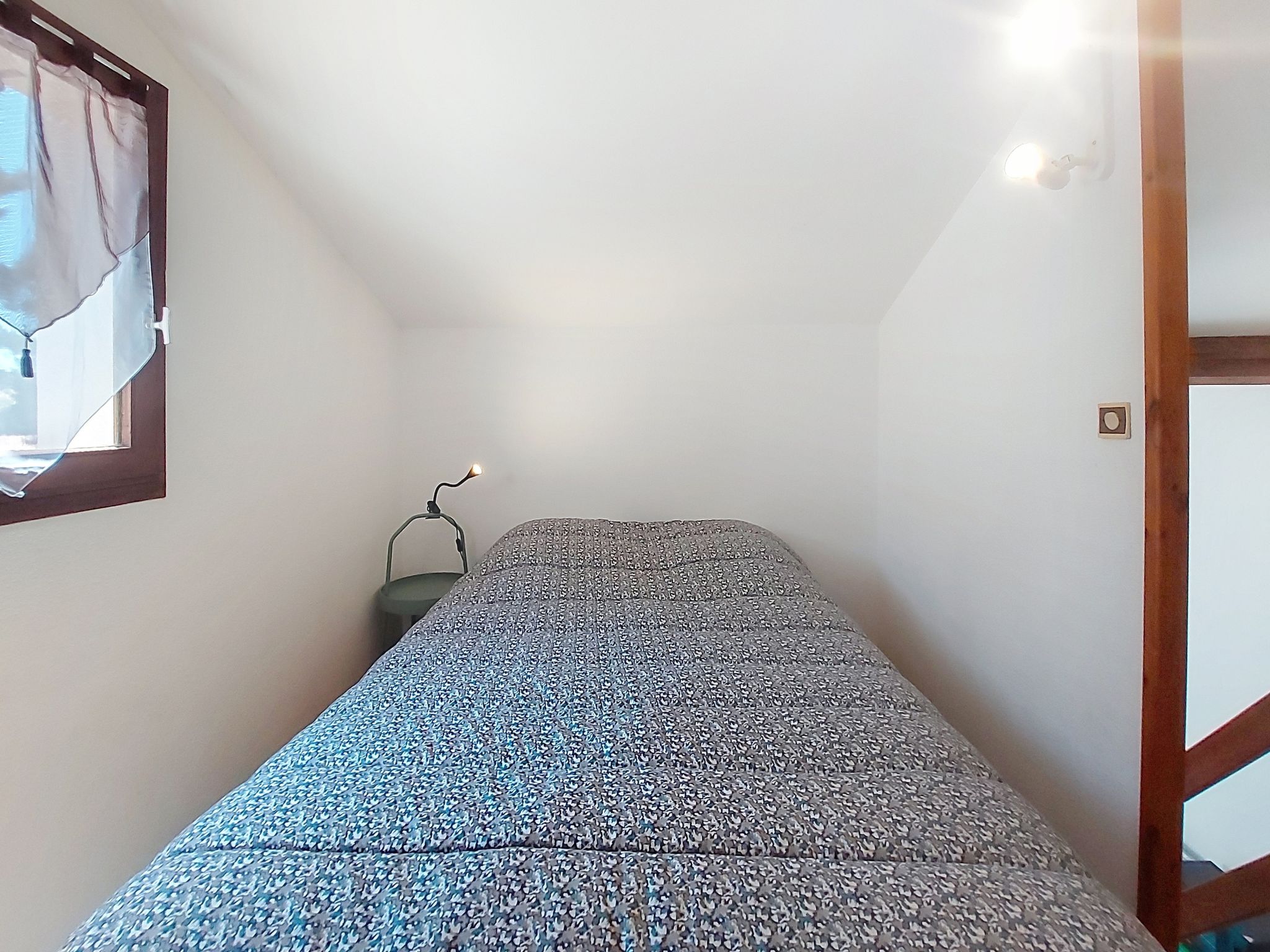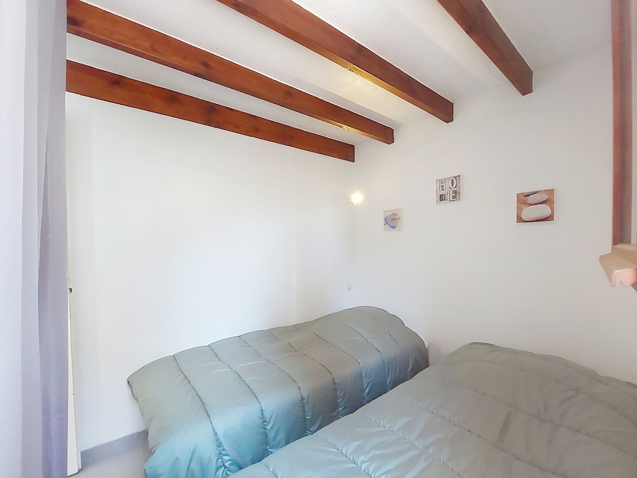 2-Zimmer-Reihenhaus 35 m2 auf 2 Stockwerken. Wohn-/Esszimmer mit TV (Flachbildschirm). 1 Zimmer mit 2 Betten (80 cm, Länge 190 cm). Kochnische (Mikrowelle). Bad/WC. Obergeschoss: Galerie mit 1 franz. Bett (1 x 140 cm, Länge 190 cm). Terrasse 35 m2, Südlage. Terrassenmöbel. Zur Verfügung: Internet (Wireless LAN, extra). Parkplatz Nr. 165. Bitte beachten: Wohnung auf Strassenseite. Maximal 1 Haustier/Hund erlaubt. Rauchmelder. Inserat einer Privatperson nach Artikel 155, IV, CGI.