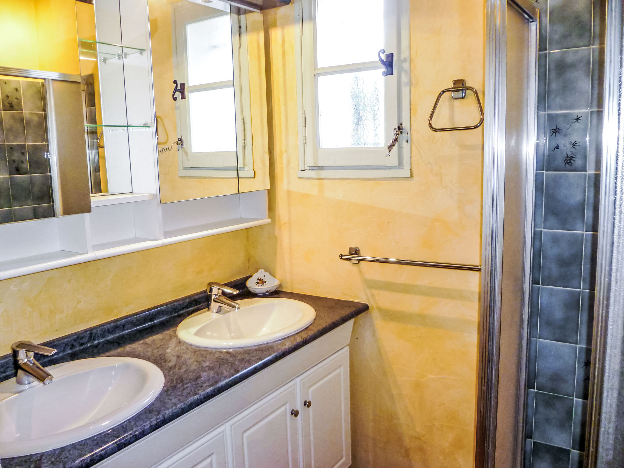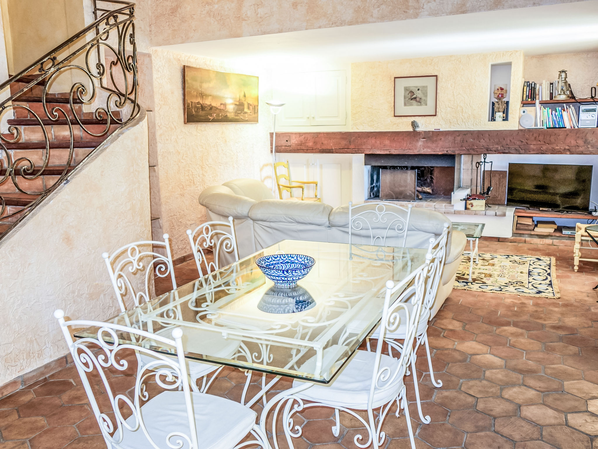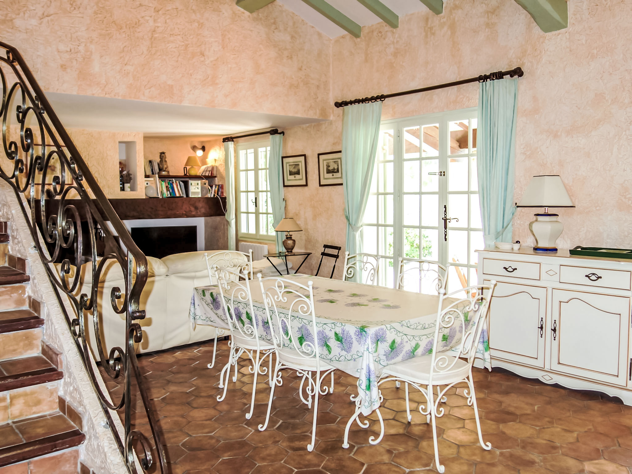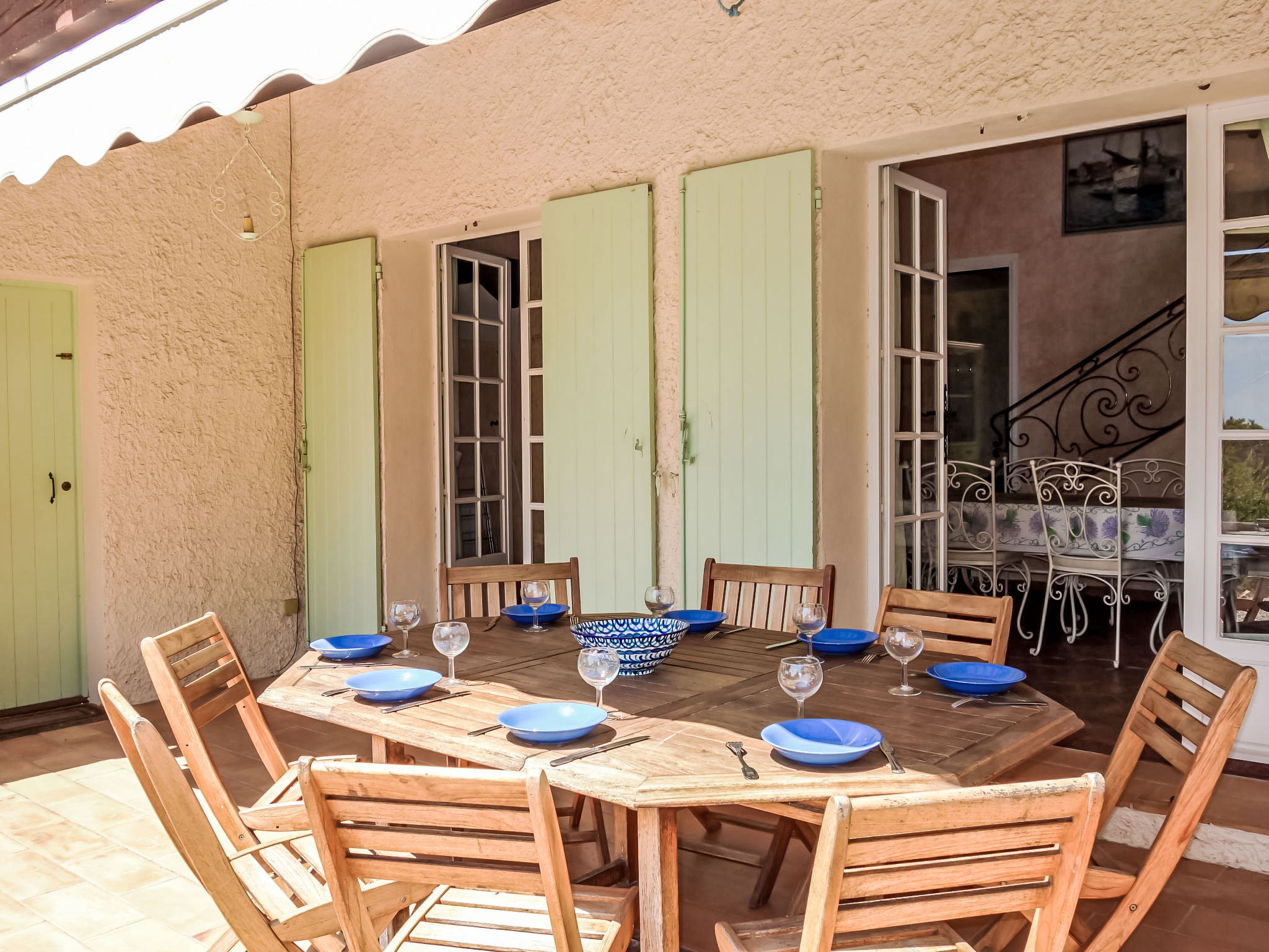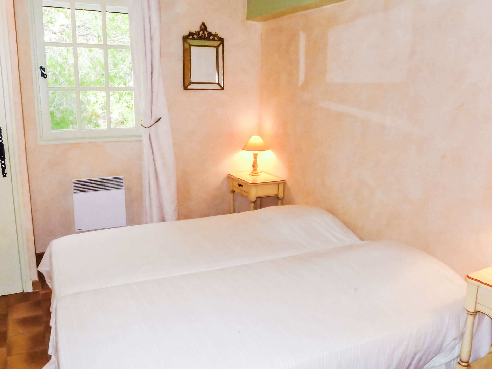 5-Zimmer-Villa 145 m2 auf 2 Stockwerken. Komfortabel eingerichtet: Wohn-/Esszimmer mit TV, Stereoanlage, DVD und Klimaanlage. Ausgang zur Terrasse. 1 Zimmer mit 1 franz. Bett (160 cm, Länge 200 cm), Bad/Dusche und Klimaanlage. Küche (Backofen, Geschirrspüler, 4 Glaskeramikherd Platten, Tiefkühler, elektrische Kaffeemaschine, Kombinationsmikrowelle). Sep. WC. Obergeschoss: 1 Zimmer mit 2 Betten (90 cm, Länge 200 cm). 1 Zimmer mit 2 Betten (80 cm, Länge 190 cm). 1 Zimmer mit 1 franz. Bett (160 cm, Länge 200 cm). Ausgang zum Balkon. Dusche, sep. WC, Doppelwaschbecken. E-Heizung. Balkon 10 m2, Südlage, Terrasse 30 m2, überdacht, Südlage. Terrassenmöbel, Elektrogrill. Eingeschränkte Sicht auf das Meer. Zur Verfügung: Waschmaschine, Bügeleisen, Babybett bis 2 Jahre. Internet (Wireless LAN, gratis). Parkplatz (eingezäunt, 3 Autos). Bitte beachten: TV nur FR. Rauchmelder. Inserat eines gewerblichen Vermieters nach Artikel 155, IV, CGI 83112 000182 WX