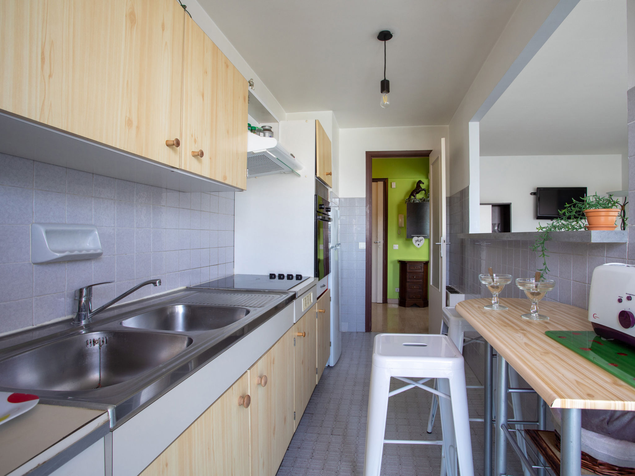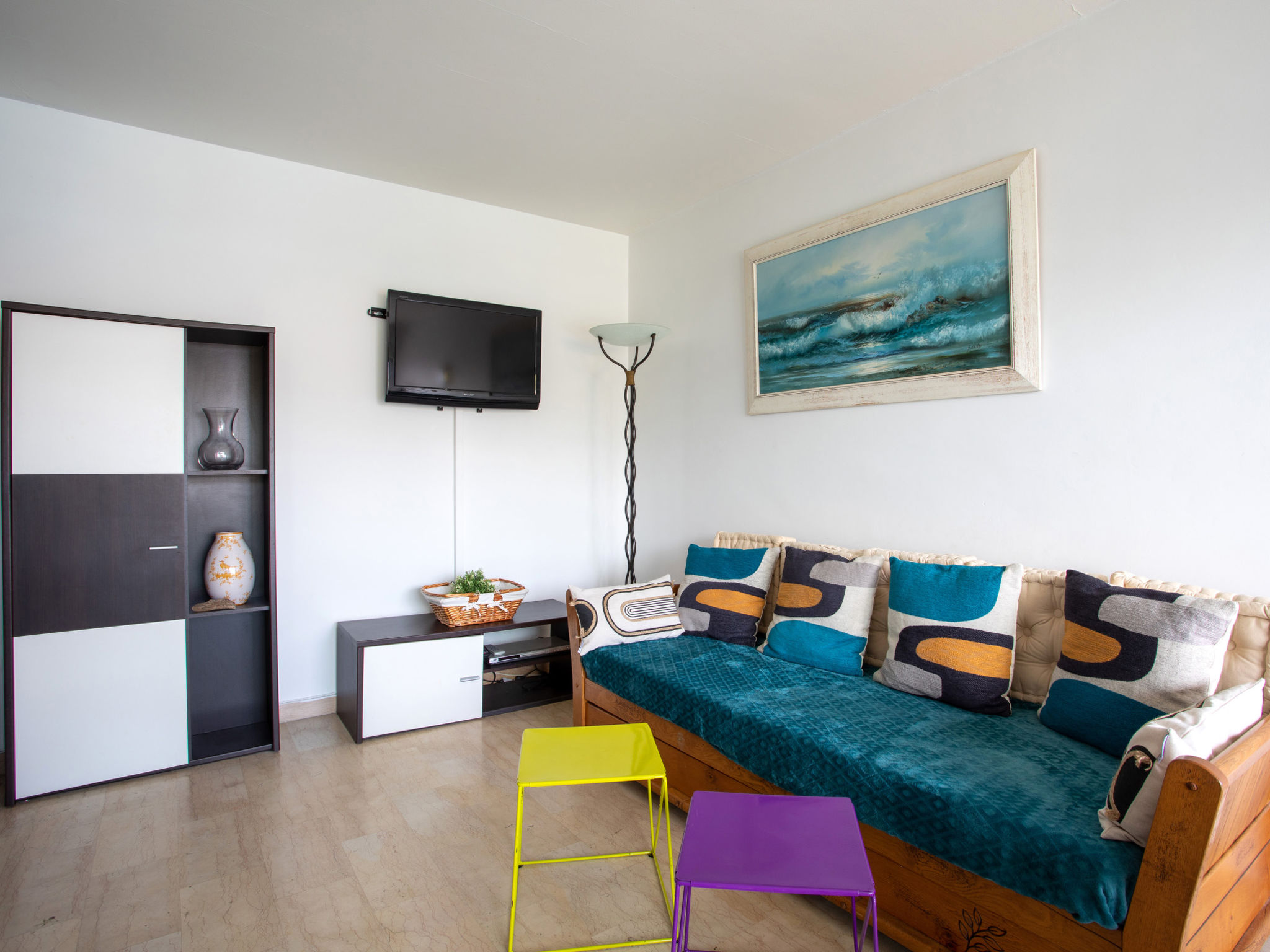 2-Zimmer-Wohnung 45 m2 im 1. Stock. Schön eingerichtet: Wohn-/Esszimmer mit 2 Ausziehbetten (2 Pers. 2 x 80 cm, Länge 220 cm), Flachbildschirm. Ausgang zum Balkon. 1 Zimmer mit 2 Betten (90 cm, Länge 190 cm). Küche (Backofen, 4 Glaskeramikherd Platten, Mikrowelle, Tiefkühler, elektrische Kaffeemaschine, Dampfgarer). Dusche/WC. Balkonmöbel. Seitliche Sicht auf das Meer. Zur Verfügung: Bügeleisen, Babybett bis 3 Jahre, Haartrockner. Internet (Wireless LAN, extra). Maximal 1 kleines Haustier/Hund erlaubt. Inserat einer Privatperson nach Artikel 155, IV, CGI. 06027010912SB