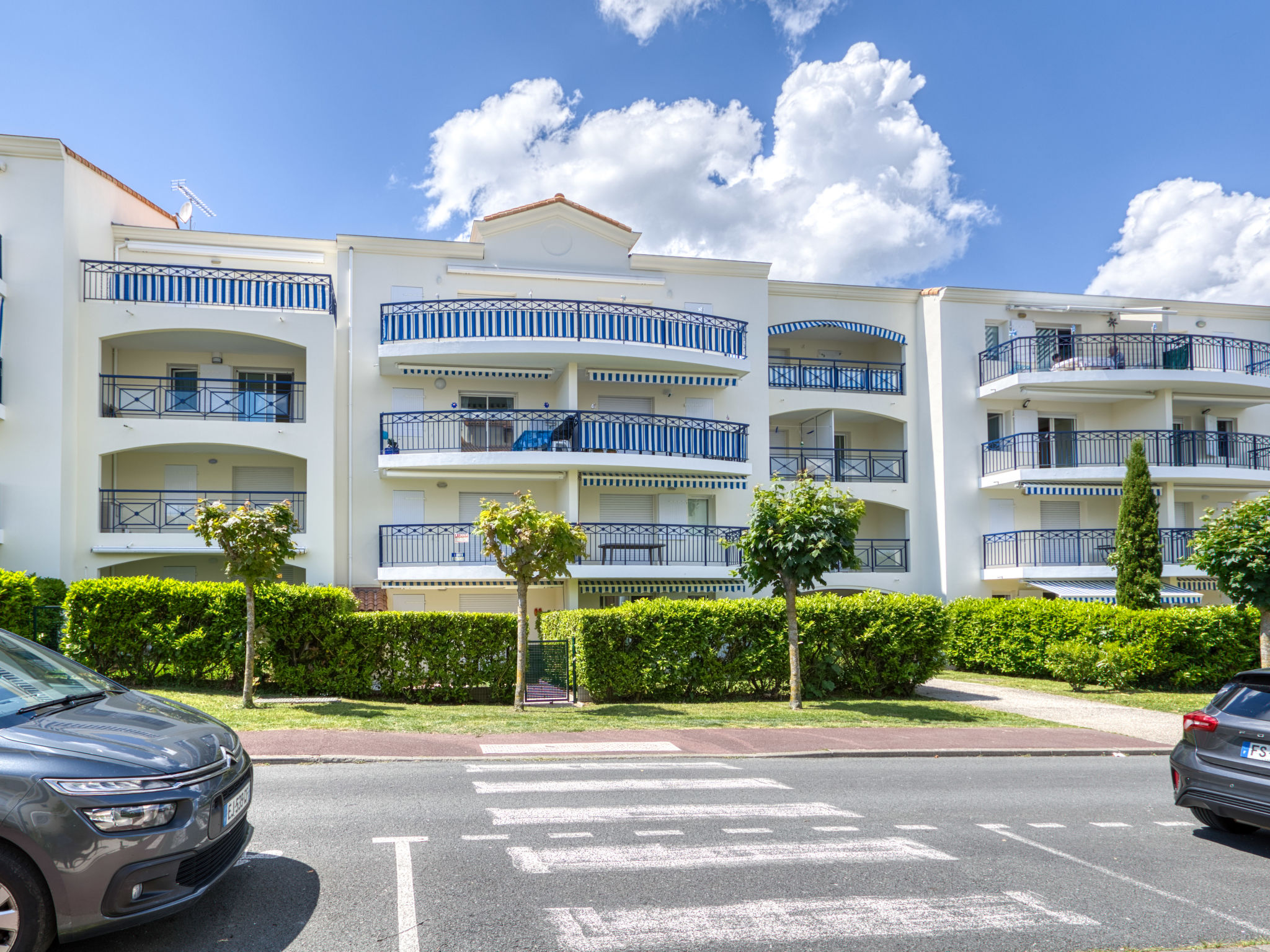 Vaux sur Mer 2 km von Royan: Residenz "Terrasses de Pontaillac", auf 3 Stockwerken. 60 Wohnungen in der Residenz. Im Ortsteil Pontaillac, 1.7 km vom Zentrum von Vaux sur Mer, 2.5 km vom Zentrum von Royan, 300 m vom Meer, 300 m vom Strand. Zur Mitbenutzung: Schwimmbad eckig geschützt (15 x 7 m, saisonale Verfügbarkeit: 01.Jul.-31.Aug.). Im Hause: Fahrstuhl. Öffentliche Parkplätze auf der Strasse. Einkaufsgeschäft 300 m, Supermarkt 1.3 km, Restaurant, Bar, Bäckerei, Café 300 m, Bushaltestelle 100 m, Bahnstation "Royan" 3.3 km, Sandstrand "Pontaillac" 300 m, Park "Luna Park (Juillet-Août)" 17 km, Hallenbad 3 km, Thermalbad "Thalassothérapie Thalazur Royan" 2 km, See Métairie - Royan 1.5 km. Sporthafen 2.5 km, Golfplatz (18 Loch) 5.5 km, Surfschule 300 m, Segelschule 2.5 km, Tennis 2 km, Tennishalle 2 km, Minigolf 700 m, Reitstall 6 km, Radweg 100 m. Nahe gelegene Sehenswürdigkeiten: Zoo de La Palmyre 12 km, Hippodrome - La Palmyre 13 km, Centre aquatique Iléo - Ile d'Oléron 47 km, Fort Boyard - Fouras 57 km, Aéroport La Rochelle - Ile de Ré 80 km, Aéroport Bordeaux - Merignac 132 km.