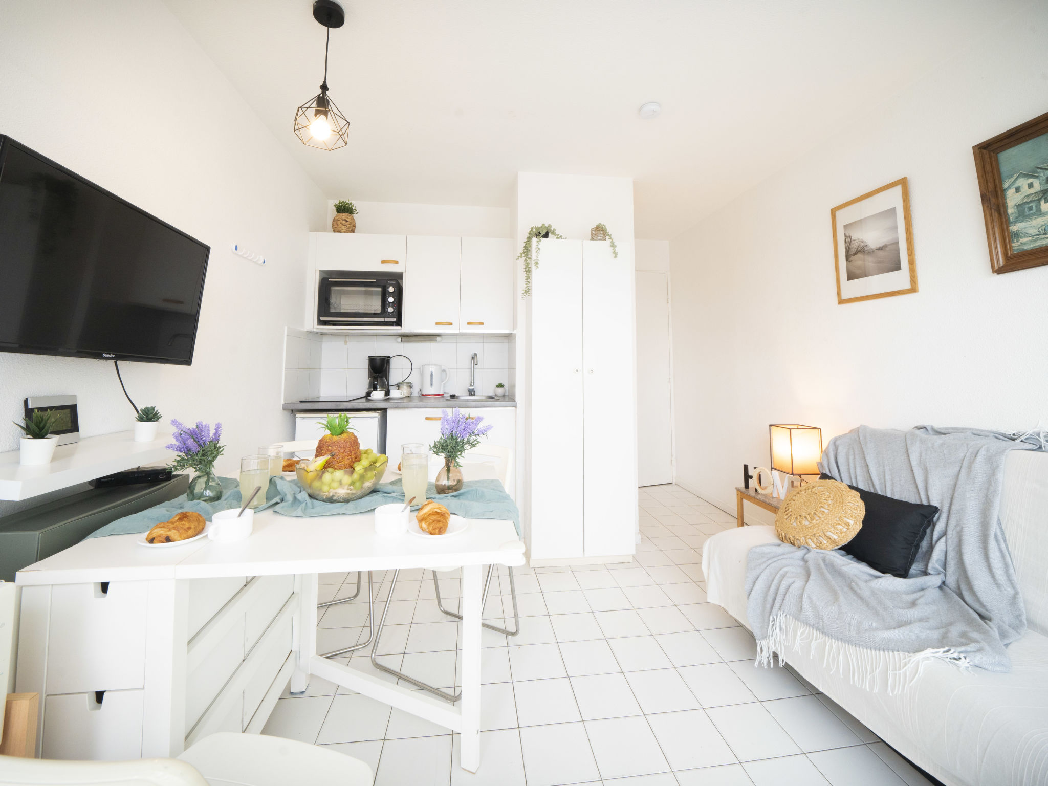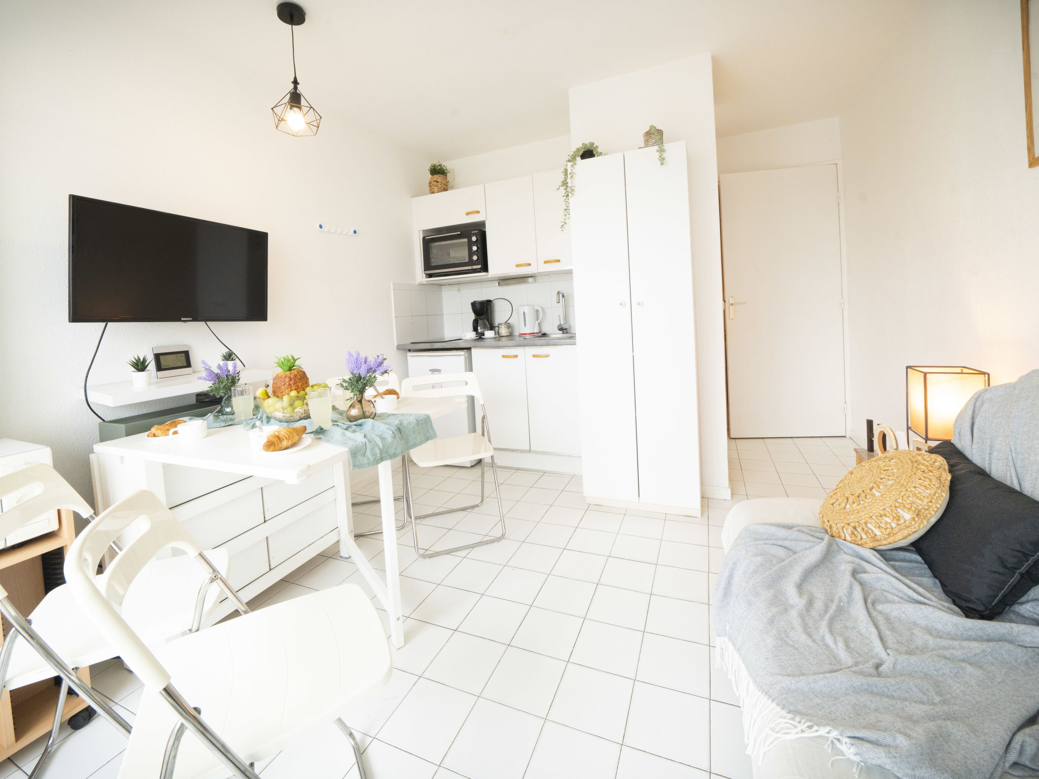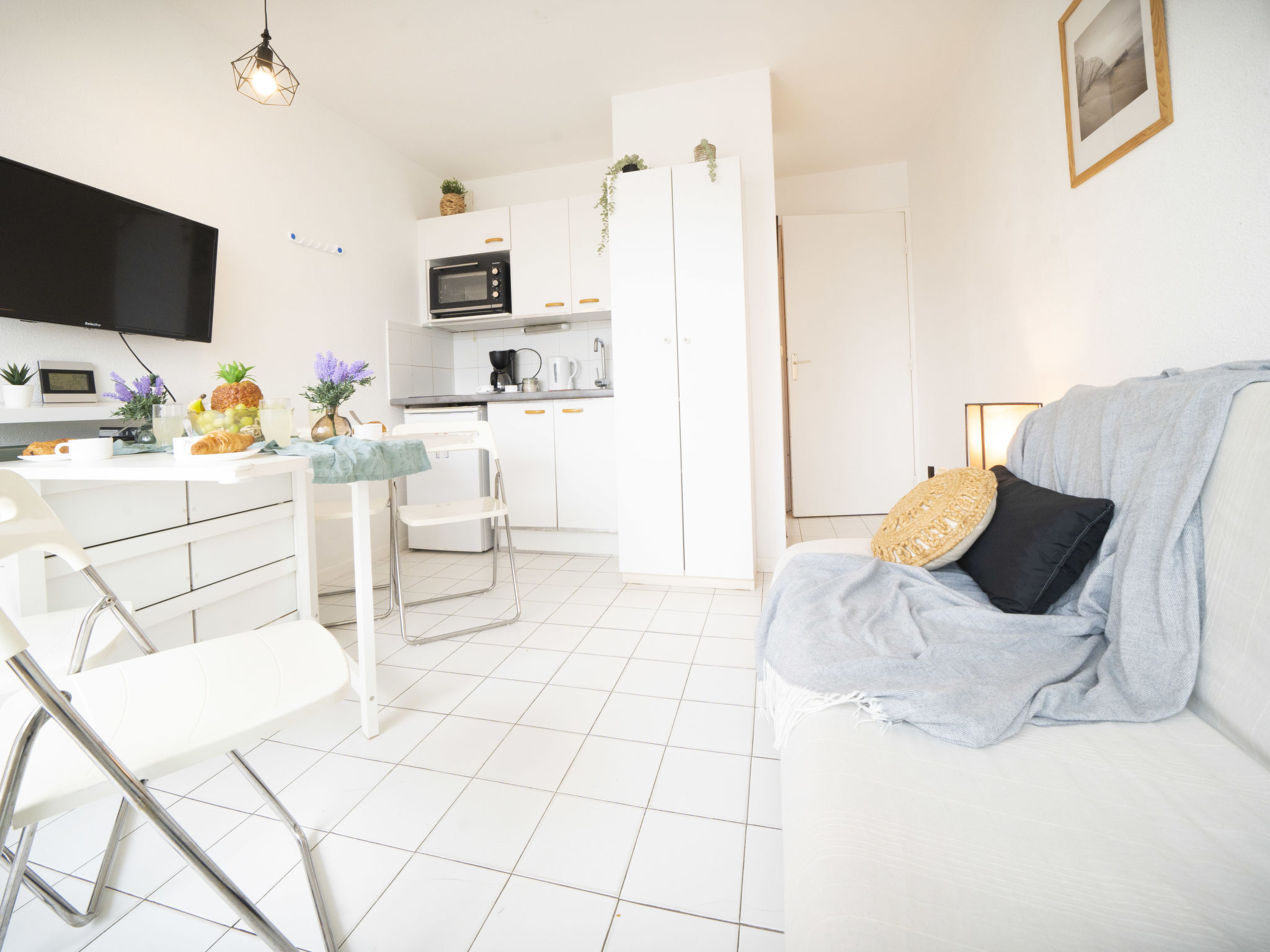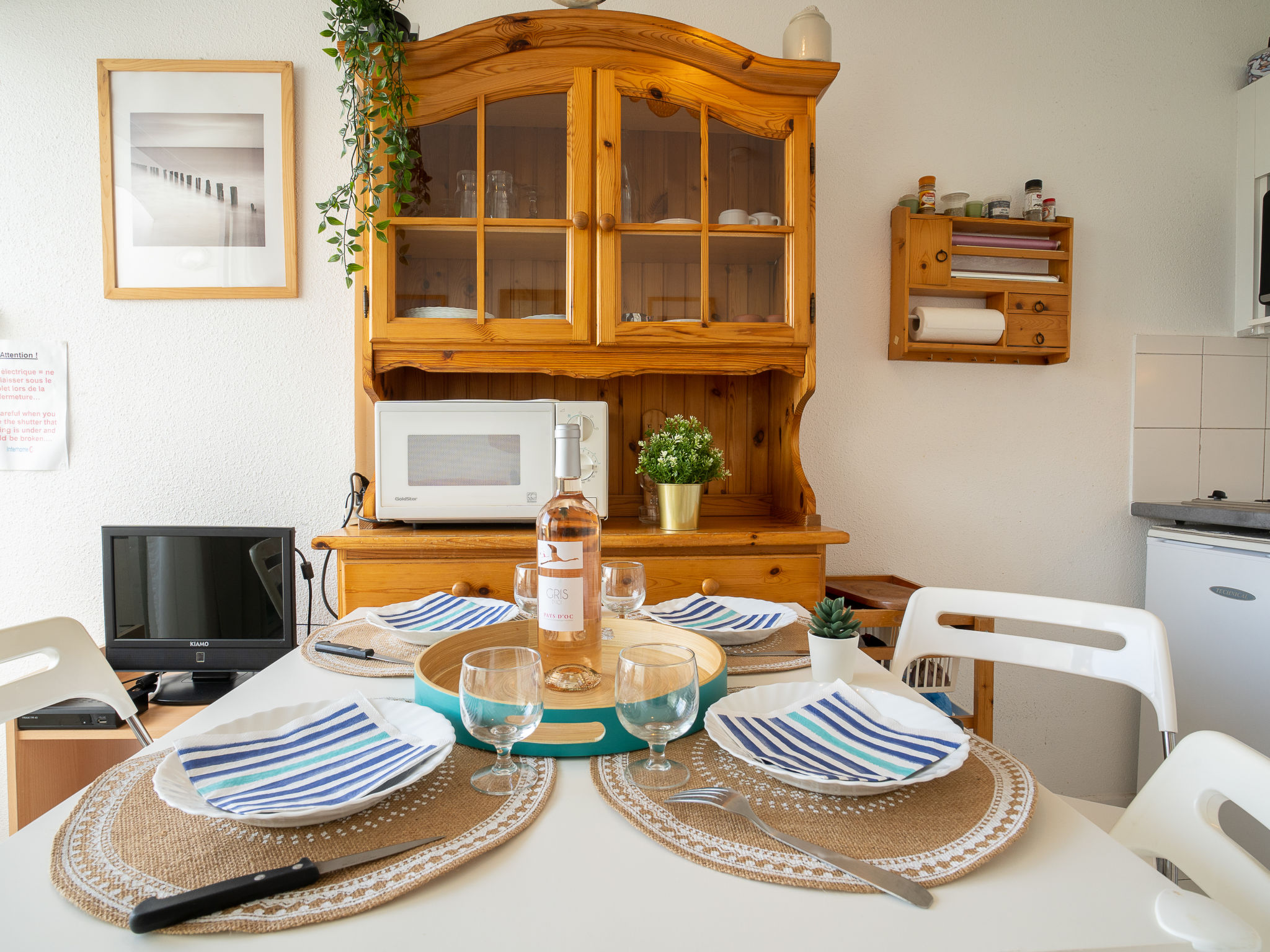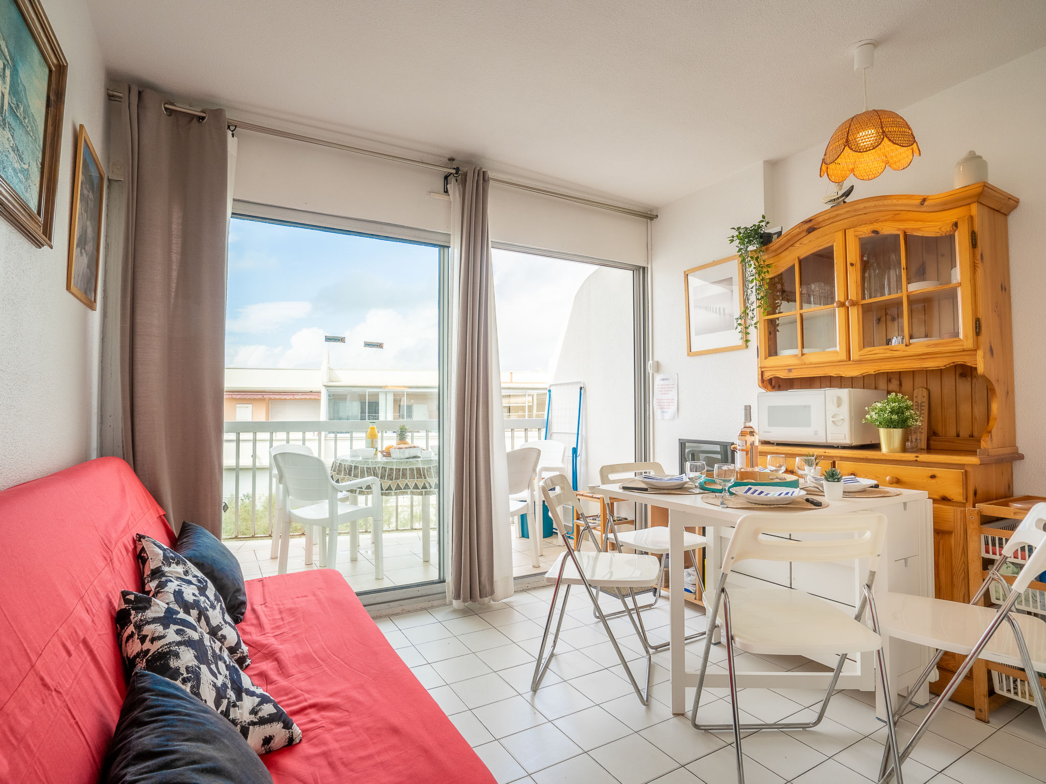 Residenz "Port Athéna". Im Ortsteil La Motte du Couchant, 1.5 km vom Zentrum von La Grande Motte, 200 m vom Meer, 150 m vom Strand. Öffentliche Parkplätze auf der Strasse extra. Einkaufszentrum, Restaurant 100 m, Bushaltestelle 200 m, Bahnstation "Montpellier" 25 km, Sandstrand 150 m, Thermalbad "Thalasso Spa" 4 km. Sporthafen 1 km, Golfplatz (18 Loch) 4 km, Segelschule 900 m, Tennis 3.5 km, Reitstall 2 km. Nahe gelegene Sehenswürdigkeiten: Seaquarium du Grau Du Roi 10 km, Les Remparts d'Aigues Mortes 12 km, Les Saintes Maries de la Mer 40 km. Bitte beachten: Flugplatz in der Nähe 20 km vom Haus.