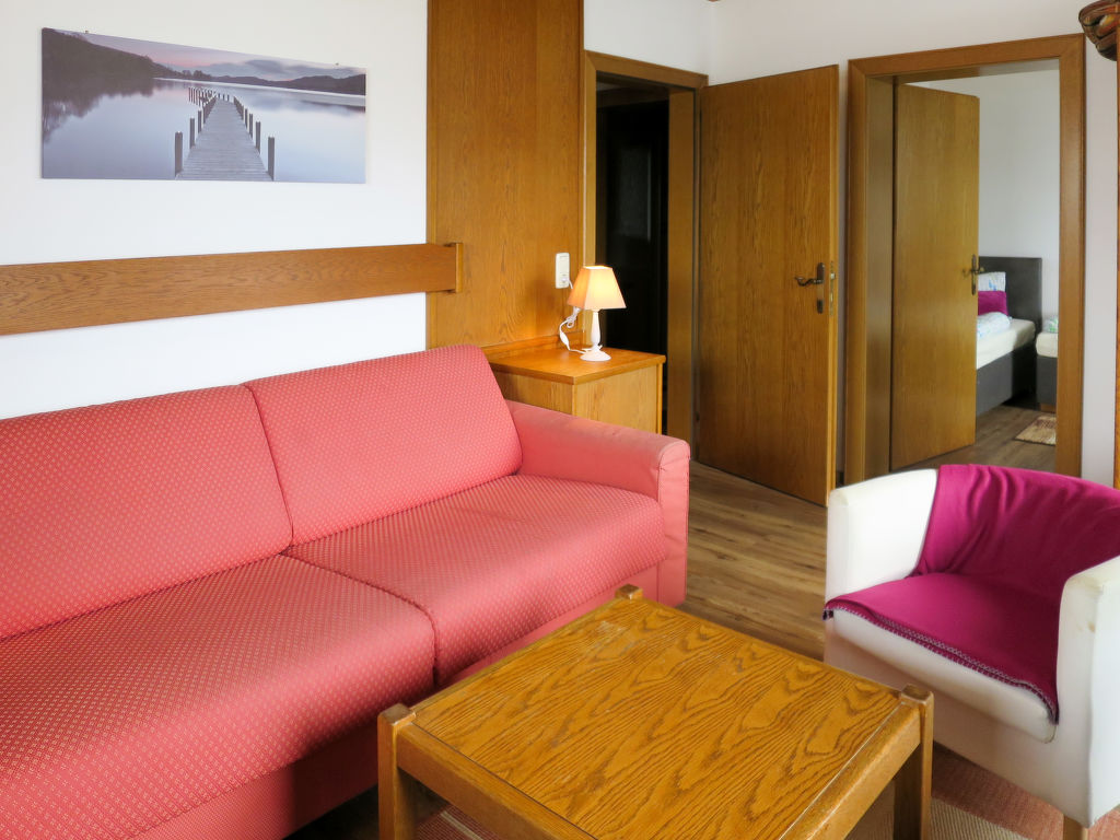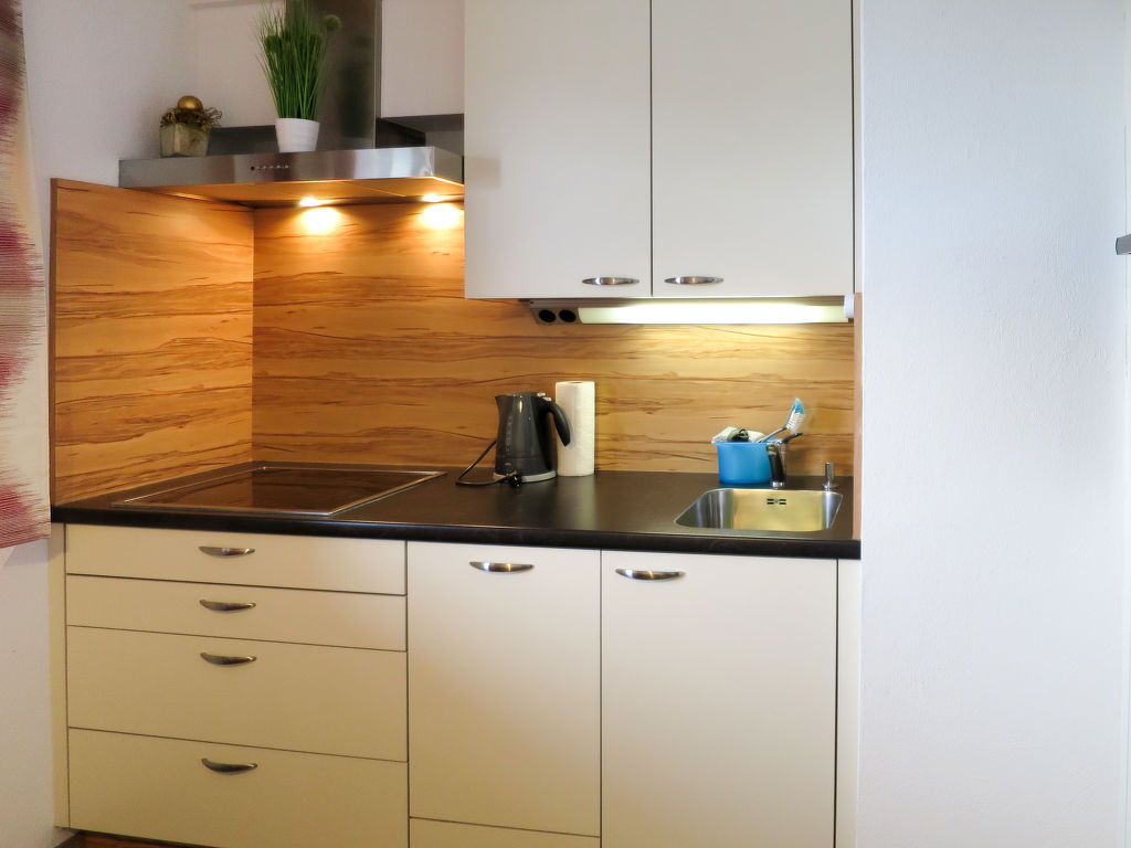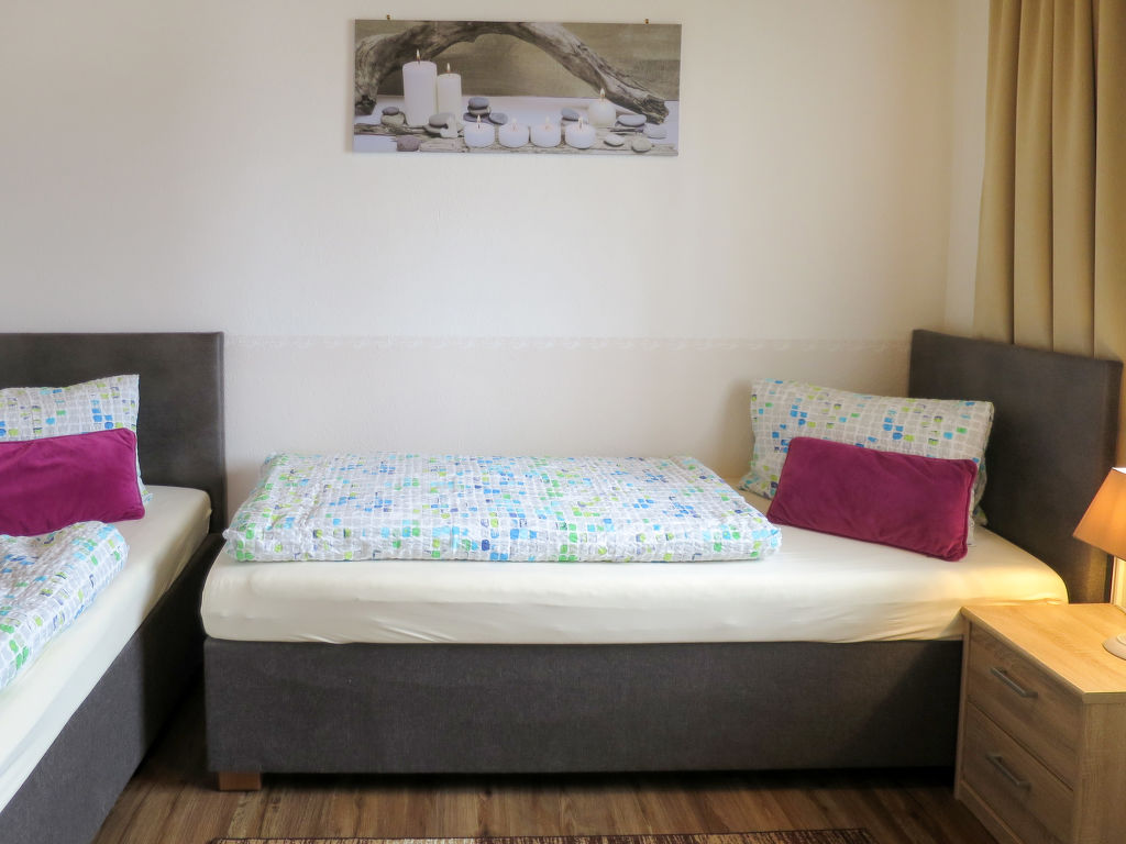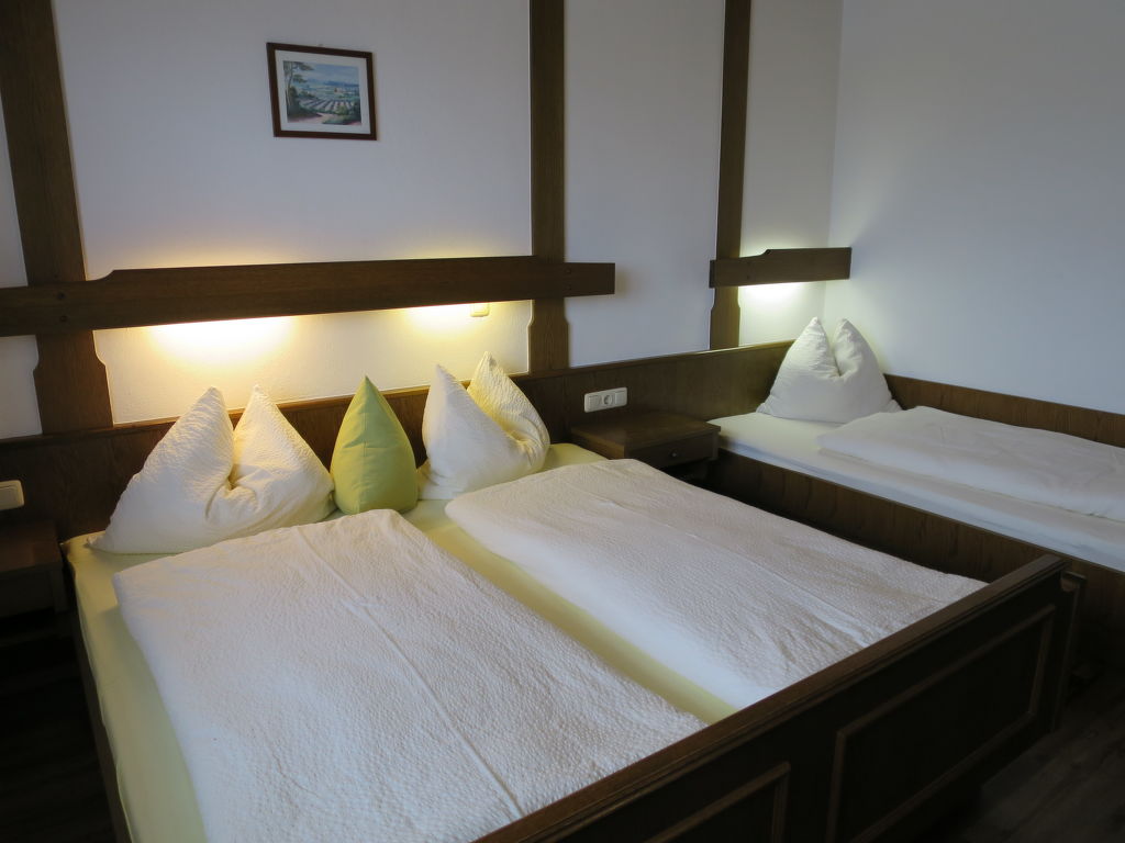 3-Zimmer-Wohnung, 1. Etage, ca. 67 m². Wohn-/Schlafraum mit Doppelbettcouch, Balkonausgang. Küche (4 Ceranfelder, Backofen, Geschirrspüler, Kühl-/Gefrierkombination, Kaffeemaschine, Wasserkocher, Toaster) mit Essplatz (Eckbank). Schlafzimmer mit Doppelbett und Einzelbett. Zweibettzimmer (Betten zusammenstellbar). Dusche. Sep.WC. Bei Belegung mit weniger Personen als der maximalen Personenzahl stehen nicht alle Wohneinheiten zur Verfügung.