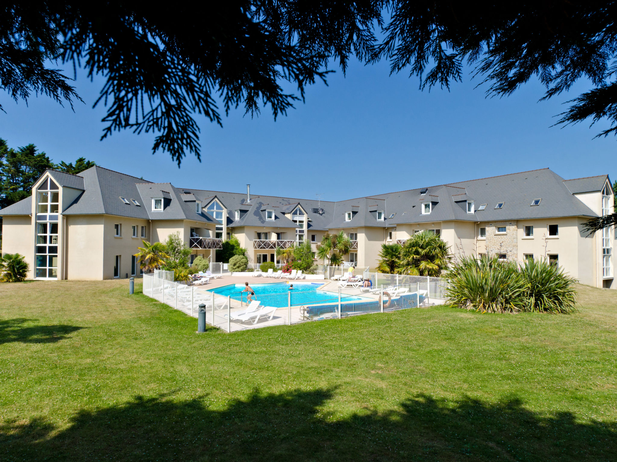 Schöne Ferienanlage "Ker Mael", auf 3 Stockwerken. 71 Wohnungen in der Residenz. 2.5 km vom Zentrum von St. Briac, 7 km vom Zentrum von Dinard, 17 km vom Zentrum von St. Malo, 80 m vom Meer, Strasse zu überqueren. Zur Mitbenutzung: Grundstück 2 ha mit Pflanzen und Bäumen, Schwimmbad beheizt, eingezäunt (15 x 7 m, saisonale Verfügbarkeit: 25.Apr.-12.Sep.). Terrasse. In der Anlage: Empfang, Aufenthaltsraum, Internetzugang, Wireless LAN, Sauna, Fitnessraum, Tischtennis, Fahrstuhl, Waschmaschine (zur Mitbenutzung, extra). Parkplatz auf dem Grundstück. Einkaufsgeschäft 1 km, Sandstrand 80 m. Golfplatz (18 Loch) 800 m. Das Foto ist nur ein Wohnungsbeispiel. Die Mietobjekte können sich in Wohnfläche, Raumaufteilung, Ausstattung und Einrichtung unterscheiden.