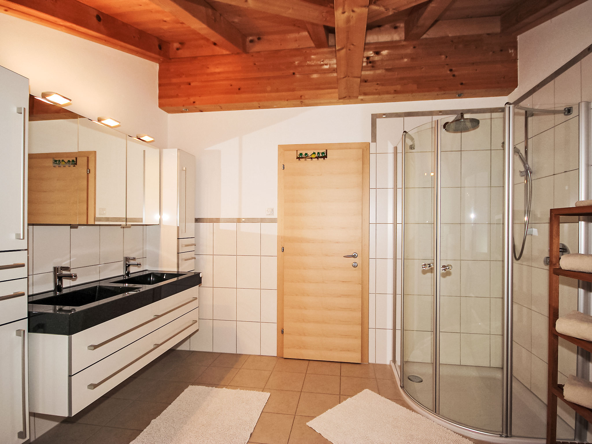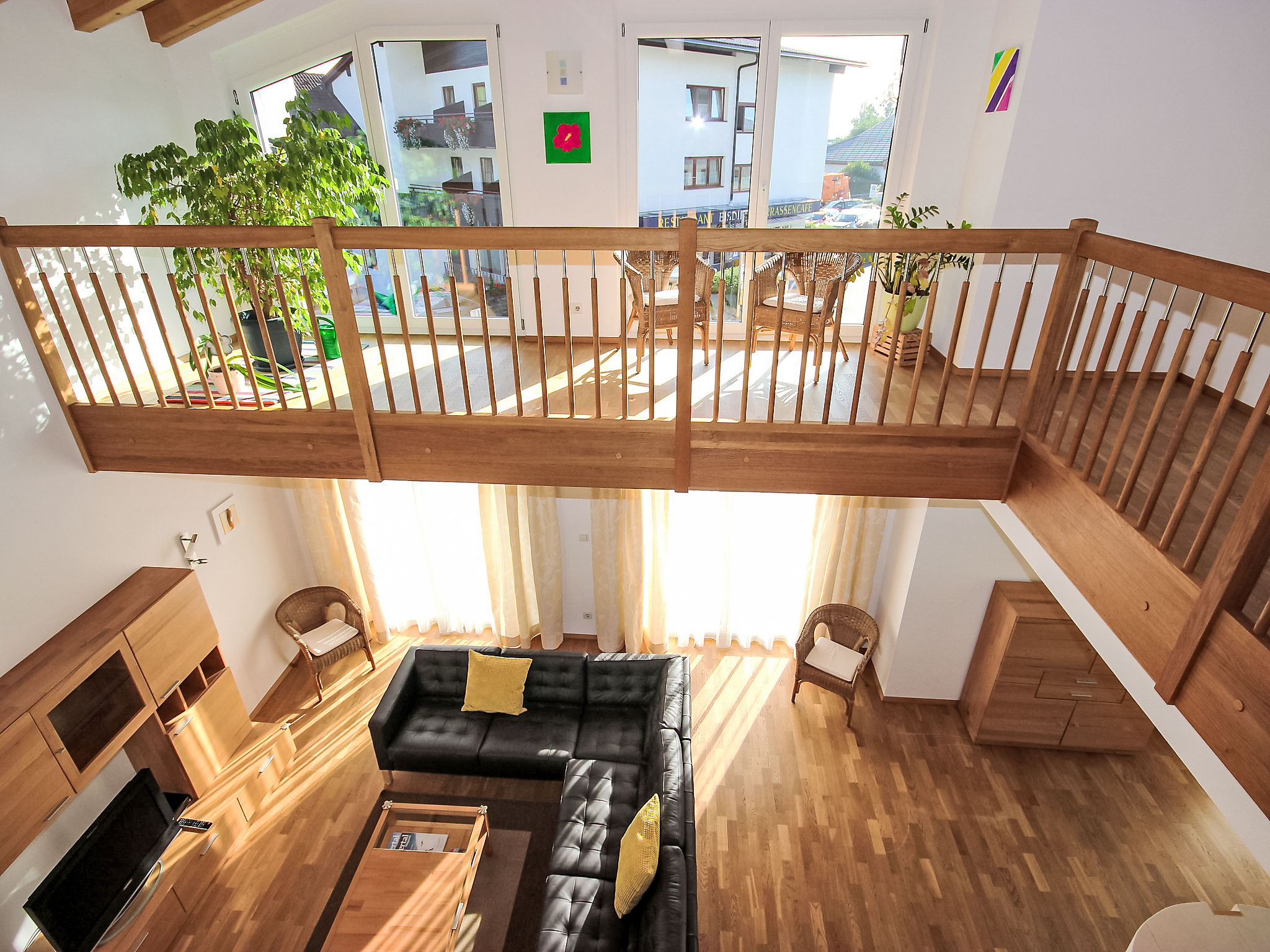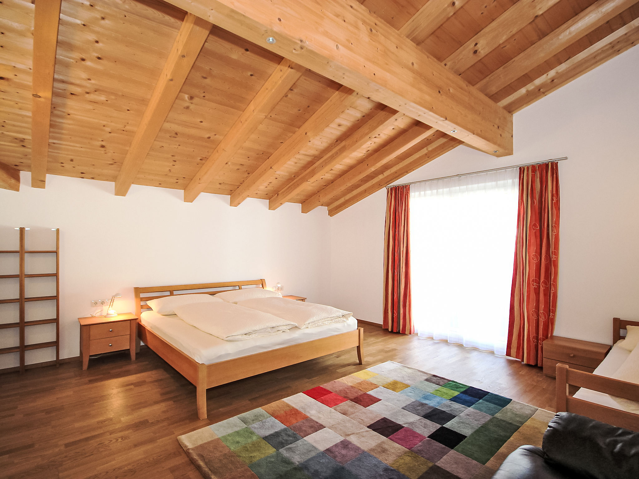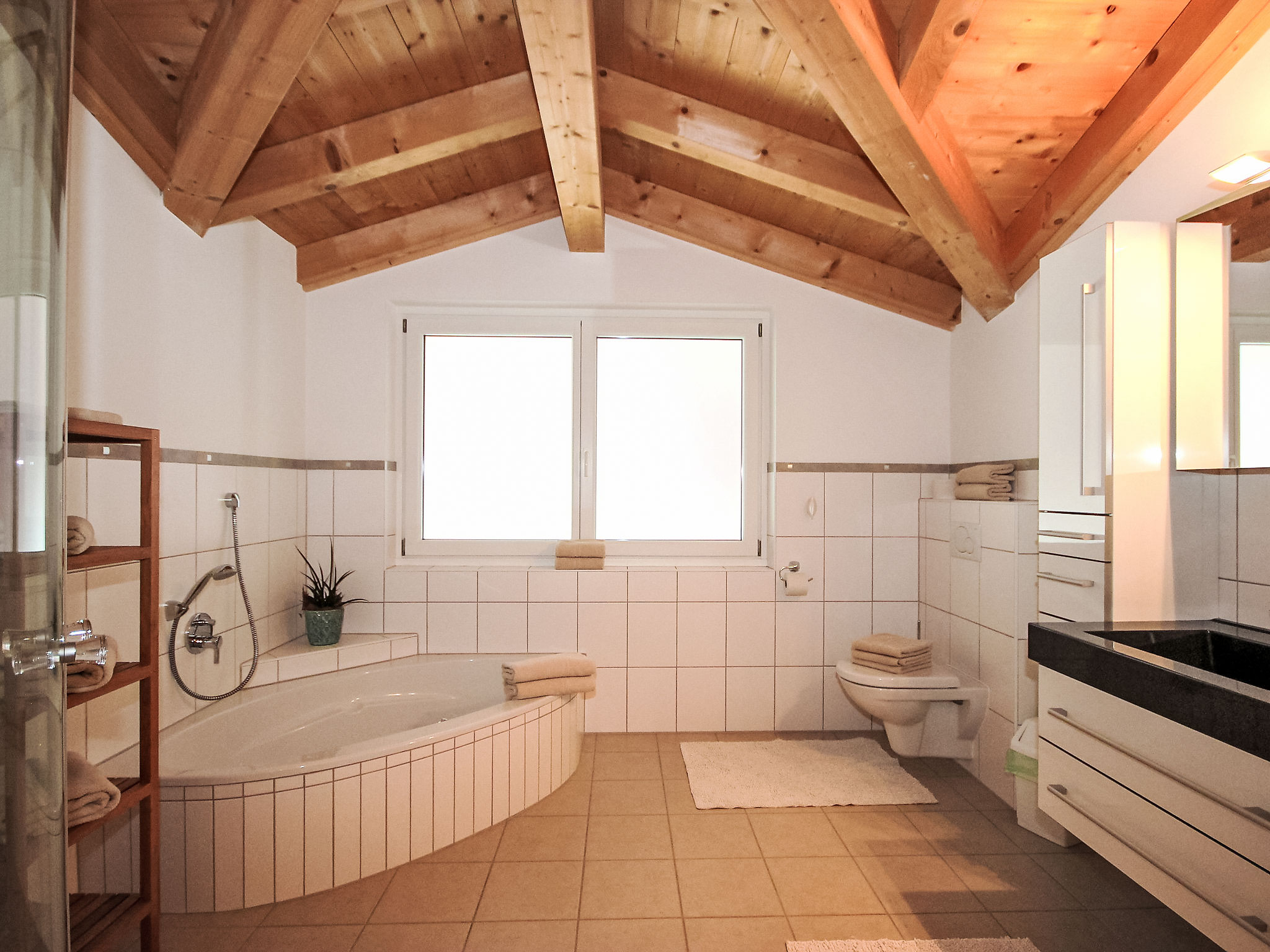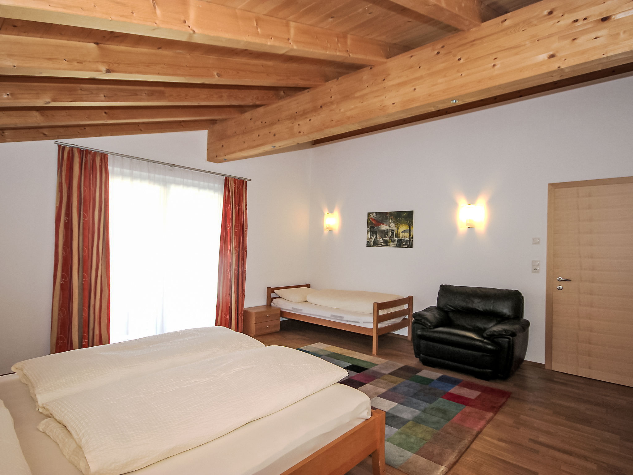 7-Zimmer-Haus 260 m2 auf 3 Stockwerken. Geräumig, sehr komfortabel und modern eingerichtet: Eingang. Grosses Wohnzimmer mit Kabel-TV (Flachbildschirm). Ausgang zur Terrasse. Grosse, offene Küche (Backofen, Geschirrspüler, 4 Glaskeramikherd Platten, Mikrowelle, Tiefkühler) mit Esstisch. Sep. WC. Unteres Geschoss: 1 Doppelzimmer. Durchgangszimmer mit Sat-TV (Flachbildschirm). Dusche, Dusche/WC, Sauna. Obergeschoss: Galerie. 1 Zimmer mit 1 Bett und 1 Doppelbett. 1 Doppelzimmer. 1 grosses Zimmer mit begehbarer Kleiderschrank mit 1 Bett, 1 Doppelbett und Bad/Dusche/WC. Bad/WC. 3 Balkone, grosse Terrasse. Liegestühle, Abstellkammer. Schöne Sicht auf die Berge. Zur Verfügung: Kinderhochstuhl, Babybett bis 2 Jahre. Internet (Wireless LAN, gratis). Garage (2 Autos). Geeignet für Familien. Kinderspielzeug vorhanden. Bei Aufenthalten länger als 10 Nächte wird eine zusätzliche Reinigung von EURO 90.- durchgeführt.