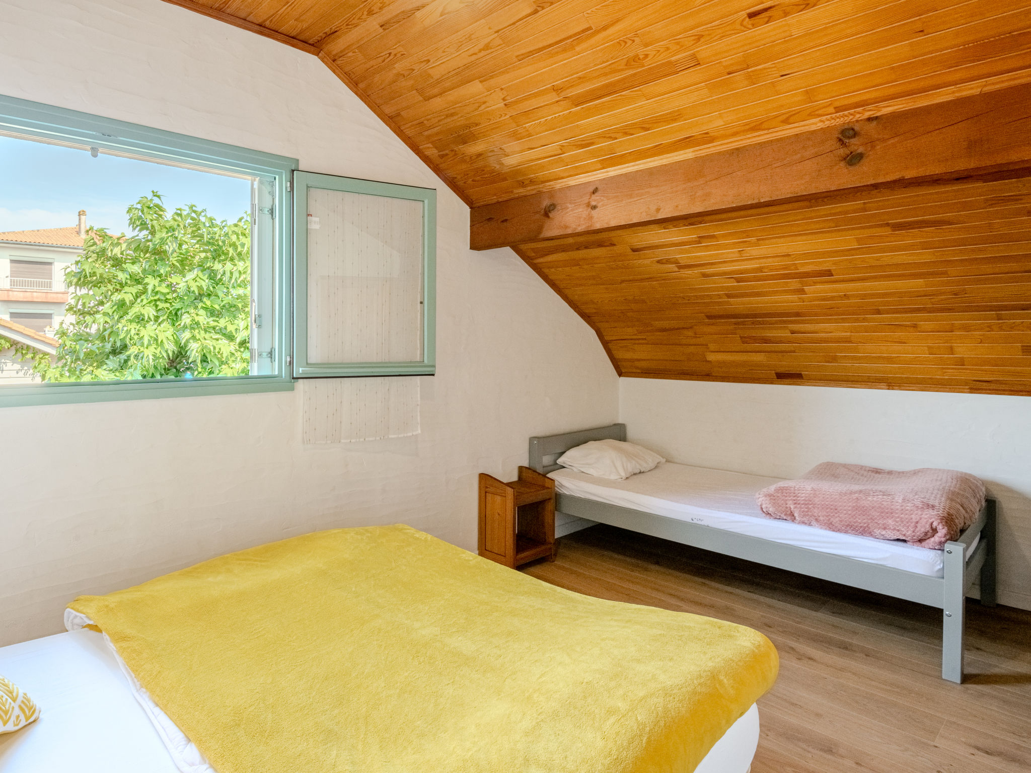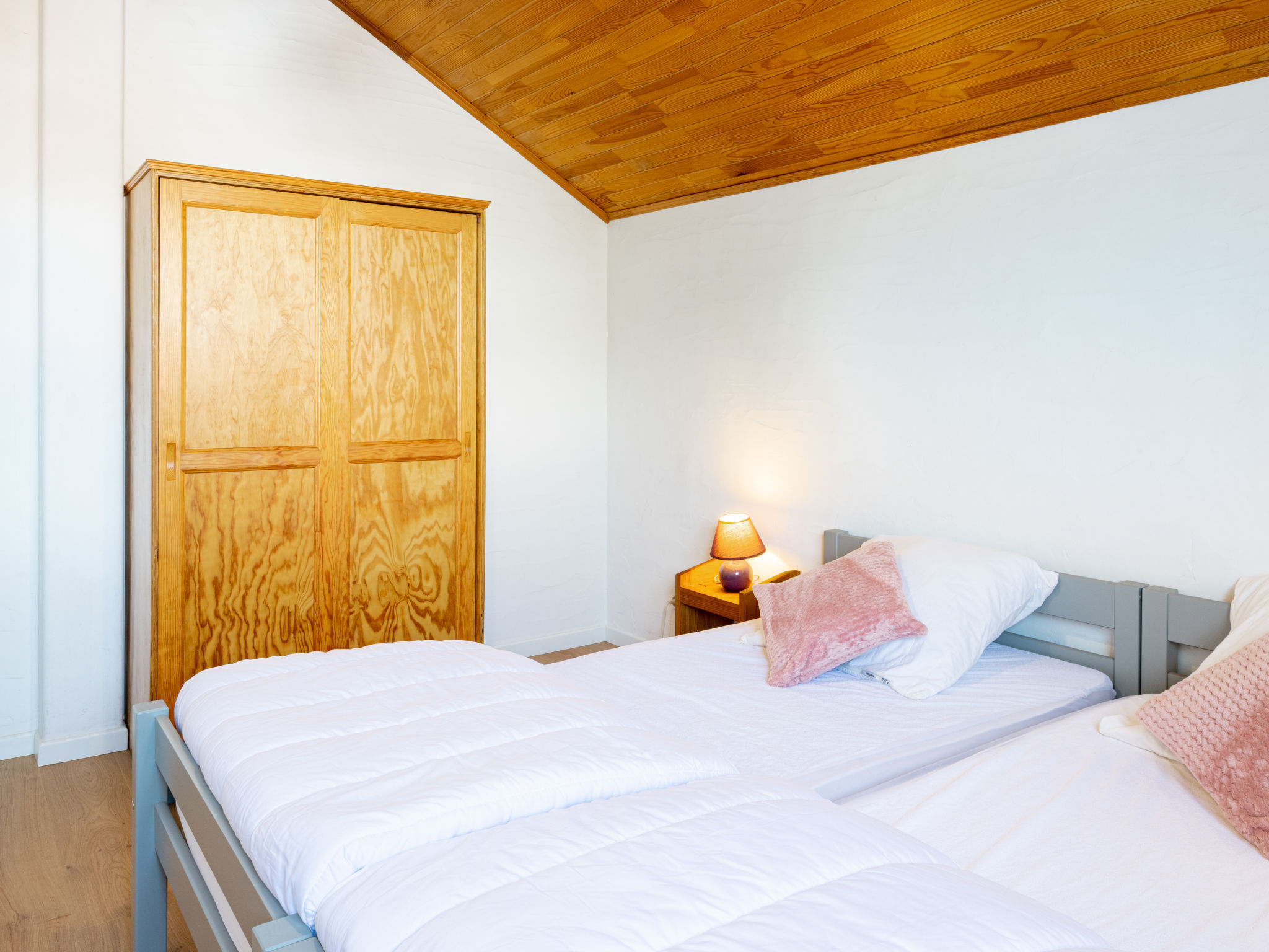 3-Zimmer-Reihenhaus 50 m2 auf 2 Stockwerken. Wohn-/Esszimmer mit TV und Internationale TV-Sender (Flachbildschirm). Ausgang zur Terrasse. Kochnische (4 Kochplatten, Mini-Backofen, Mikrowelle). Dusche, sep. WC. Obergeschoss: 1 abgeschrägtes Zimmer mit 2 Betten (90 cm, Länge 190 cm). 1 abgeschrägtes Zimmer mit 1 Bett (90 cm, Länge 190 cm), 1 franz. Bett (140 cm, Länge 190 cm). Terrasse. Terrassenmöbel, Liegestühle (1). Zur Verfügung: Internet (Wireless LAN, gratis). Bitte beachten: Maximal 1 Haustier/Hund erlaubt. Rauchmelder. Inserat einer Privatperson nach Artikel 155, IV, CGI.
