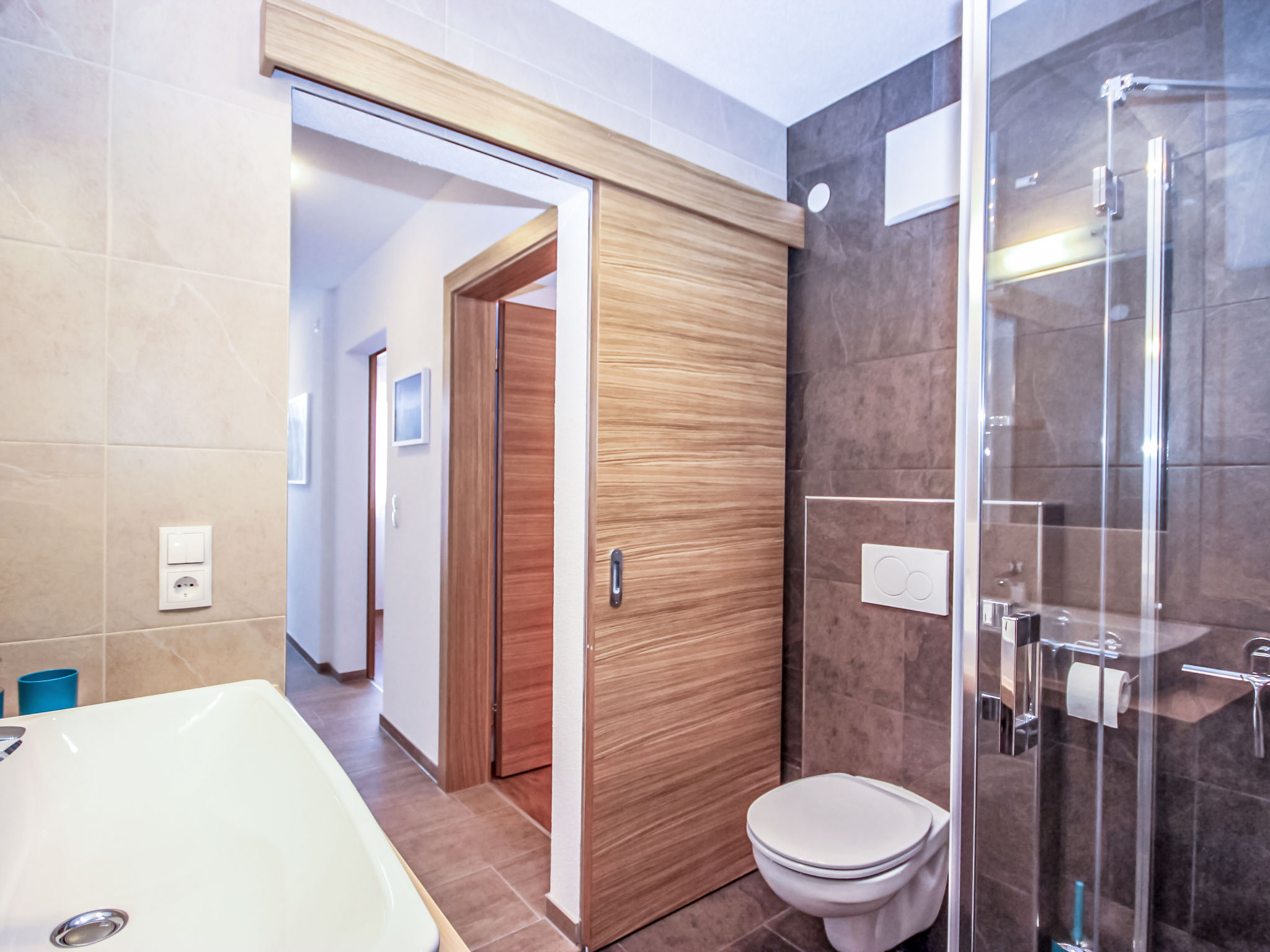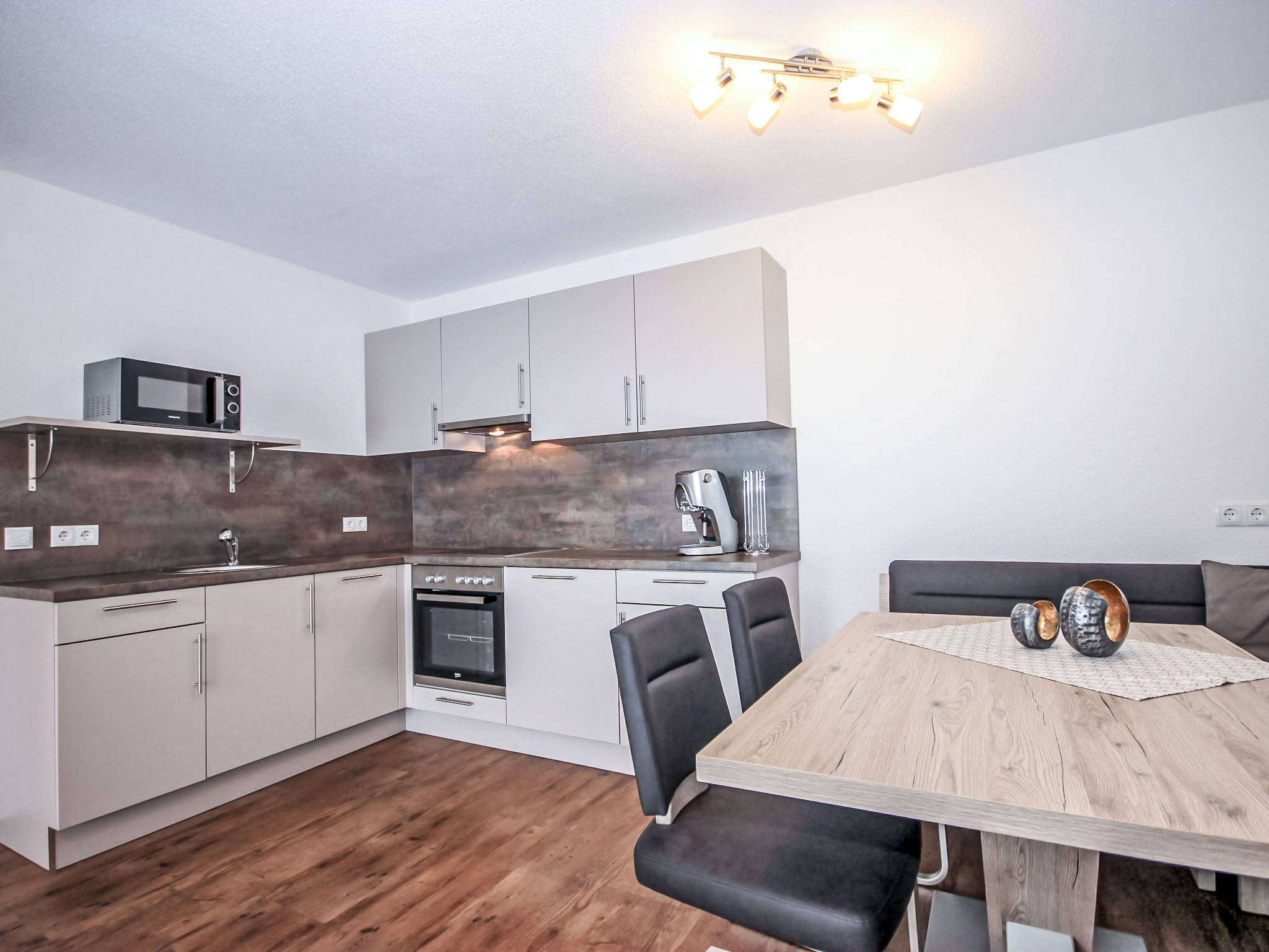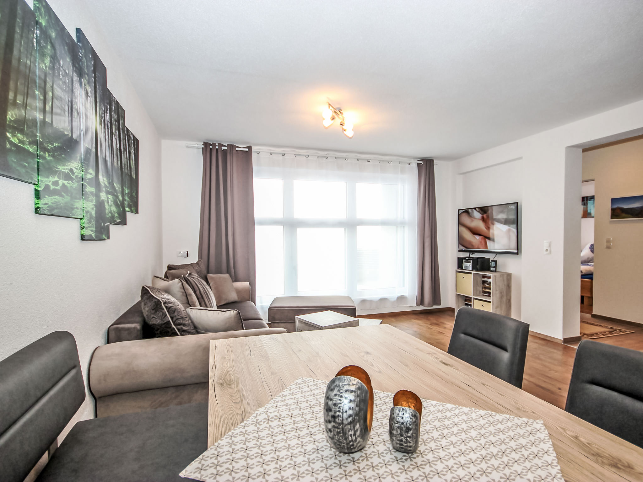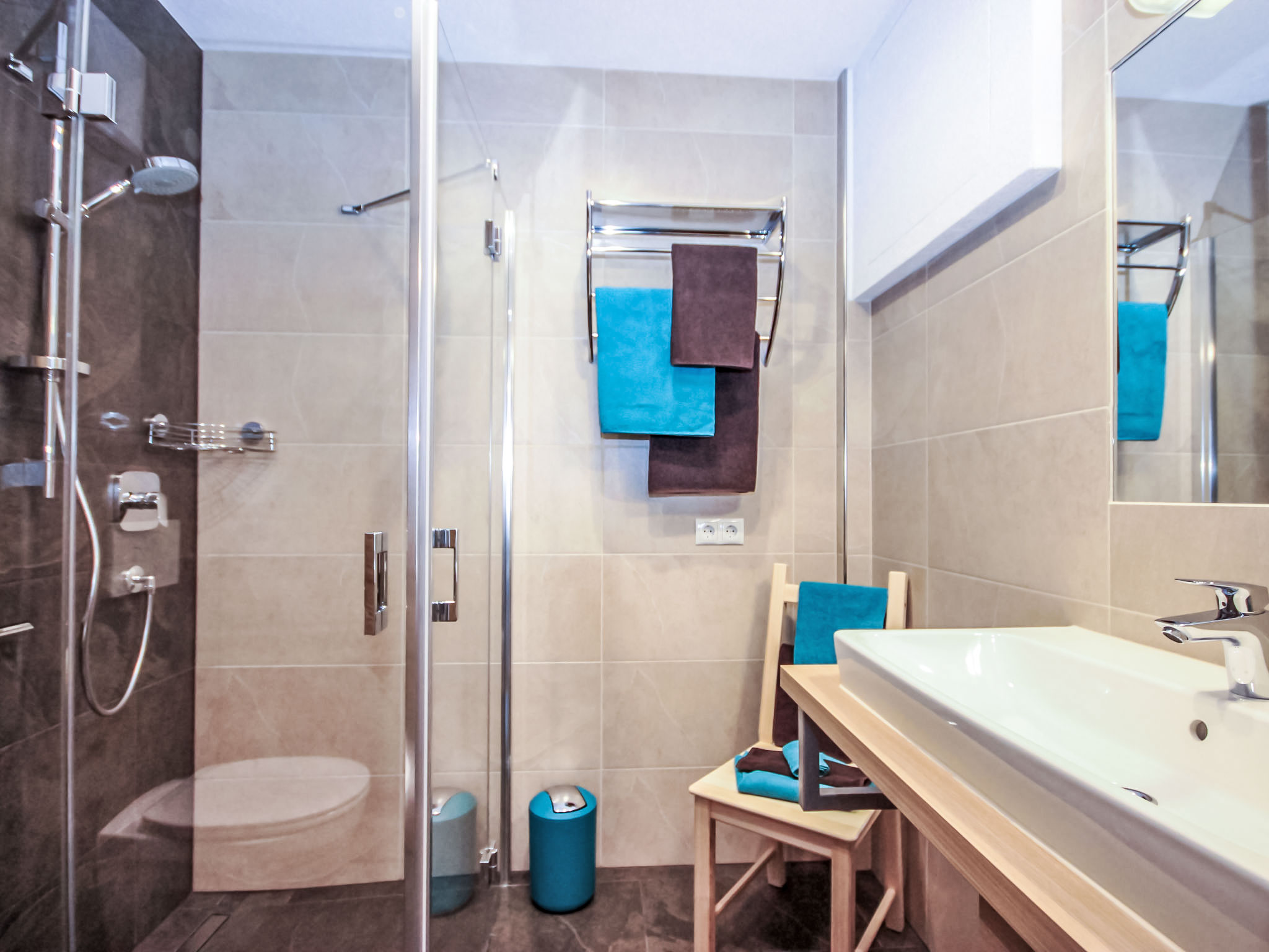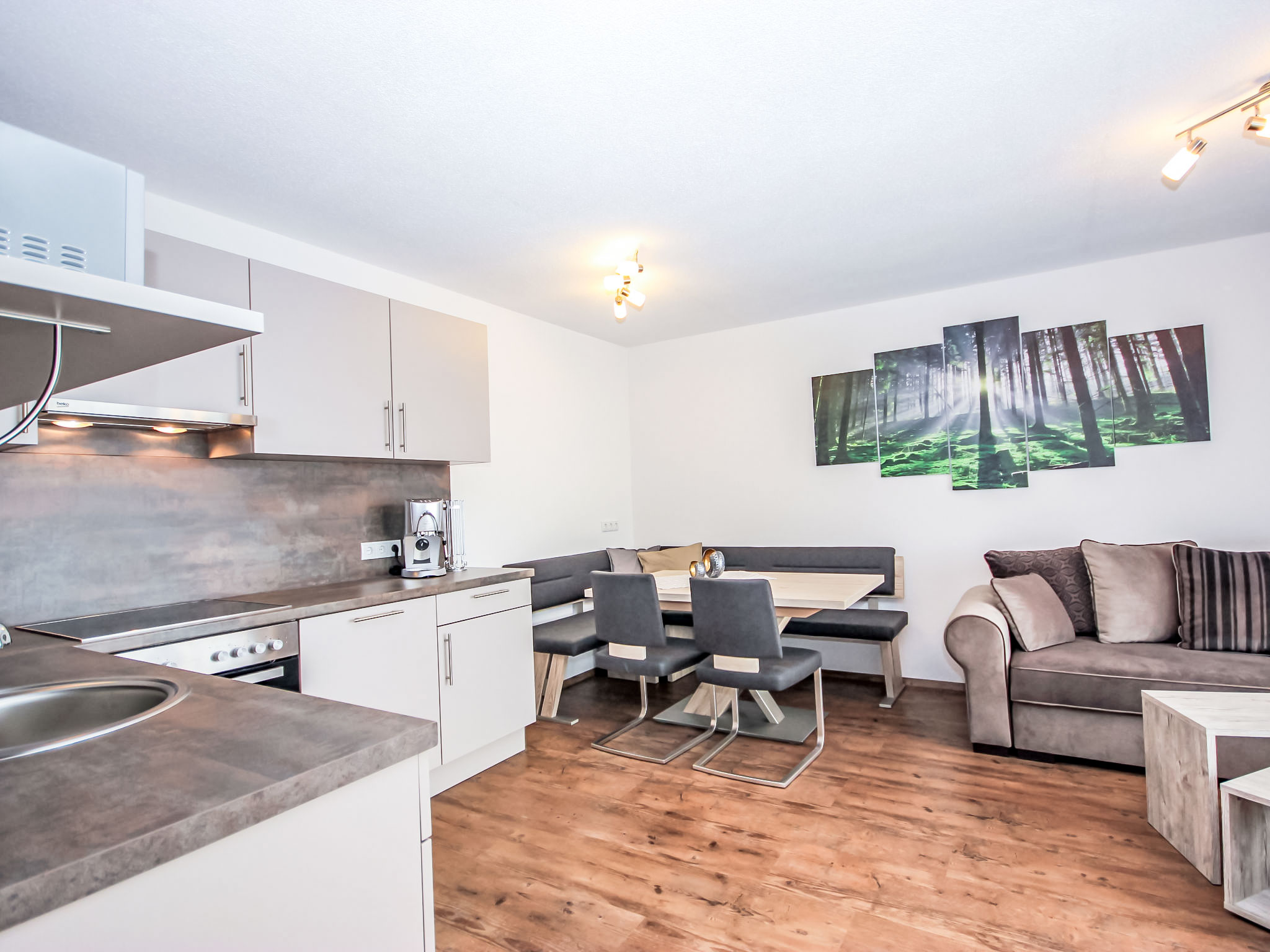 3-Zimmer-Wohnung 50 m2, im Erdgeschoss. Objekt geeignet für 2 Erwachsene + 2 Kinder. Modern und gemütlich eingerichtet: Eingang. 1 Doppelzimmer. 1 Zimmer mit 1 x 2 Etagenbetten. Grosses Wohn-/Schlafzimmer mit Essecke und Sat-TV (Flachbildschirm), Radio, CD, DVD und DVD Sammlung vorhanden. Offene Küche (Backofen, Geschirrspüler, 4 Glaskeramikherd Platten, Mikrowelle, elektrische Kaffeemaschine, Kapseln für die Kaffeemaschine (Cafissimo Tchibo)) mit 1 Doppeldiwanbett. Dusche/WC. Kleine Terrasse 12 m2. Terrassenmöbel, Gartengrill, Sitzplatz. Schöne Sicht auf die Berge. Zur Verfügung: Kinderhochstuhl, Babybett. Internet (Wireless LAN, gratis). Garage (1 Auto) beim Haus. Bitte beachten: geeignet für Familien. Nichtraucher-Unterkunft.