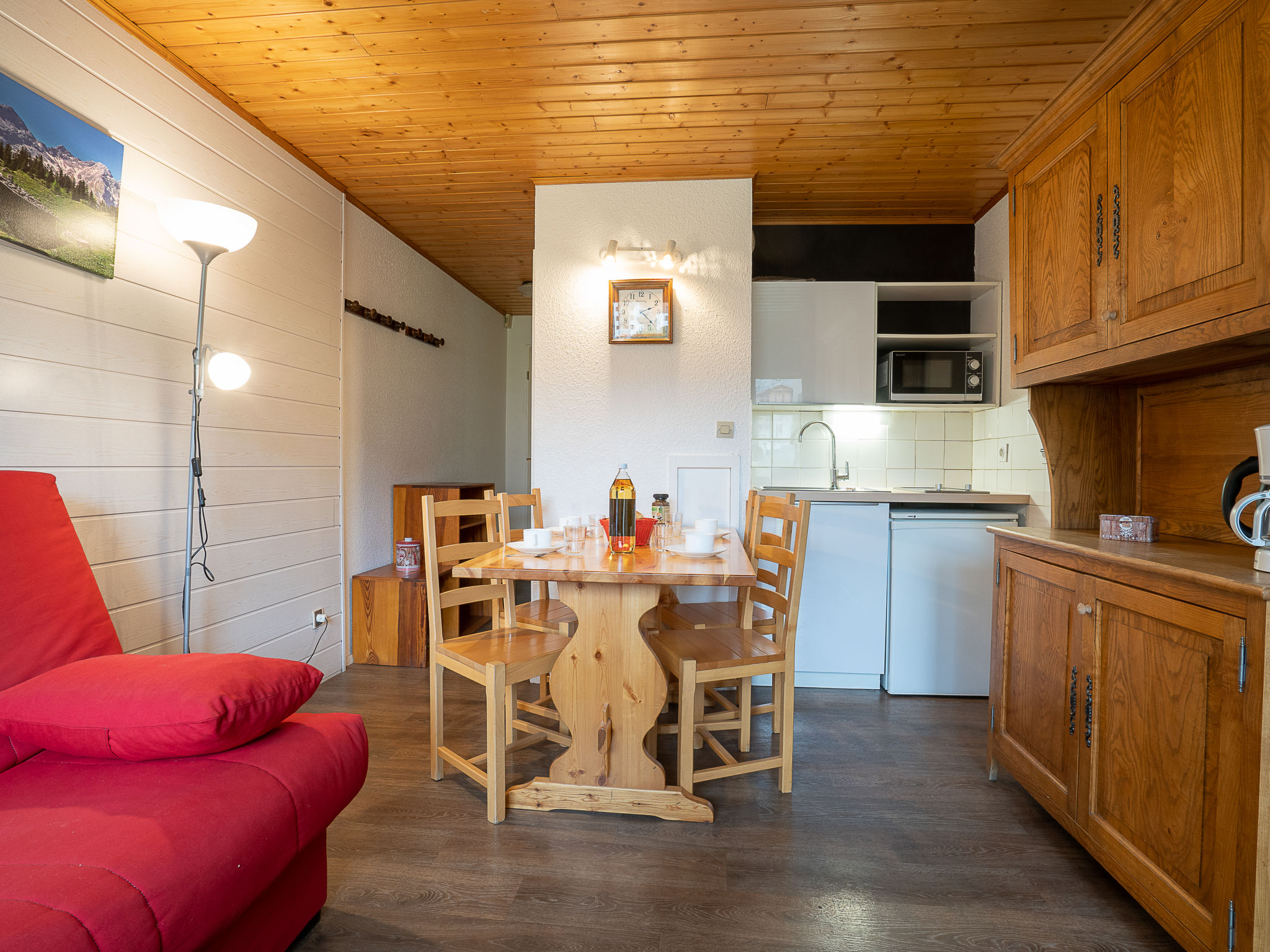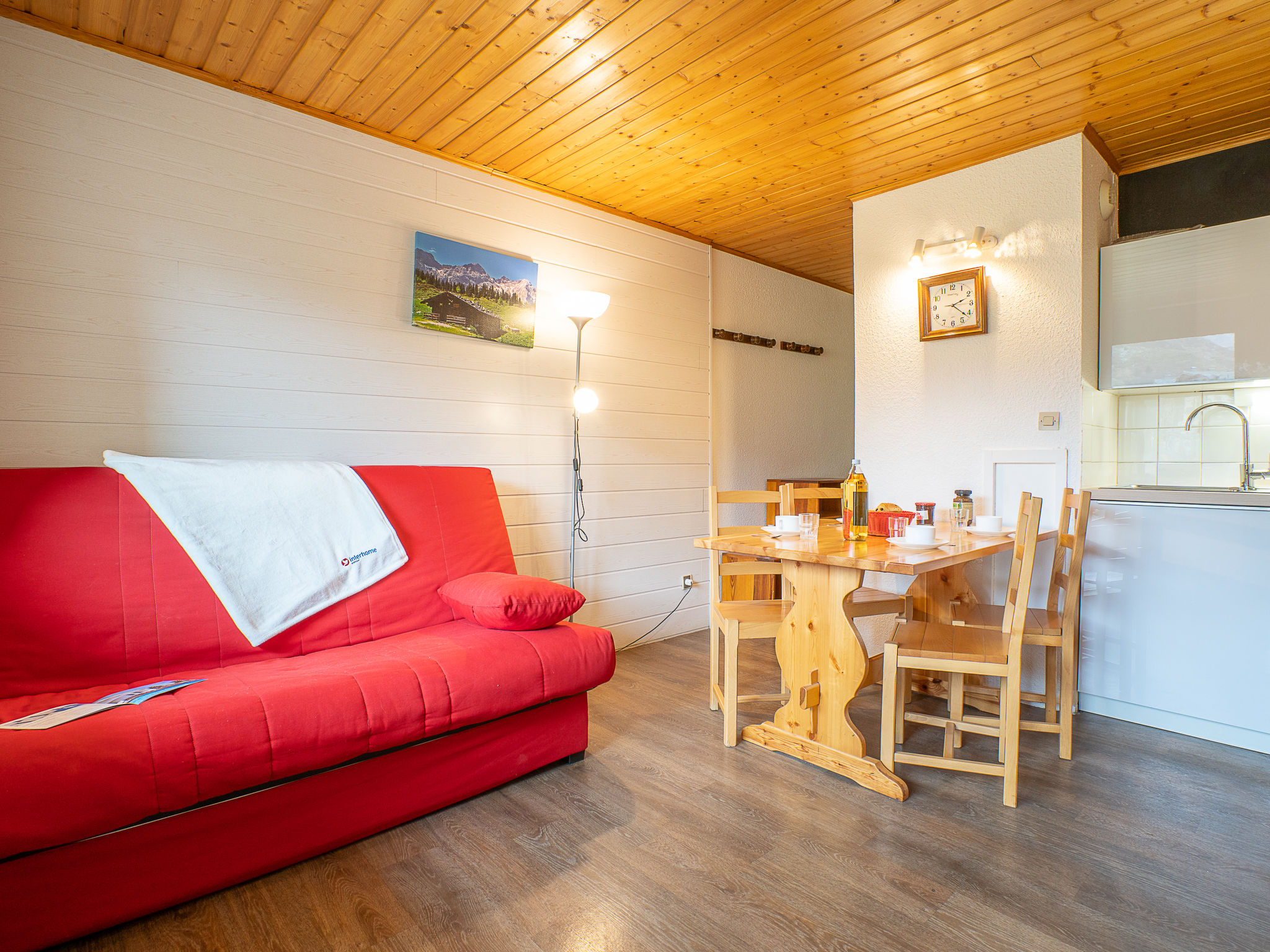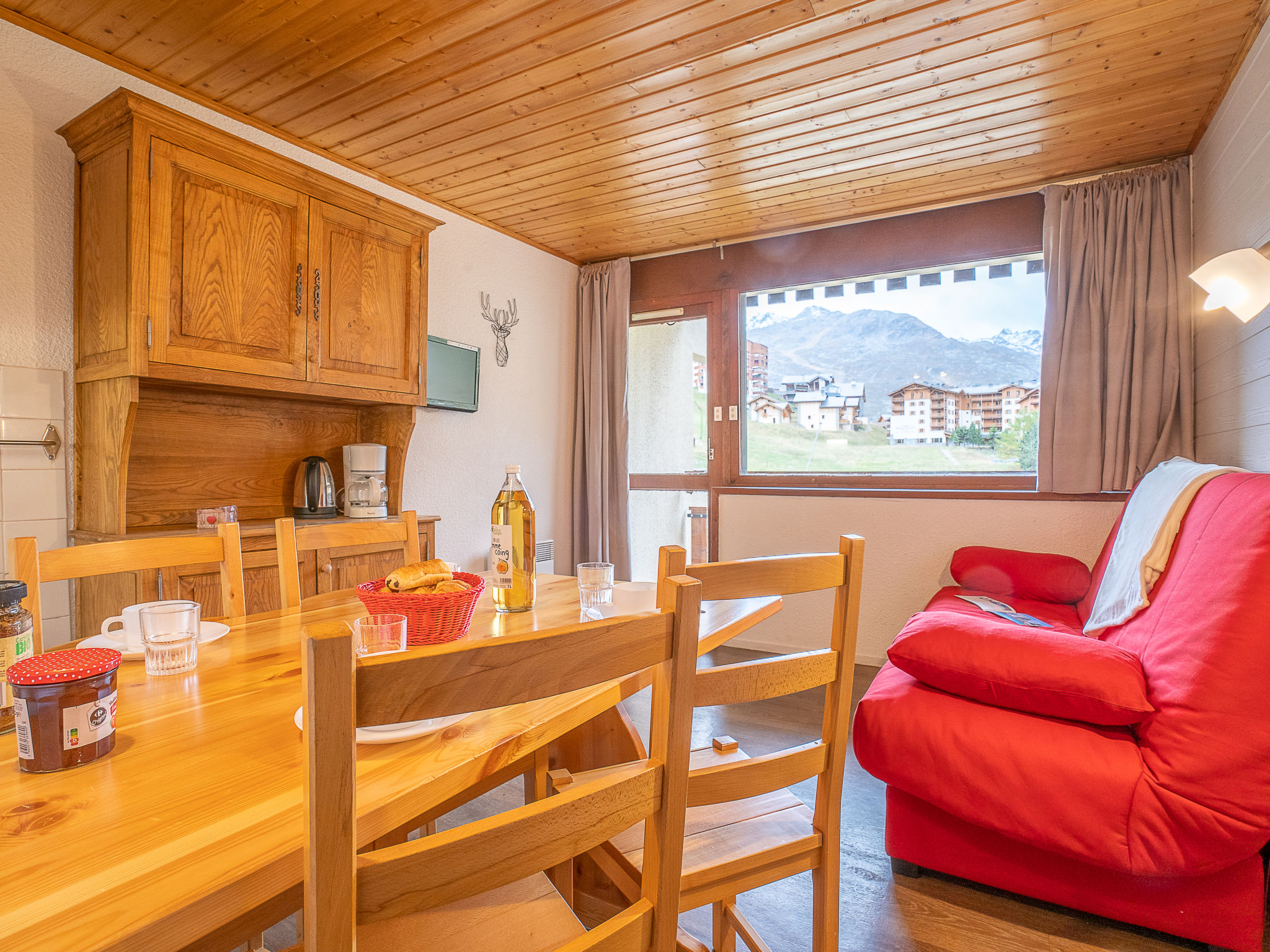 "Asters 1215 B4", 1-Zimmer-Wohnung 24 m2 im 3. Stock. Wohn-/Esszimmer mit 1 Doppeldiwanbett (140 cm, Länge 190 cm), TV (Flachbildschirm), elektrischem Rollladen. Kabine mit 1 x 2 Etagenbetten (70 cm, Länge 190 cm). Kochnische (2 Kochplatten, Wasserkocher, Mikrowelle, elektrische Kaffeemaschine). Bad/WC. E-Heizung. Balkon, Südlage. Sehr schöne Sicht auf die Berge und die Skipiste. Zur Verfügung: Internet (Wireless LAN, extra). Bitte beachten: Maximal 1 Haustier/Hund erlaubt. Rauchmelder. Gebäude B4, direkt bei den Skipisten. Die Wohnung befindet sich auf Höhe des Eingangs.