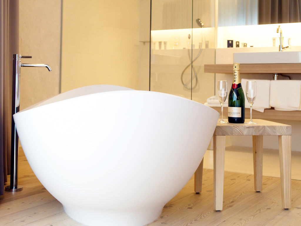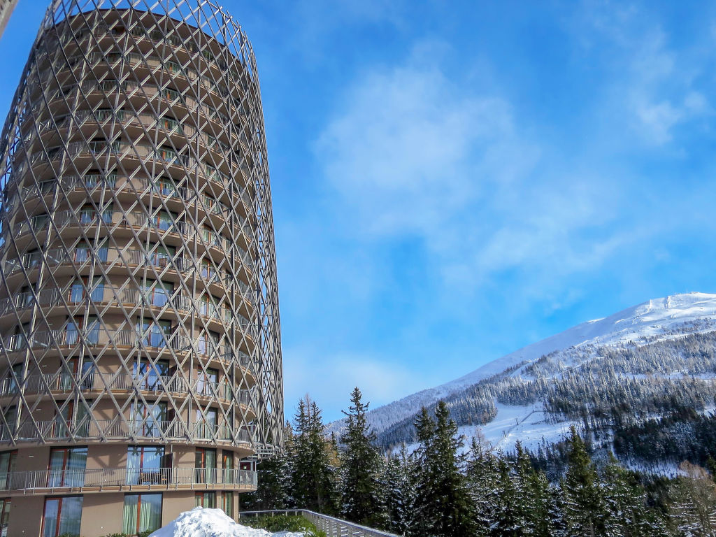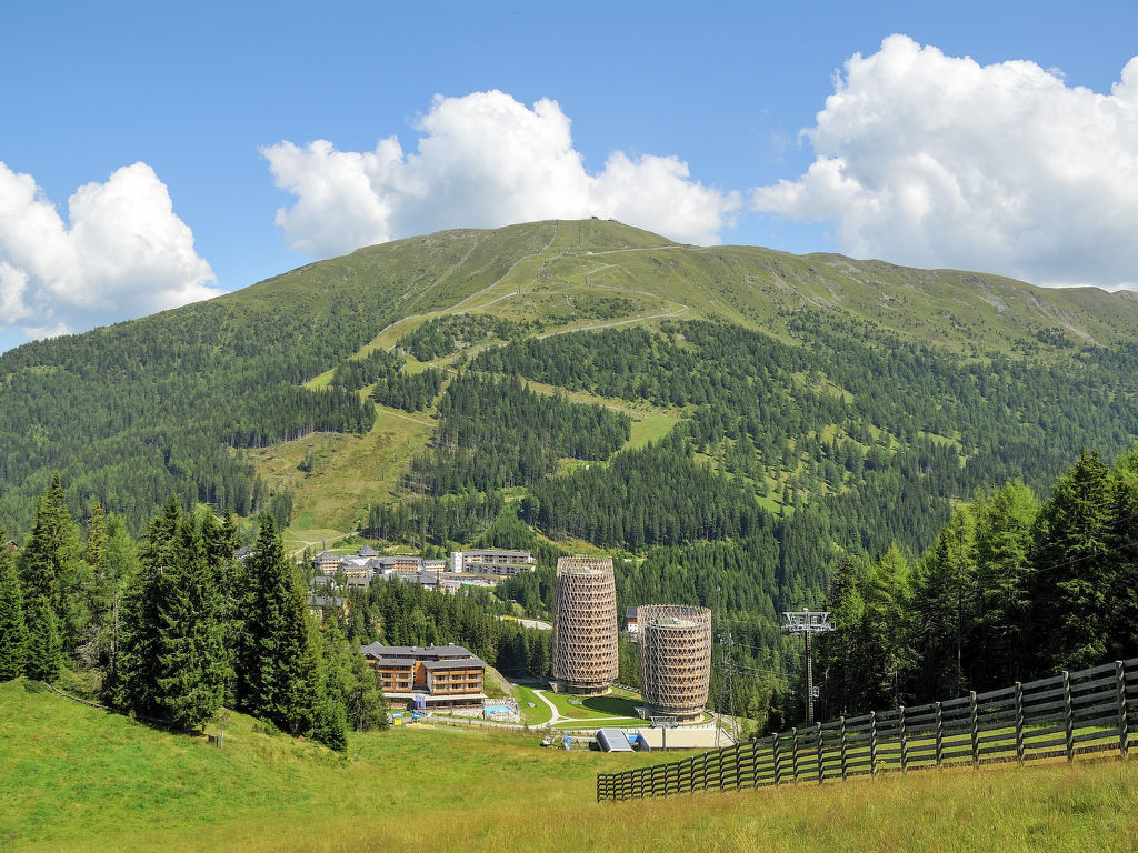 Die PREMIUM APARTMENTS EDEL:WEISS mit insgesamt 64 Wohnungen liegen zusammen mit dem angeschlossenen Hotel Cristallo in herrlicher Panoramalage auf ca. 1640 m Höhe. Ortsmitte Katschberghöhe sowie Adventurepark Katschberg mit Hochseilgarten und Sommerrodelbahn ca. 100 m. Nächste Einkaufsmöglichkeiten ca. 300 m. St. Michael 6 km. Die Aineckbahn (ca. 500 m) führt vom Ort auf das ca. 2220 m hoch gelegene Hochplateau des Aineck. Von dort schöne Fernsicht auf die umliegenden Berggipfel. Tiefgaragenplatz (€ 9/Tag) obligatorisch (keine weiteren Parkmöglichkeiten). Das Hotel, das über einen beheizten Verbindungsgang mit den Appartements verbunden ist, verfügt über eine 2000 m² große Wellnesslandschaft mit beheiztem Indoor-Pool (15 x 6 m, 1,40 m tief, ganzjährig geöffnet), großzügigem Saunabereich (Finnische Sauna, Vitalsauna, Sole-Dampfbad, Whirlliegen, Kaltwasserkanal), Fußwärmebecken, Ruheräumen, SPA Lounge und Sonnenterrasse zur kostenlosen Mitbenutzung. Gegen Gebühr: Massagen, Bäder, Packungen, Gesichts- und Körperbehandlungen sowie 2 Solarien. Für Kinder steht ein eigener Kinderwellness- und Poolbereich mit beheiztem Pool (13 x 5 m, 1,10 m tief, ganzjährig geöffnet), Planschbecken (ca. 5 m², 0,35 m tief), Rutsche, eigener Kindersauna und eigenem Kinderdampfbad zur Verfügung. Cardio-Fitness- und Gymnastikraum. Kostenlose Kinderanimation (3-12 Jahre), Babysitter gegen Gebühr. In den Monaten Dezember bis April Babybett, Küchenset und Badetasche (Bademantel, Badeschuhe) inklusive (leihweise für die Zeit des Aufenthalts), in den Monaten Mai bis November gegen Aufpreis erhältlich. Frühstück, Mittag- und Abendessen kann hinzu gebucht werden (Bestellung/Bezahlung vor Ort). Die Wohnungen SML 550 liegen im Erdgeschoss oder in der 1.-4. Etage, SML 551 in der 5.-9. Etage und SML 552 in der 2.-4. Etage. Alle Wohnungen mit möbliertem Balkon und Blick auf die Berge. Moderne und geschmackvolle Einrichtung in alpinem Stil mit ausgewähltem Mobiliar. Parkettboden. Sat-TV, Radio, Telefon, Internetzugang (WLAN, inklusive). Fön. Rauchmelder. Fußbodenheizung. Hinweis: Rauchen ist sowohl in den Wohnungen, wie auch auf den Balkonen nicht gestattet. Winter-Infos: Die Appartements liegen direkt an der Piste. Skischule und Skiverleih im Hotel. Aineckbahn ca. 500 m.
