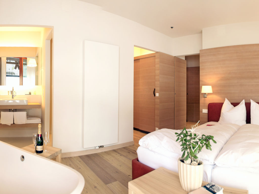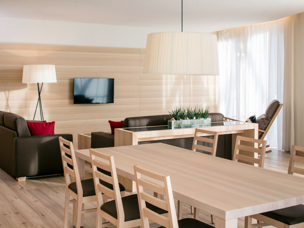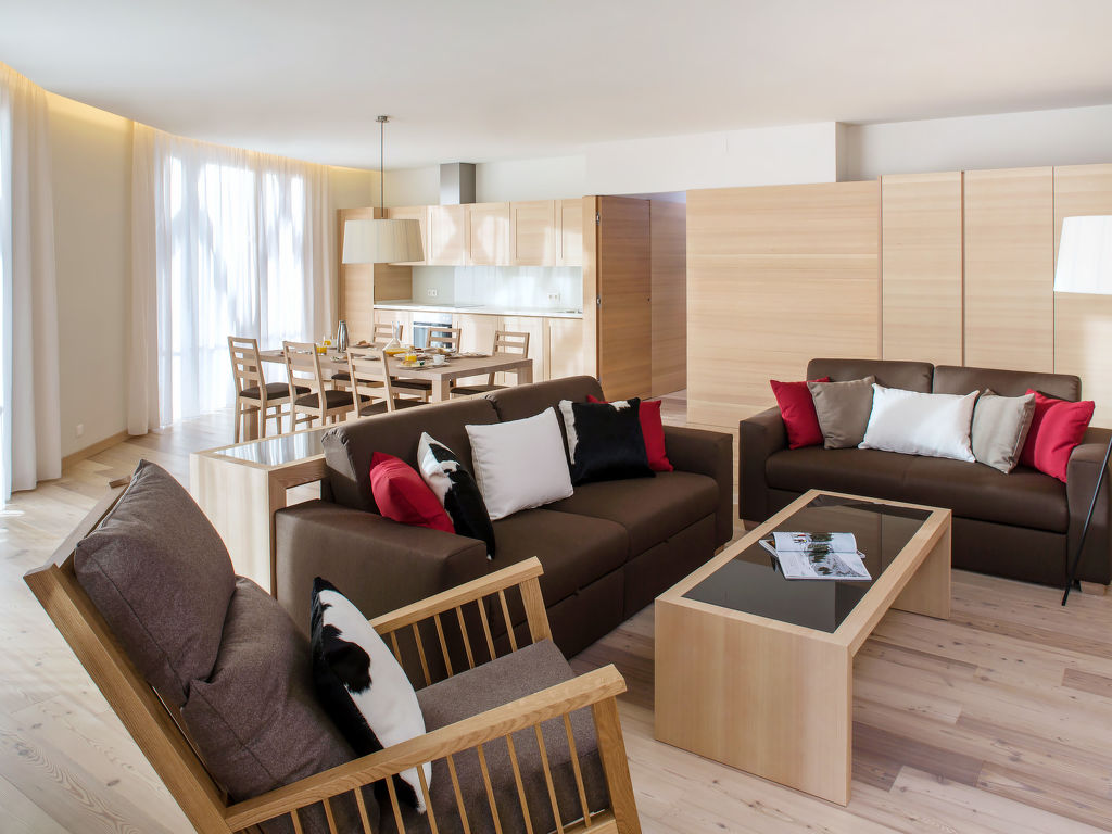 "Premium Apartments EDEL:WEISS (SML552)", 3-Zimmer-Wohnung 75 m2. Hell, modern und geschmackvoll eingerichtet: Wohn-/Schlafzimmer mit 1 Doppeldiwanbett, Esstisch, Sat-TV und Radio. Ausgang zum Balkon. 1 Zimmer mit 1 Doppelbett, Waschbecken, sep. WC und Dusche. Ausgang zum Balkon. 1 Zimmer mit 1 Doppelbett und Bad/Dusche/WC. Ausgang zum Balkon. Offene Küche (Backofen, Geschirrspüler, 4 Glaskeramikherd Platten). Fussbodenheizung. Parkettböden. Balkon. Balkonmöbel. Herrliche Panoramasicht auf die Berge und die Landschaft. Zur Verfügung: Telefon, Kinderhochstuhl, Babybett (extra), Haartrockner. Internet (Wireless LAN, gratis). Bitte beachten: geeignet für Familien. Nichtraucher-Unterkunft. Rauchmelder.