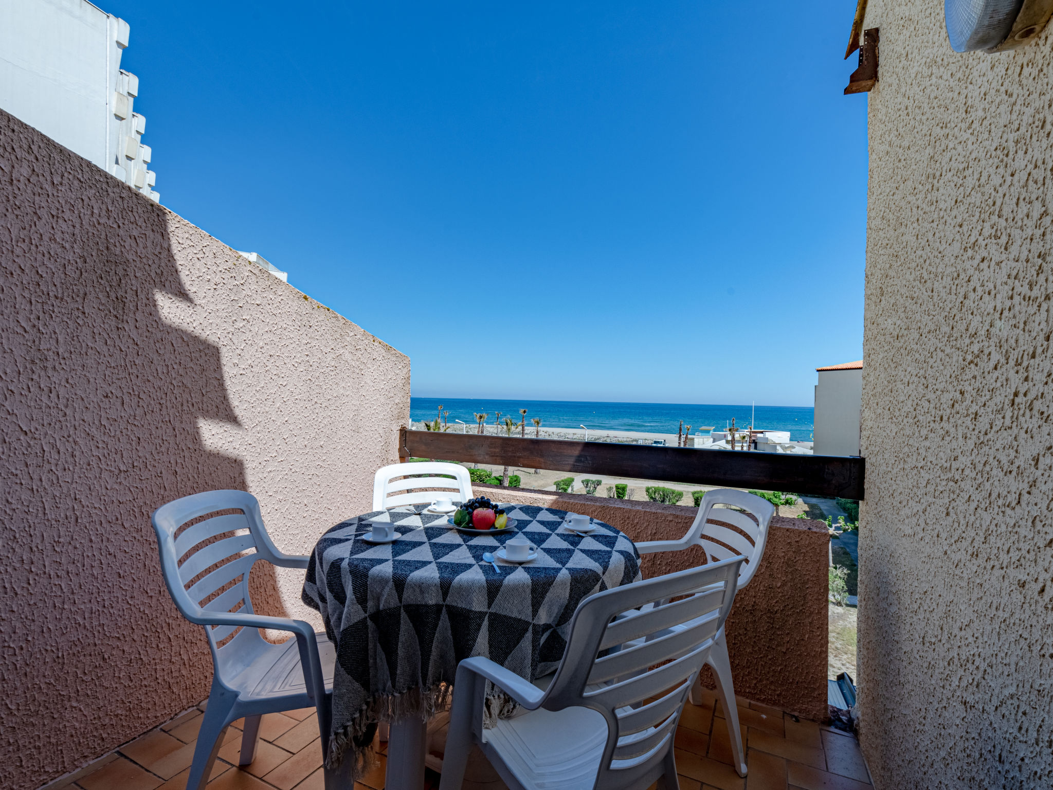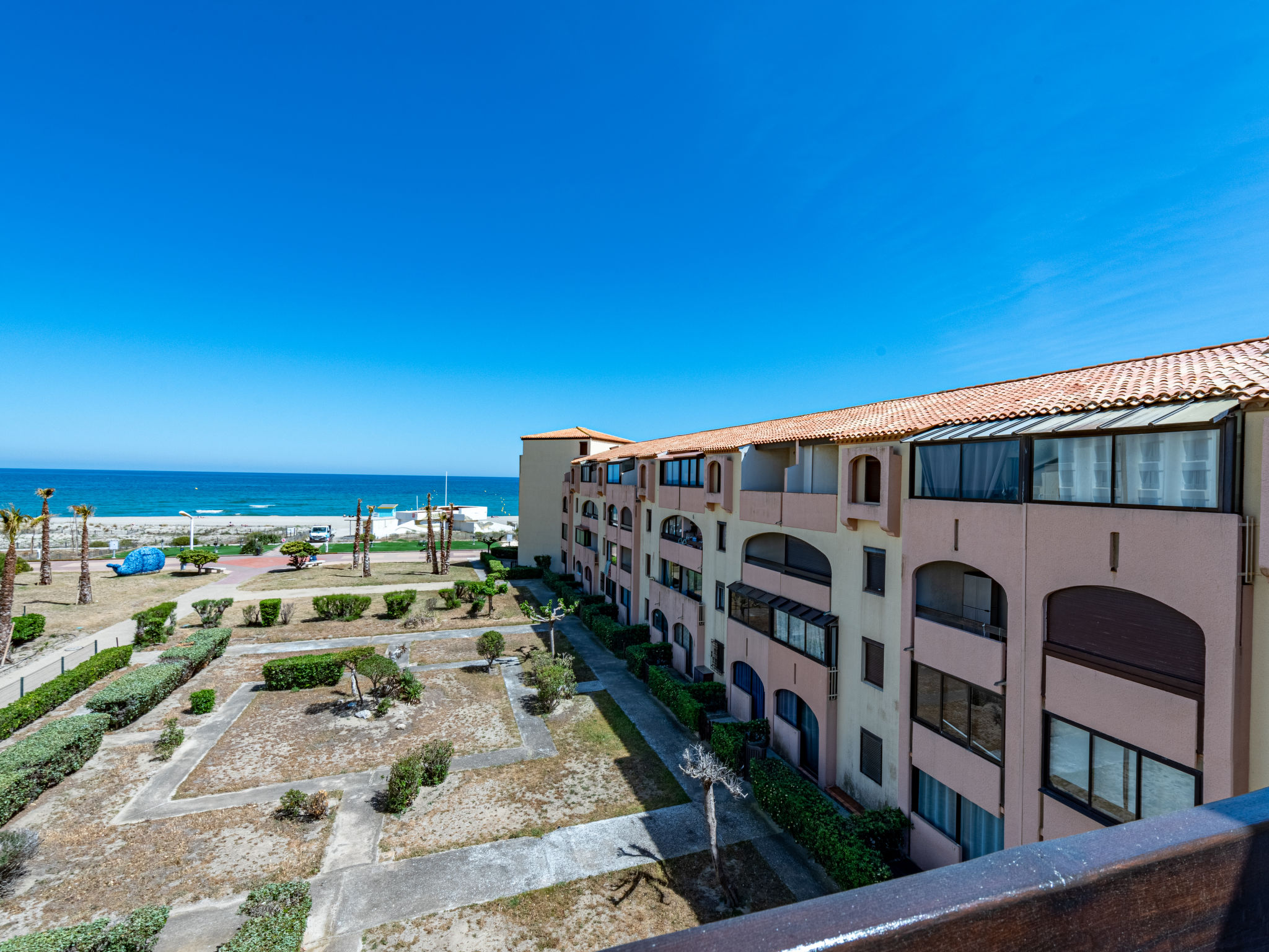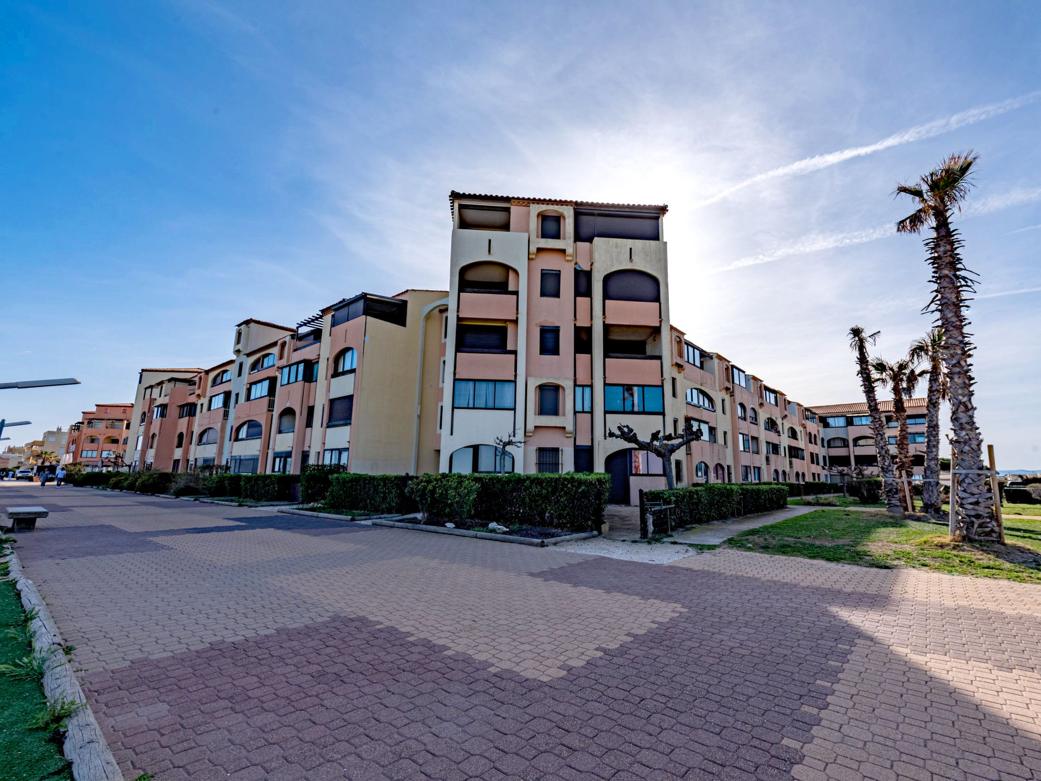 Residenz "Front de Mer", auf 3 Stockwerken. Im Ortsteil Grande Plage, belebte Lage, 50 m vom Meer, 50 m vom Strand. In der Anlage: Parkplatz. Einkaufsgeschäft, Einkaufszentrum, Restaurant 50 m. Nahe gelegene Sehenswürdigkeiten: Aqualand Port Leucate 7 km, Réserve Africaine de Sigean 41 km, site des dosses 4 m, téléski nautique 5 m. Bekannte Seen in der Umgebung sind gut erreichbar: Etang de Leucate ou salses 11 km, Lac de Villeneuve de la Raho 28 km. Wandergebiete: Sentier du guetteur 8 km, la forteresse de salses 15 km, Sentier du littoral Collioure 40 km. Bitte beachten: In diesem Haus sind weitere Ferienwohnungen mietbar.