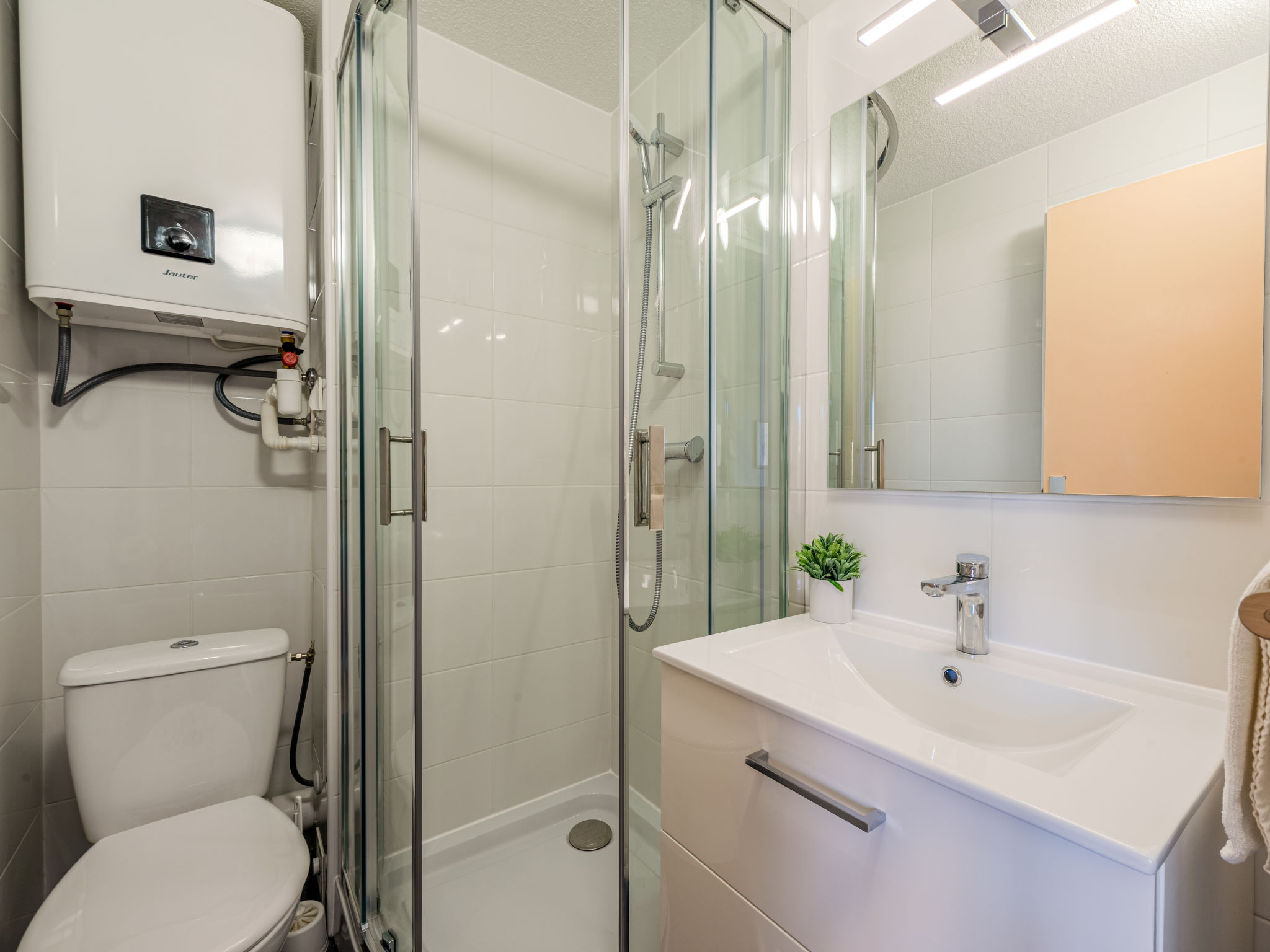 2-Zimmer-Wohnung 32 m2 im 3. Stock. Wohn-/Esszimmer mit TV. 1 Zimmer mit 1 franz. Bett (1 x 140 cm). Offene Kabine mit 1 x 2 Etagenbetten (80 cm). Kochnische (2 Kochplatten, Mikrowelle, elektrische Kaffeemaschine). Dusche/WC. Kleiner Balkon 4 m2. Terrassenmöbel. Schöne Sicht auf das Meer. Zur Verfügung: Internet (Wireless LAN, extra). Parkplatz. Bitte beachten: Rauchmelder. Inserat einer Privatperson nach Artikel 155, IV, CGI.