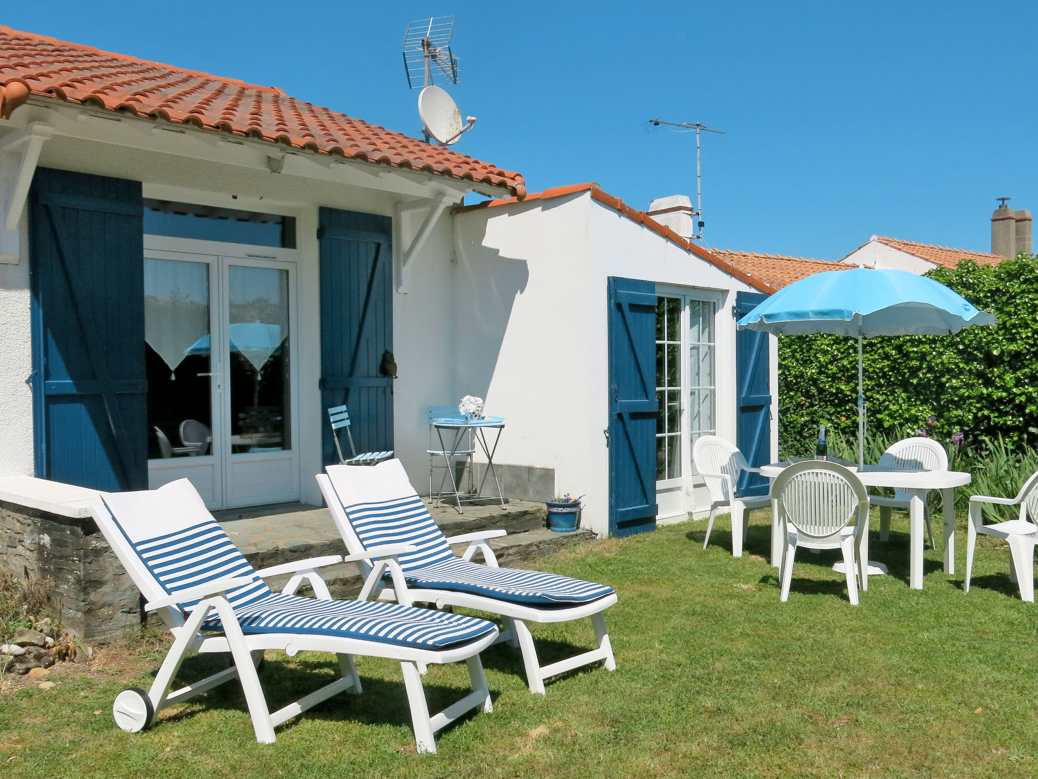 Das kleine Ferienhaus besticht durch seine gute Lage, nur ca. 300 m vom langen feinsandigen Strand entfernt. Ortsmitte von L’Epine ca. 500 m. Erste Geschäfte und Marktplatz (wöchentlicher Markt) ca. 350 m. Tennis 1 km. Ca. 380 m² großes, abgeschlossenes und naturbelassenes Grundstück. Vor dem Haus kleine, leicht erhöhte Terrasse. Hinter dem Haus ca. 20 m² große, geschützte Terrasse mit Gartenmöbeln, 2 Liegestühlen und Grill. Parkmöglichkeit auf dem Grundstück. Einfache, freundliche Einrichtung. Fliesenböden. Sat-TV (deutsche Programme). Internetzugang (WLAN, inlusive). Waschmaschine, Bügeleisen/-brett. Elektroradiatoren.