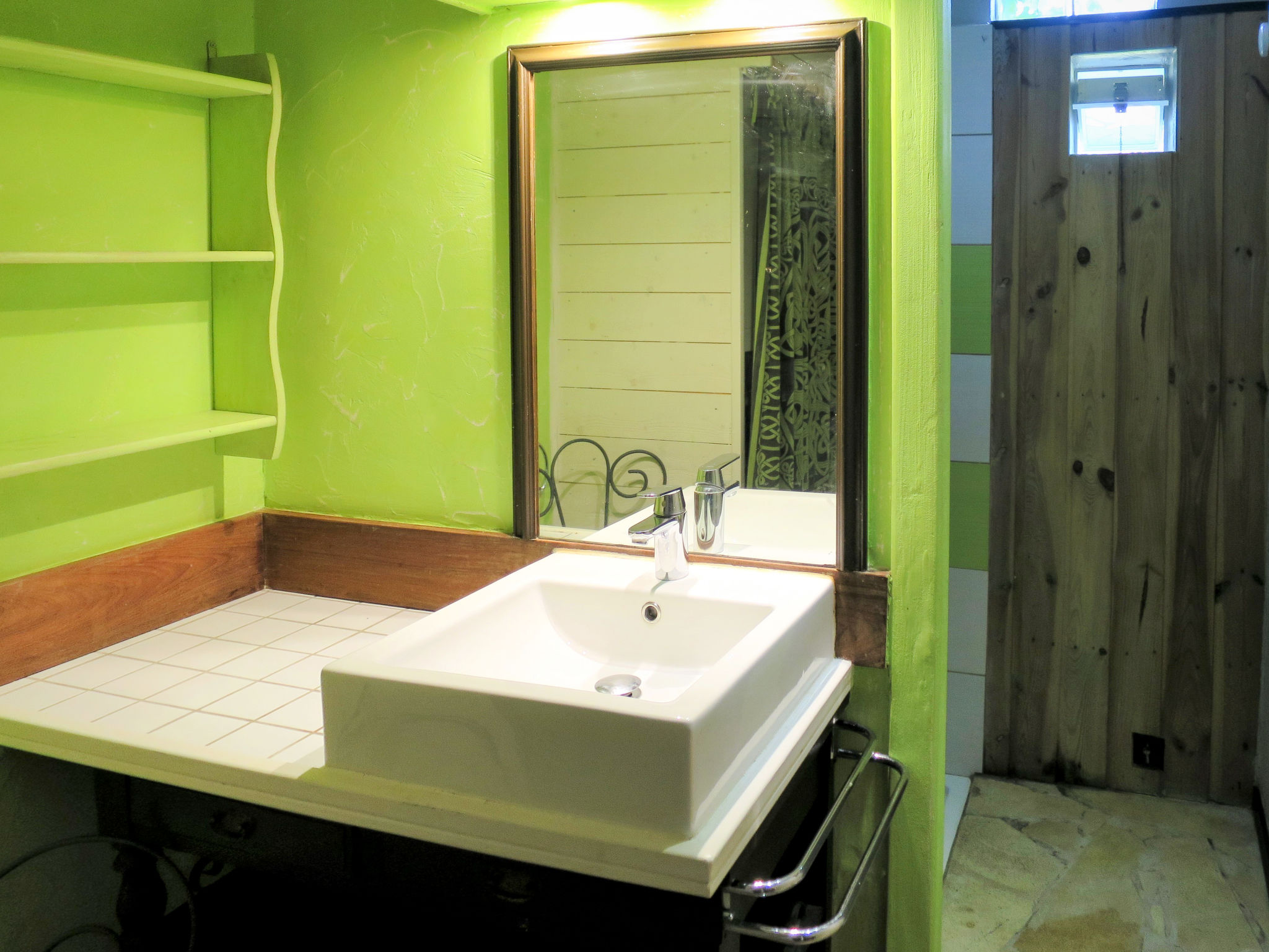 2-Zimmer-Haus, ca. 38 m². Eingang über Terrasse in Wohn-/Schlafraum mit Doppelbettcouch, Kaminofen, Essplatz, Küchenzeile (4 Flammen, Backofen, Mikrowelle, Kühl-/Gefrierkombination, Kaffeemaschine, Wasserkocher, Geschirrspüler im Abstellraum). Schlafzimmer mit franz. Bett. Dusche. Sep. WC. Inserat einer Privatperson nach Artikel 155, IV, CGI.