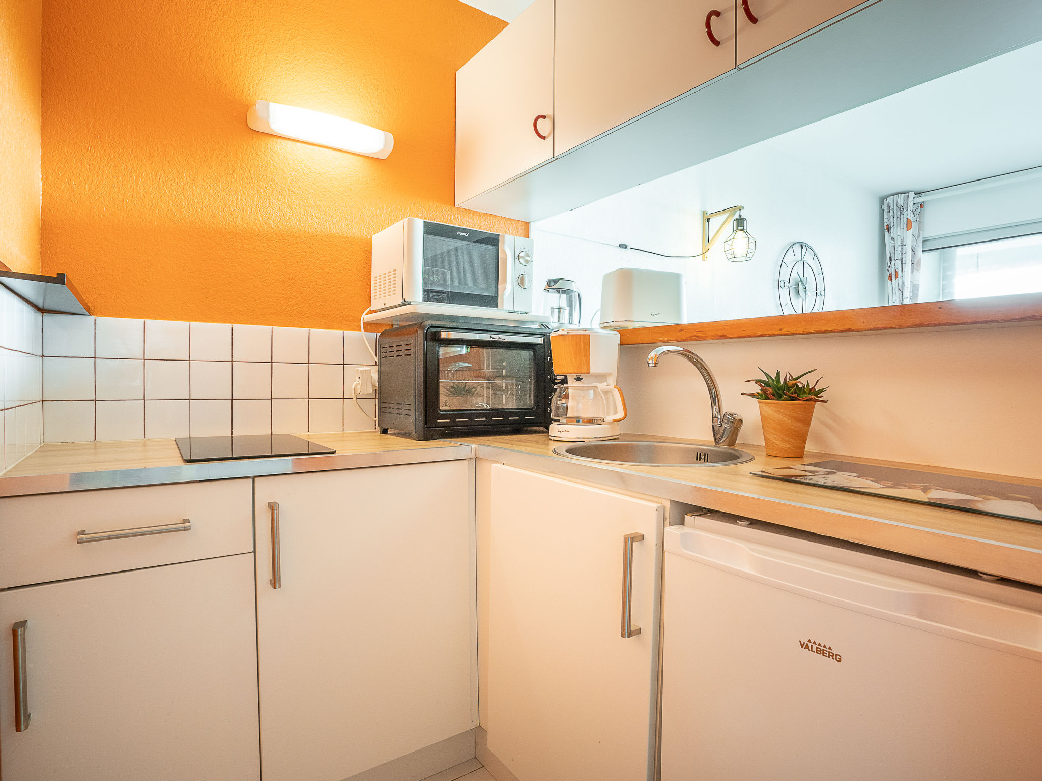 2-Zimmer-Wohnung 32 m2 im 3. Stock. Wohn-/Esszimmer mit 1 Doppeldiwanbett (140 cm, Länge 190 cm), TV (Flachbildschirm), Ventilator. Ausgang zur Terrasse. 1 Zimmer mit 1 Bett (130 cm, Länge 190 cm). Offene Küche (2 Kochplatten, Mini-Backofen, Toaster, Wasserkocher, Mikrowelle, elektrische Kaffeemaschine). Bad, sep. WC. E-Heizung. Terrasse 8 m2, Ostlage. Terrassenmöbel. Panoramasicht auf das Meer. Zur Verfügung: Waschmaschine, Bügeleisen. Internet (Wireless LAN, gratis). Parkplatz. Bitte beachten: 1 Haustier/Hund erlaubt. Rauchmelder. Inserat einer Privatperson nach Artikel 155, IV, CGI.