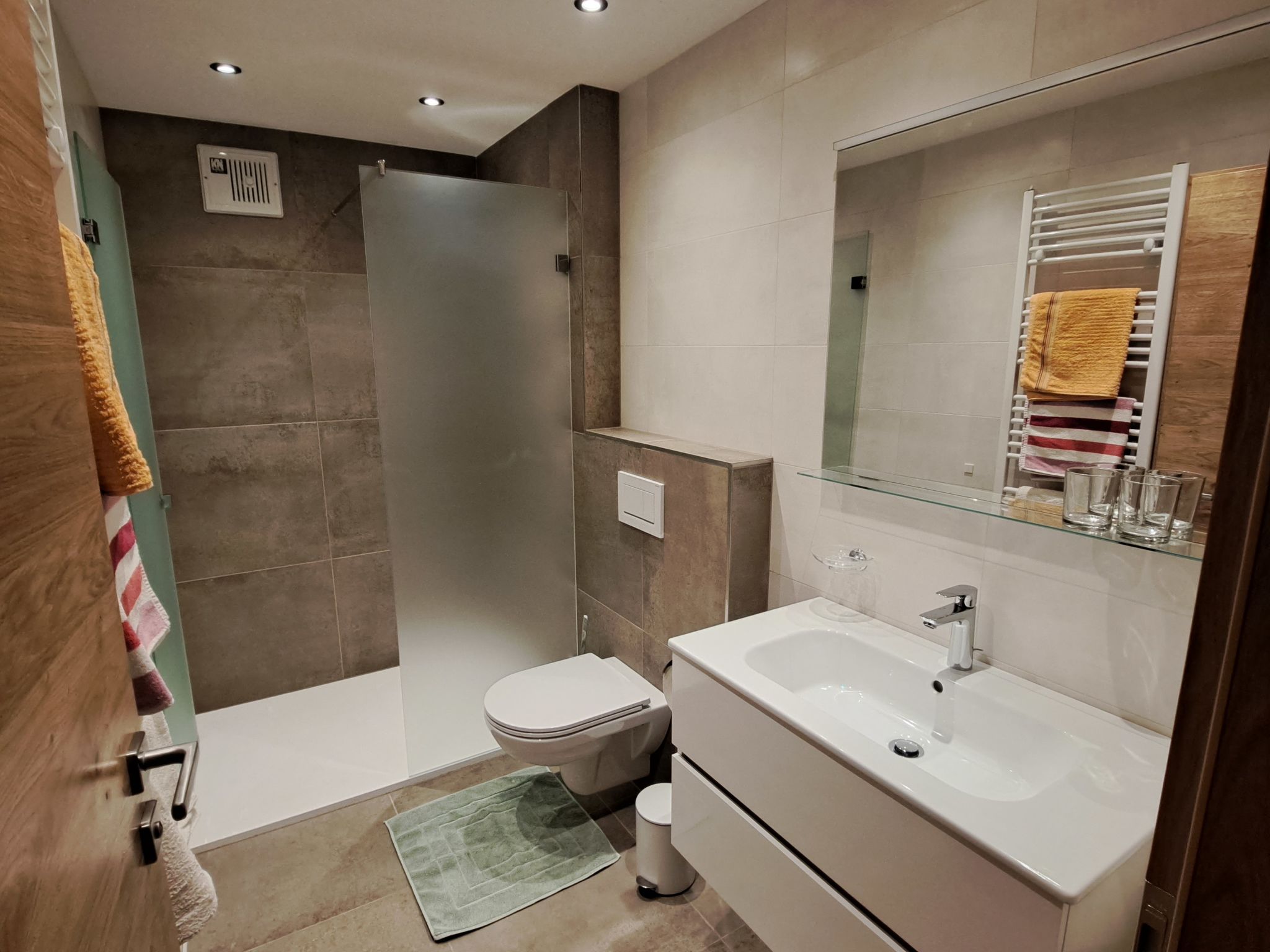"Waldfrieden (MON260)", 2-Zimmer-Wohnung 35 m2 im 1. Stock. Objekt geeignet für 2 Erwachsene + 2 Kinder. Gemütlich eingerichtet: 1 Zimmer mit 1 Bett (Länge 170 cm), 1 Diwanbett und 1 Doppelbett. Wohnküche (Backofen, 4 Glaskeramikherd Platten, Toaster, Wasserkocher, elektrische Kaffeemaschine) mit 1 Diwanbett, Essecke, Sat-TV, CD und DVD. Ausgang zum Balkon. Bad/WC. Heizung. Parkettböden. Balkon. Balkonmöbel. Zur Verfügung: Kinderhochstuhl, Babybett. Internet (Wireless LAN, gratis). Bitte beachten: Nichtraucher-Unterkunft.