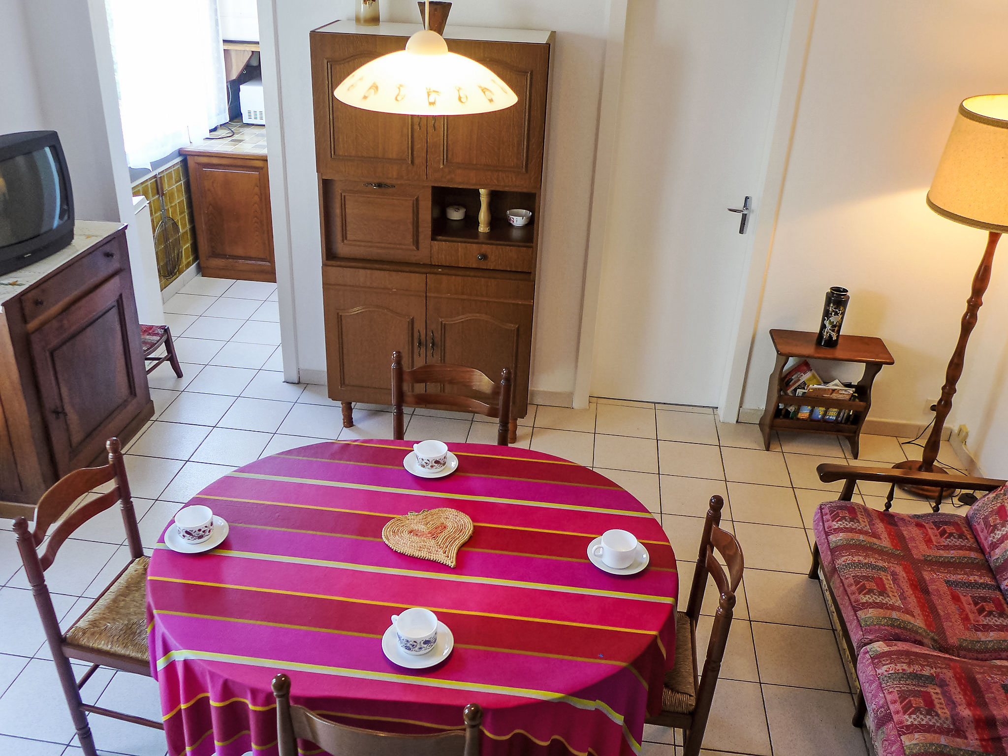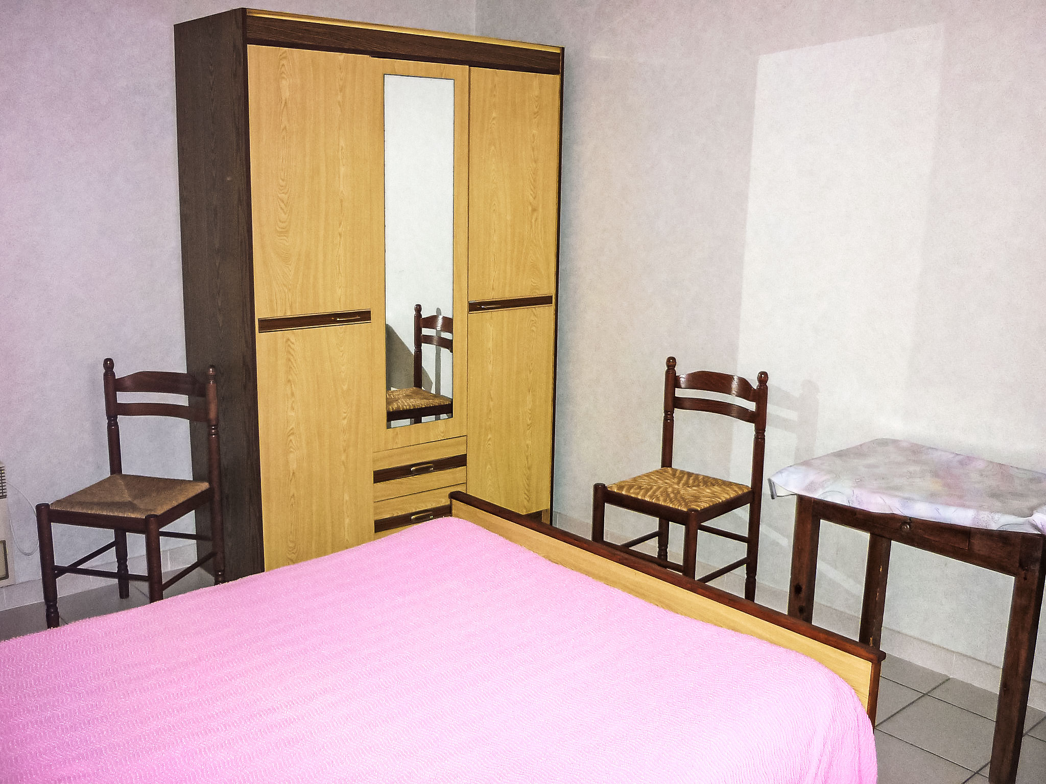 4-Zimmer-Haus 85 m2 auf 2 Stockwerken. Wohn-/Esszimmer mit TV. 1 Zimmer mit 1 franz. Bett (140 cm). Küche (4 Kochplatten, Backofen, Geschirrspüler, Mikrowelle, Tiefkühler). Dusche/WC. Obergeschoss: Galerie mit 1 Bett (90 cm). 2 Zimmer, jedes Zimmer mit 1 franz. Bett (140 cm). Sep. WC. Terrassenmöbel, Gartengrill (mobil). Zur Verfügung: Waschmaschine, Bügeleisen. Internet (Wireless LAN, extra). Parkplatz (eingezäunt). Bitte beachten: Rauchmelder. Inserat einer Privatperson nach Artikel 155, IV, CGI. 40065000132BU
