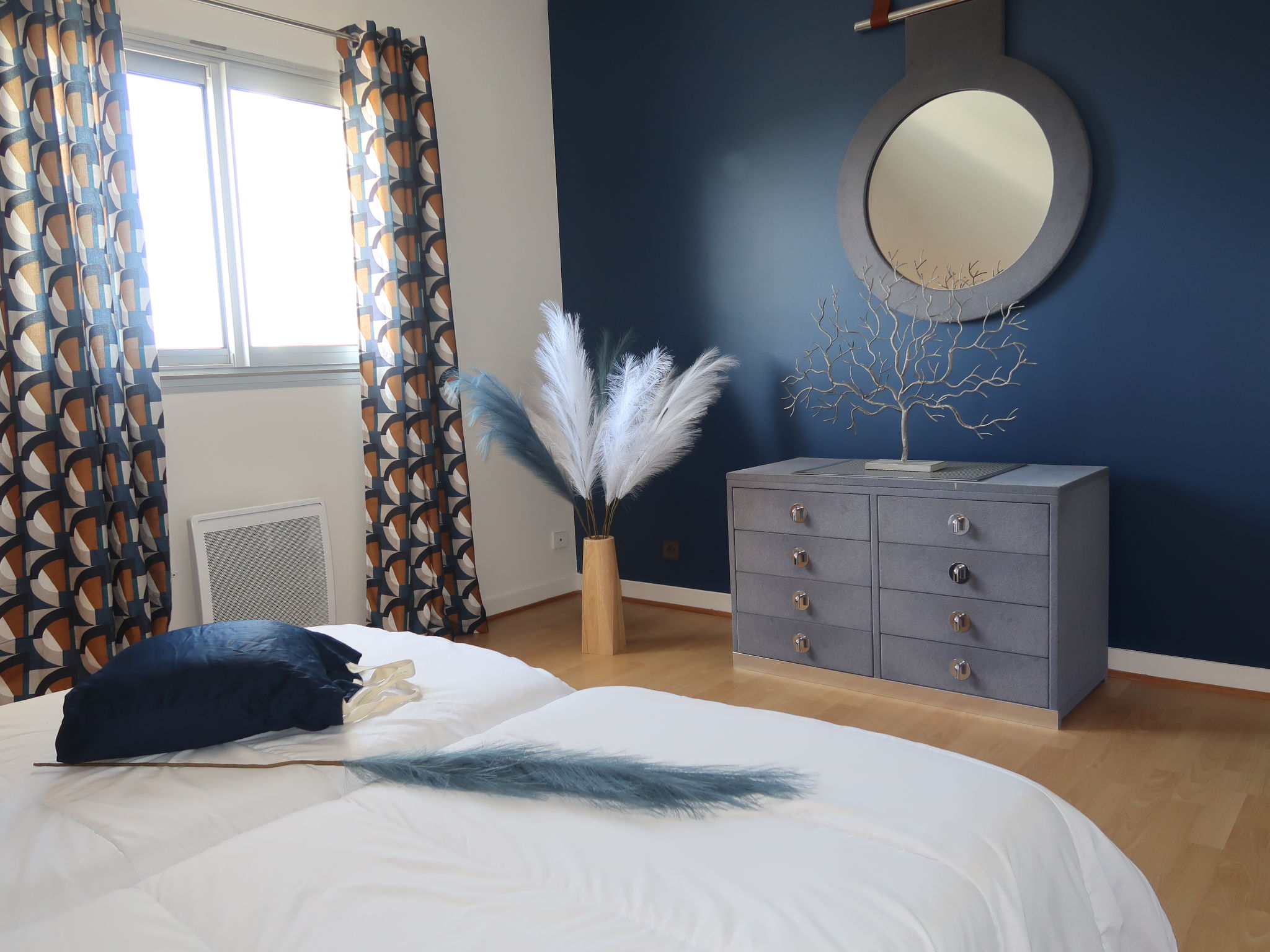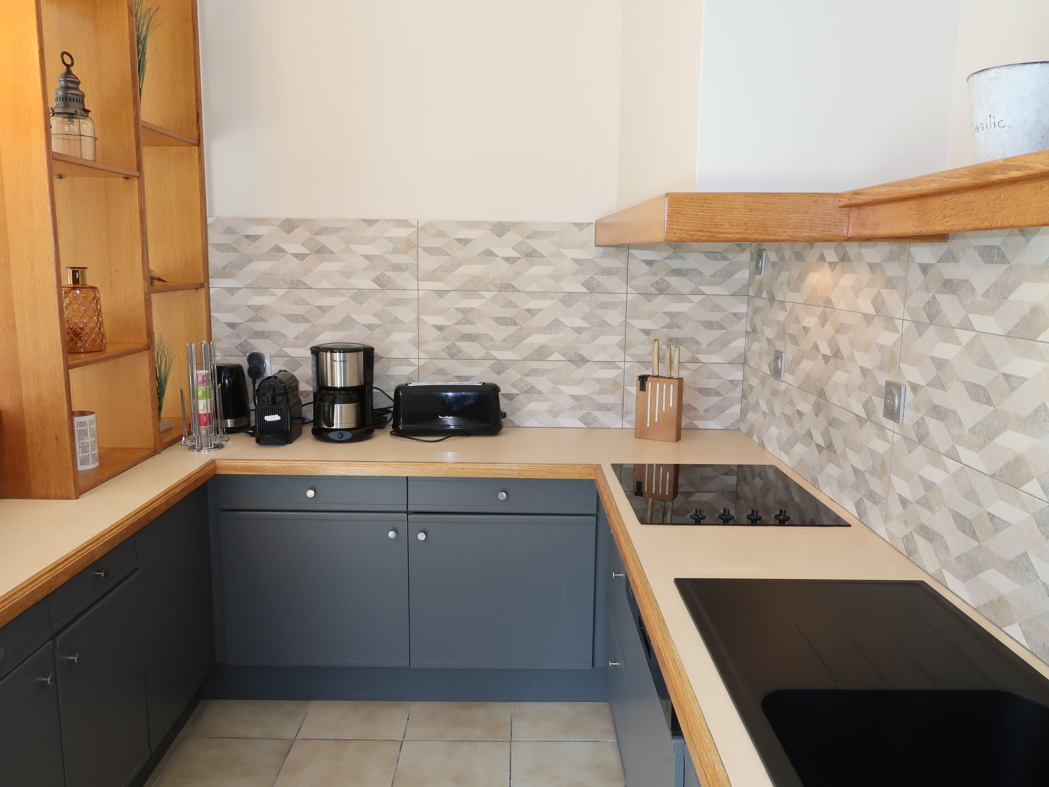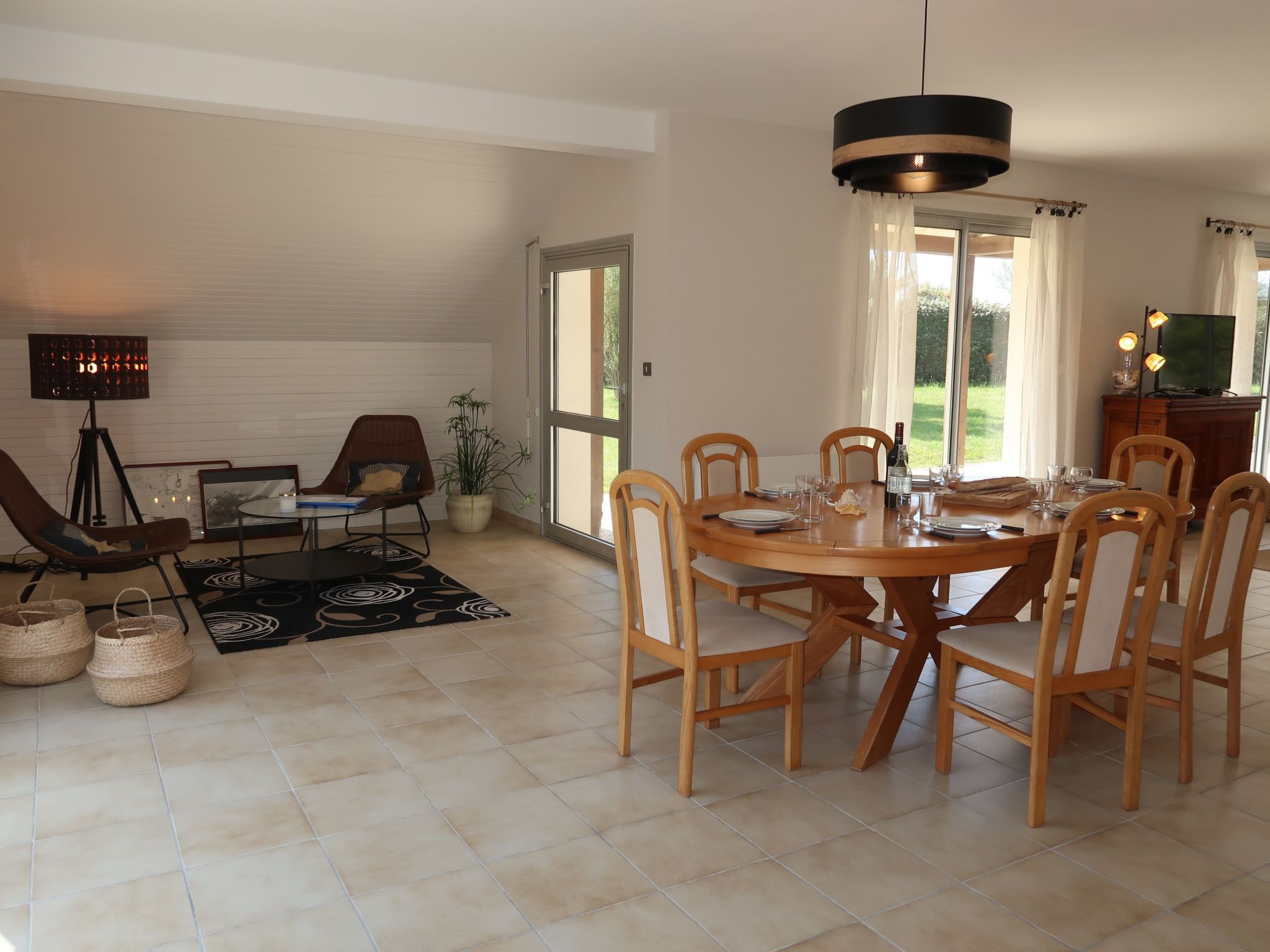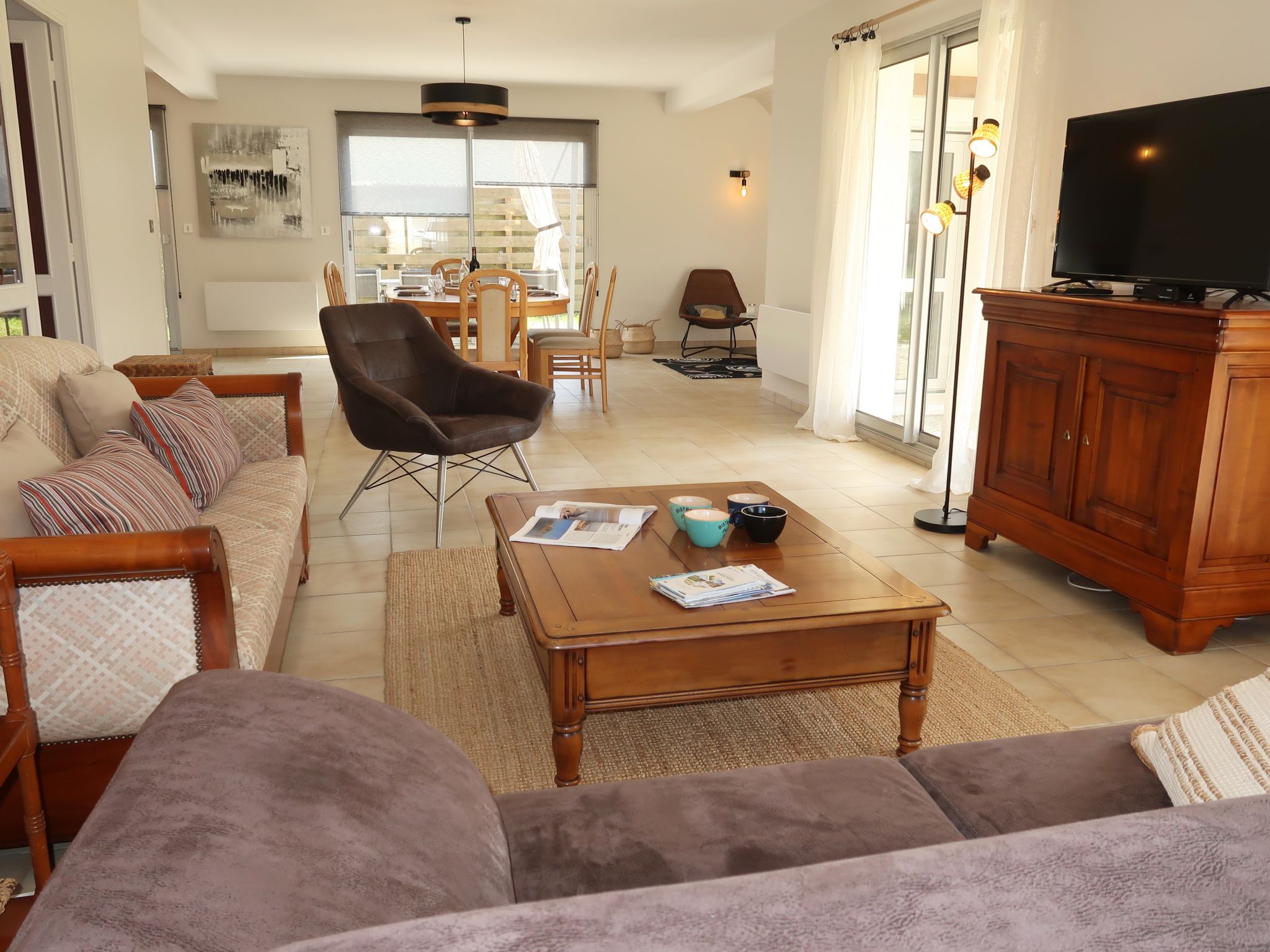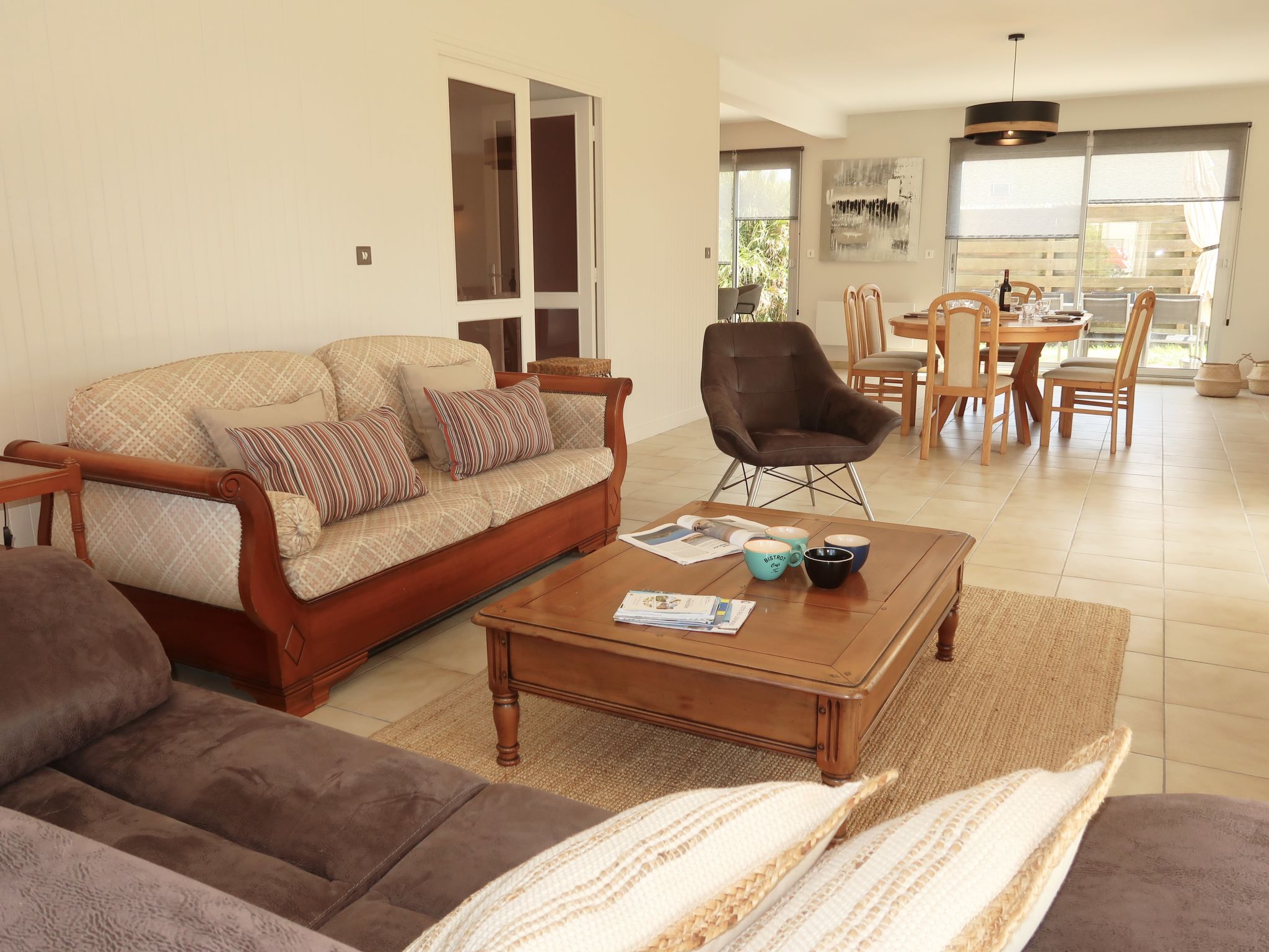 5-Zimmer-Haus, 2 Etagen, ca. 130 m². Erdgeschoss: Diele. Wohnraum mit Sitzgruppe, weitere Sitzgruppe, Essplatz, große Glasschiebetüren zur Terrasse und Gartenausgang. Zum Wohnraum offene, durch Theke abgeteilte Küche (4 Ceranfelder, Minibackofen, Mikrowelle, Geschirrspüler, Kühlschrank, kleiner Gefrierschrank, Kaffeemaschine, Toaster). Abstellraum. Dusche. Sep.WC. Obergeschoss (Dachschräge): 3 Schlafzimmer, jeweils mit franz. Bett. Doppelzimmer. Bad/WC. Hinweis: Bei Buchung zum Preis für 4 Personen bleiben 2 Schlafzimmer verschlossen. Bei Belegung mit weniger Personen als der maximalen Personenzahl stehen nicht alle Schlafzimmer zur Verfügung. Inserat einer Privatperson nach Artikel 155, IV, CGI.