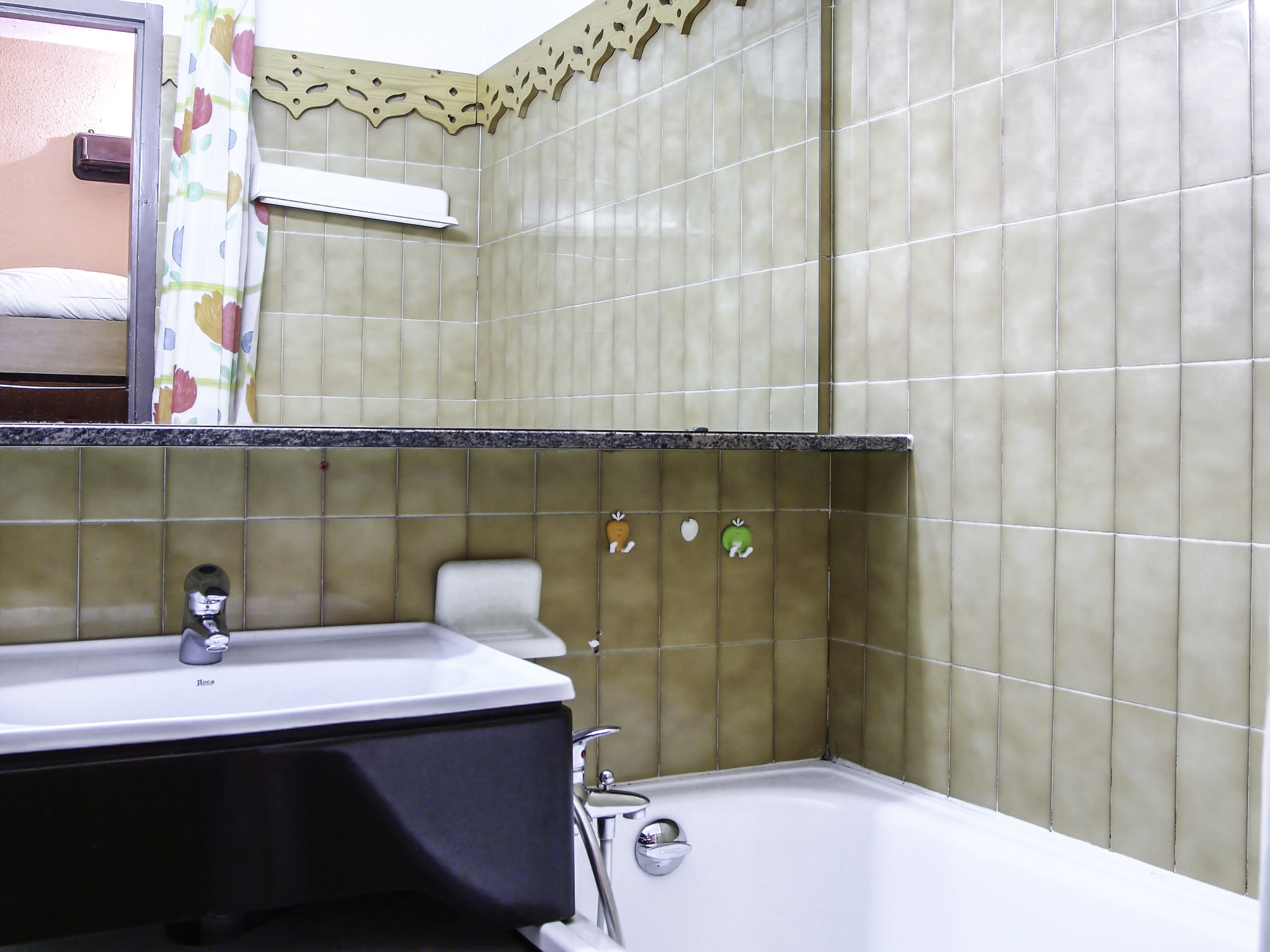 1-Zimmer-Studio 21 m2 im 1. Stock. Wohn-/Esszimmer mit 1 Ausziehbett (2 Pers. 2 x 90 cm, Länge 190 cm), TV. Ausgang zum Balkon. Eingang mit 1 x 2 Etagenbetten (90 cm, Länge 190 cm). Kochnische (Mini-Backofen, 2 Induktionskochplatten, Wasserkocher, Mikrowelle, elektrische Kaffeemaschine). Bad, sep. WC. E-Heizung. Balkon, Südlage. Schöne Sicht auf die Berge. Zur Verfügung: Internet (Wireless LAN, extra). Bitte beachten: Maximal 1 Haustier/Hund erlaubt. TV nur FR. Rauchmelder. Inserat einer Privatperson nach Artikel 155, IV, CGI.