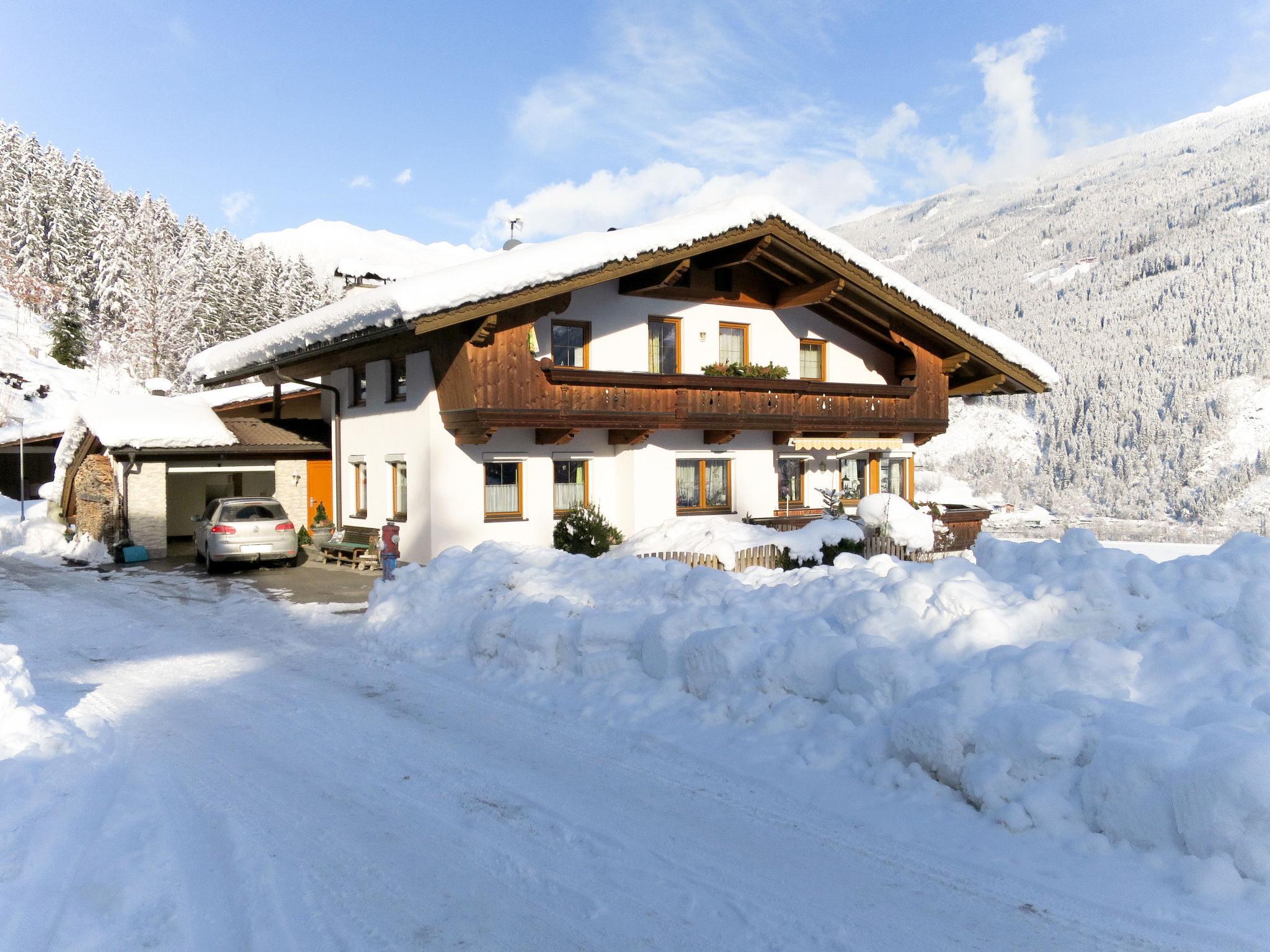 Haus MARKUS mit unserer Ferienwohnung und der Besitzerwohnung steht in freier Aussichtslage am Waldrand, ca. 500 m von der Ortsmitte Aschau entfernt. Rad- und Wanderwege beginnen beim Haus. Erlebnisschwimmbad 1 km. Zell 4 km. Bergbahn Zillertal-Arena 4,5 km. 18-Loch Golfplatz 6 km. Teilabgeschlossenes, ca. 500 m² großes Grundstück mit Wiese und Bäumen. 2 Parkplätze. Kleine Liegewiese mit 4 Liegestühlen und transportablem Grill zur Mitbenutzung. Zur Wohnung gehören 2 teilüberdachte Balkone mit Mobiliar. Freundliche, feriengerechte Einrichtung mit hellen Holzmöbeln. Fliesen- und Linoleumboden, in den Schlafzimmern Teppichböden. Sat-TV. Internetzugang (WLAN, inklusive). Öl-Zentralheizung. Hinweis: Rauchen ist in der Wohnung nicht gestattet. Winter-Infos: Bei geeigneter Schneelage Abfahrt bis in Hausnähe möglich. Skibushaltestelle ca. 300 m. Langlaufloipe ca. 500 m. Im Haus Ski-/Schuhraum mit Skischuhheizung.