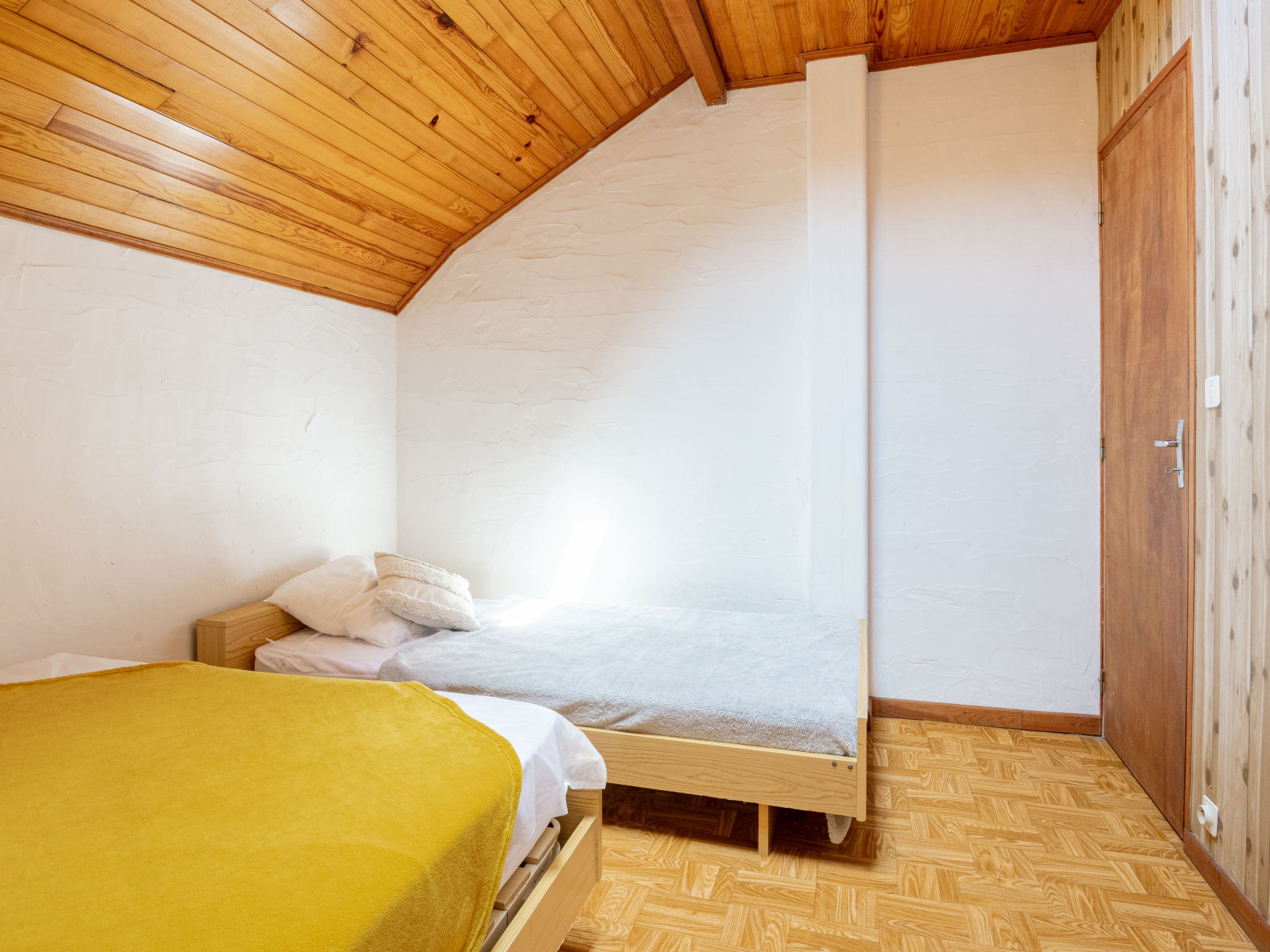 3-Zimmer-Reihenhaus 50 m2 auf 2 Stockwerken. Wohn-/Esszimmer mit TV und Internationale TV-Sender (Flachbildschirm). Ausgang zur Terrasse. Kochnische (4 Kochplatten, Mini-Backofen, Mikrowelle). Dusche, sep. WC. Obergeschoss: 1 abgeschrägtes Zimmer mit 1 franz. Bett (1 x 140 cm, Länge 190 cm). 1 abgeschrägtes Zimmer mit 1 Bett (90 cm, Länge 190 cm), 1 franz. Bett (1 x 140 cm, Länge 190 cm). Terrasse. Terrassenmöbel, Liegestühle (1). Zur Verfügung: Internet (Wireless LAN, gratis). Bitte beachten: Maximal 1 Haustier/Hund erlaubt. Rauchmelder. Inserat einer Privatperson nach Artikel 155, IV, CGI.