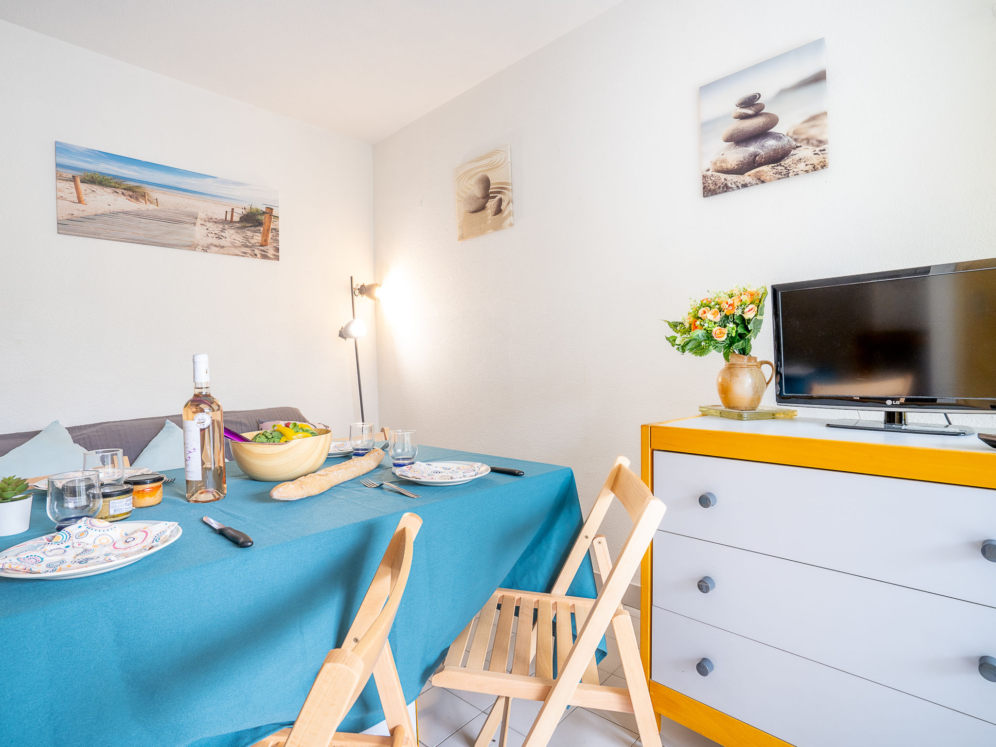 Residenz "Jamaïc". Im Ortsteil La Motte du Couchant, 2 km vom Zentrum, 300 m vom Meer. Einkaufszentrum, Restaurant, Bushaltestelle 100 m, Bahnstation "Montpellier" 25 km, Sandstrand 250 m, Hallenbad 3.5 km, Thermalbad "Thalasso Spa" 4 km. Sporthafen 1 km, Golfplatz (18 Loch) 4 km, Segelschule 1 km, Tennis 3.5 km, Reitstall 1.5 km. Nahe gelegene Sehenswürdigkeiten: Le Seaquarium du Grau Du Roi 10 km, Les Remparts d'Aigues Mortes 12 km, Les Saintes Maries de la Mer 40 km. Bitte beachten: Flugplatz in der Nähe 20 km vom Haus.