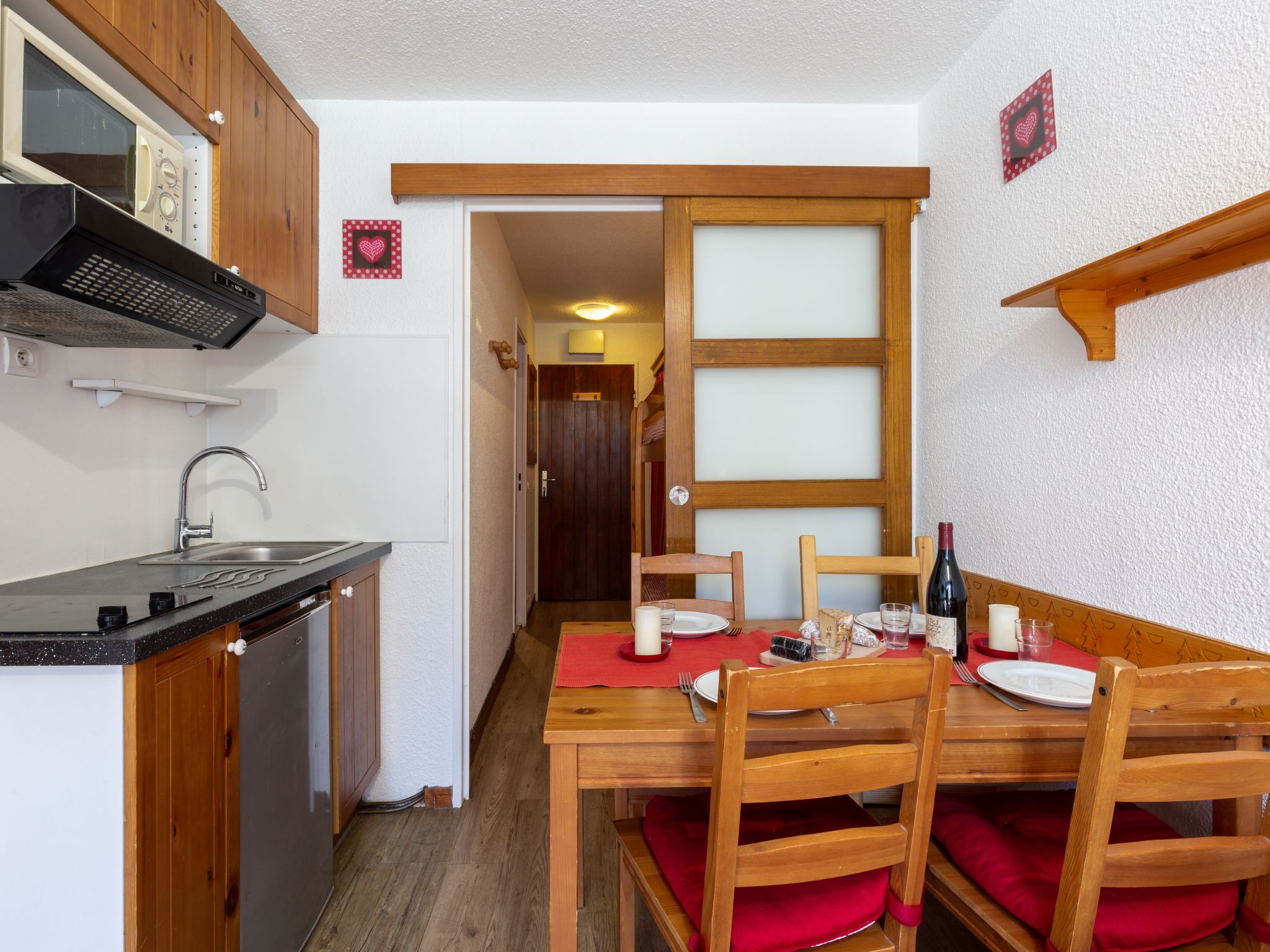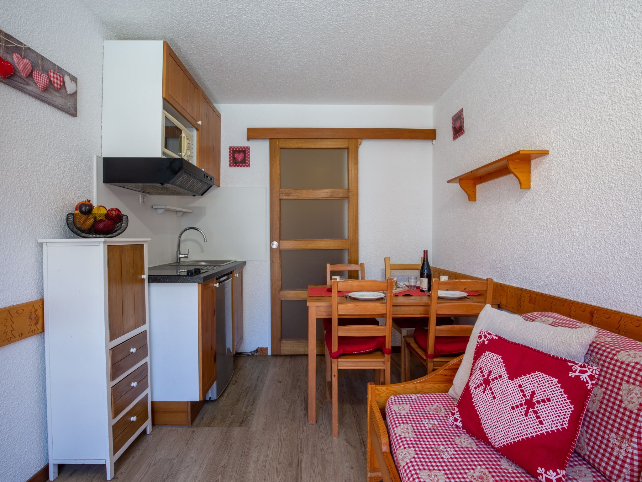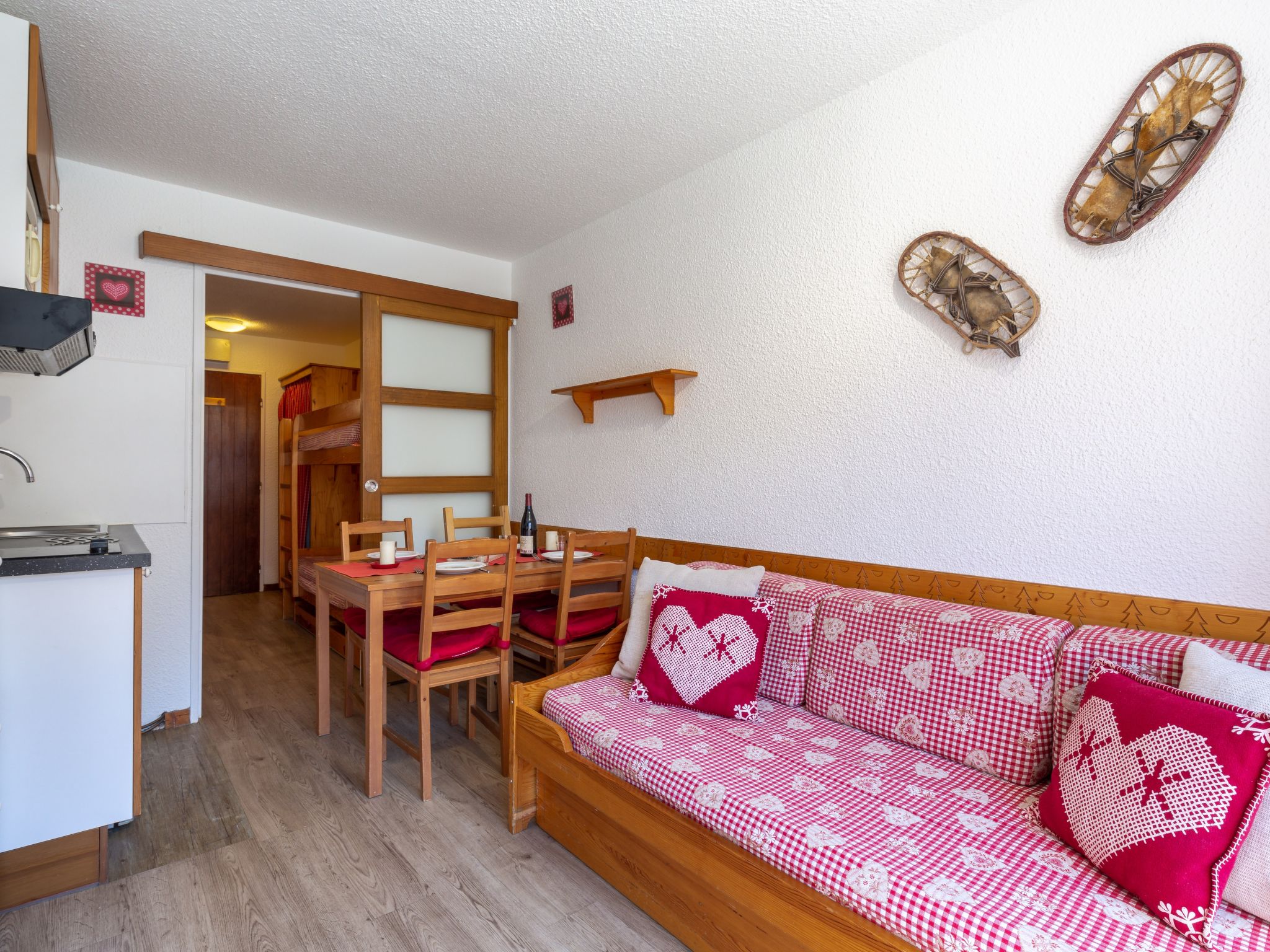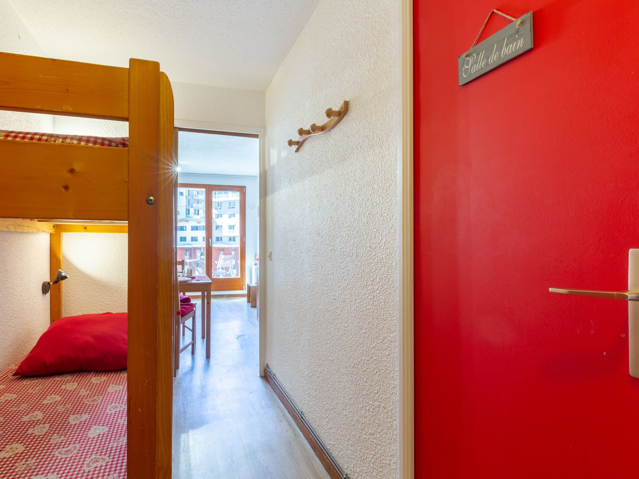 Val Claret: Residenz "Chalet Club", auf 5 Stockwerken. In der Anlage: Fahrstuhl, Skiraum. Supermarkt 200 m, Restaurant 100 m, Hallenbad 2.2 km. Sportzentrum 800 m, Skisportanlagen 150 m, Skibushaltestelle 10 m, Skischule 200 m. Bitte beachten: Gratis Skibus. In diesem Haus sind weitere Ferienwohnungen mietbar.