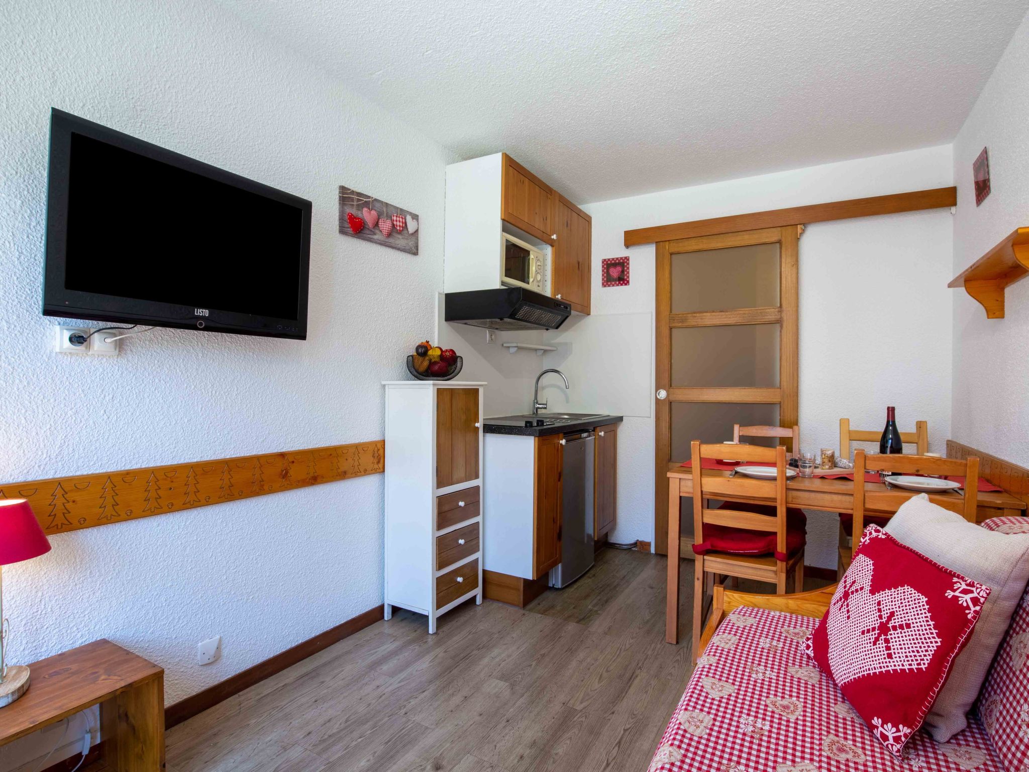 1-Zimmer-Studio 17 m2 im 3. Stock. Renoviert, zweckmässig und schön eingerichtet: Wohn-/Esszimmer mit 1 Ausziehbett (2 Pers. 2 x 80 cm, Länge 190 cm), TV (Flachbildschirm). Eingang mit 1 x 2 Etagenbetten (80 cm, Länge 190 cm). Kochnische (2 Glaskeramikherd Platten, Mikrowelle, elektrische Kaffeemaschine). Dusche/WC. Balkon, Südwestlage. Sehr schöne Panoramasicht auf die Berge und die Skipiste. Zur Verfügung: Internet (Wireless LAN, gratis). Bitte beachten: Nichtraucher-Unterkunft. Rauchmelder. Inserat einer Privatperson nach Artikel 155, IV, CGI.