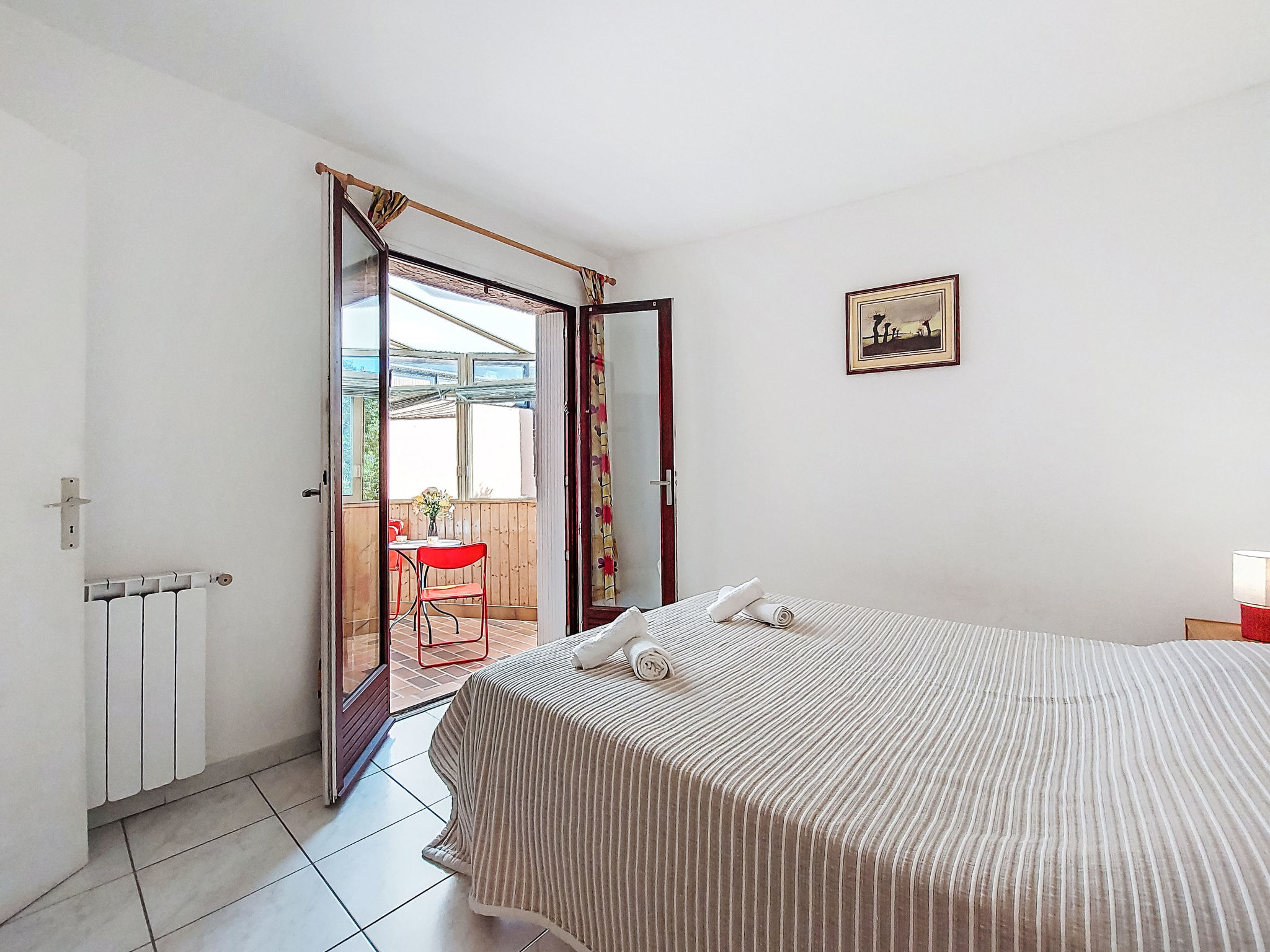 2-Zimmer-Wohnung 45 m2 im 3. Stock. Geräumig, schön eingerichtet: Wohn-/Esszimmer mit 1 Doppeldiwanbett (140 cm, Länge 190 cm), TV. Ausgang zur Terrasse, zur Loggia. 1 Zimmer mit 1 franz. Bett (140 cm, Länge 190 cm). Ausgang zur Loggia, Richtung Osten. Küche (4 Kochplatten, Mini-Backofen, Toaster, Wasserkocher, Mikrowelle, elektrische Kaffeemaschine). Dusche, Bidet, sep. WC. G-Heizung. Grosse Terrasse 20 m2, Westlage. Terrassenmöbel, Loggia. Seitliche Fernsicht auf das Meer. Zur Verfügung: Waschmaschine, Bügeleisen. Internet (Wireless LAN, extra). Parkplatz. Bitte beachten: TV nur FR. Rauchmelder. Inserat einer Privatperson nach Artikel 155, IV, CGI. 83009 000133MZ.