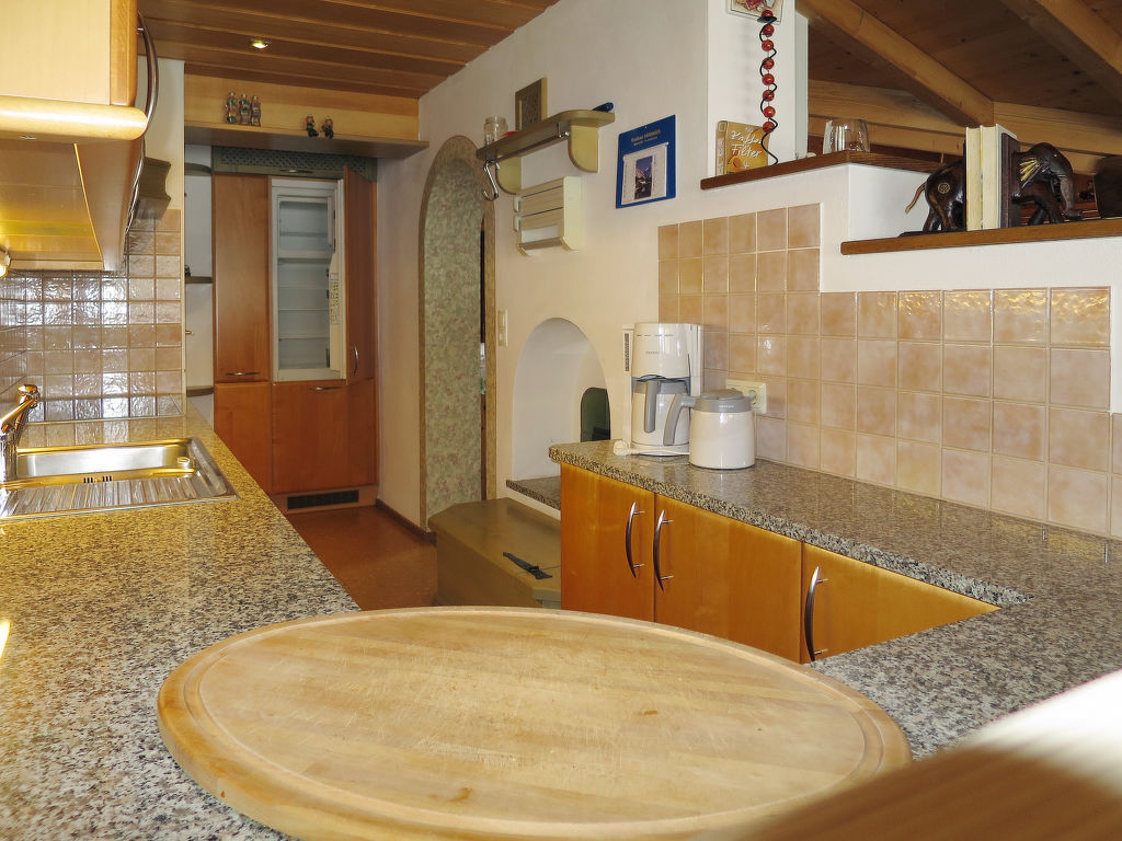 5-Zimmer-Wohnung, 2. Etage/Dachgeschoss, ca. 130 m². Großer Wohn-/Schlafraum mit Einzelbett, Doppelbettcouch, Leseecke, Kachelofen (wird auf Wunsch vom Besitzer täglich beheizt), Essplatz (Eckbank) und Balkonausgang. Zum Wohnraum offene Küche (4 Ceranfelder, Backofen, Mikrowelle, Kühlschrank, Geschirrspüler, Kaffeemaschine, Wasserkocher, Toaster, Raclette, Fondue) mit Theke und Barhocker. Doppelzimmer, Dusche/WC. Doppelzimmer, Dusche/WC. . Schlafzimmer mit Doppelbett, Einzelbett und Ausziehbett. Bad/Dusche/Doppelwaschbecken. Sep.WC.Außerhalb der Wohnung in der 1. Etage: weiteres Schlafzimmer mit franz. Bett und Waschbecken. Sep.WC. Bei Belegung mit weniger Personen als der maximalen Personenzahl stehen nicht alle Wohneinheiten zur Verfügung. Flexibilität bei der Bettenaufteilung: Es stehen mehr Schlafmöglichkeiten zur Verfügung als die maximal zugelassene Personenzahl, diese darf dennoch nicht überschritten werden. 50610-000294-2020