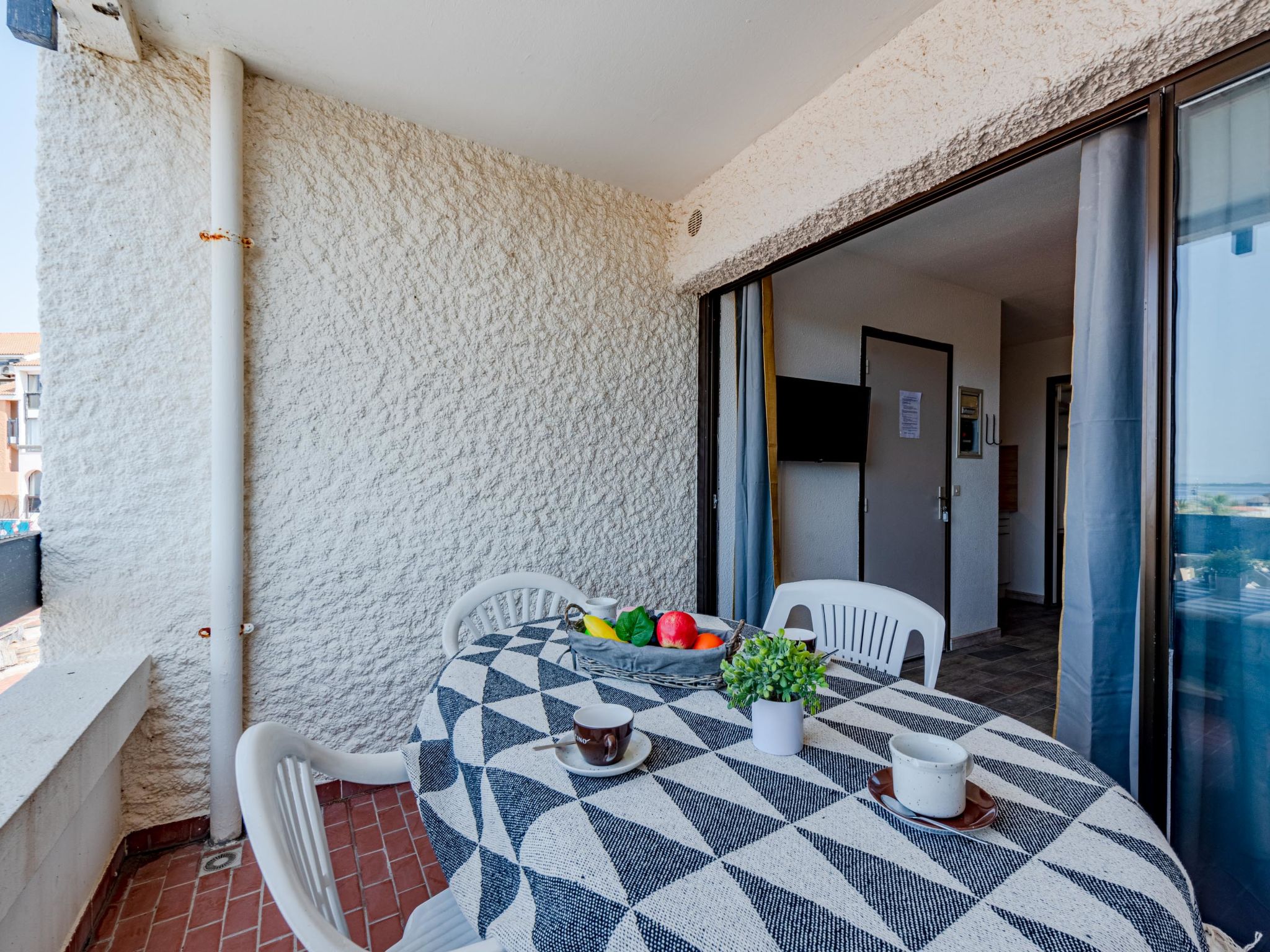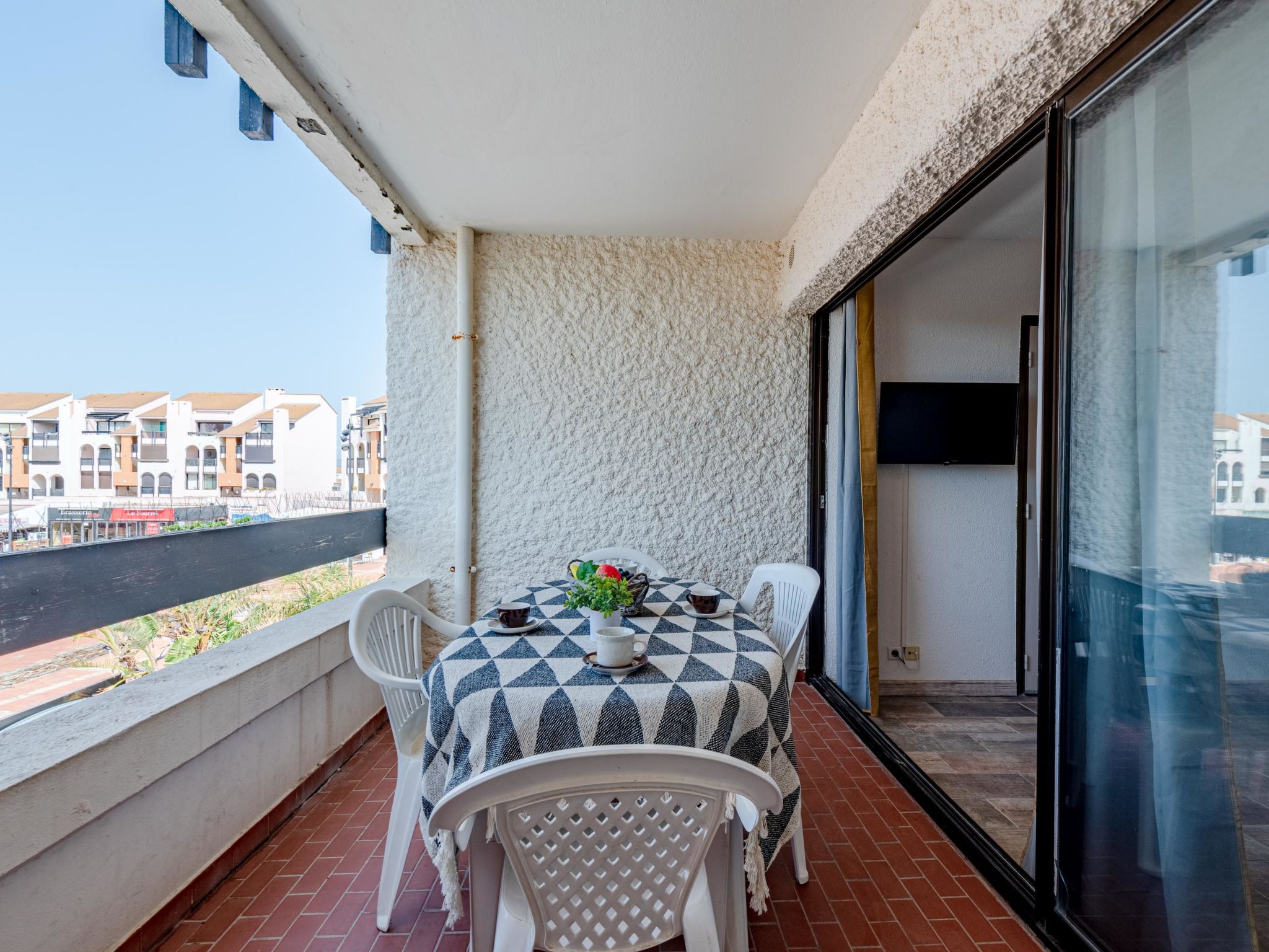 Coudalère 5 km von Barcarès centre: Die Residenzen sind mit 3 beheizten Swimmingpools (gegen Bezahlung) ausgestattet, darunter 1 Kinderbecken, 1 10m/15m-Becken und 1 25m/15m-Becken (geöffnet vom 15.04. bis 15.10.) und 5 Tennisplätze (gegen Bezahlung). Residenz "Martinique 2/3", auf 3 Stockwerken. 4 km vom Meer, 50 m vom See. Öffentliche Parkplätze 100 m. Einkaufszentrum, Restaurant 50 m, Bushaltestelle 1 km. Nahe gelegene Sehenswürdigkeiten: Réserve Africaine de Sigean 41 km, Aqualand Port Leucate 7 km, parcours aventure 3 km, cinéma 4 km, site des dosses 5 km. Bekannte Seen in der Umgebung sind gut erreichbar: Lac de villeneuve de la Raho 34 km, Lac de leucate ou de salses 11 km. Wandergebiete: Sentier du guetteur 8 km, la forteresse de salses 15 km, Sentier du littoral Collioure 40 km. Bitte beachten: Fahrzeug empfohlen. Animation in der Saison.