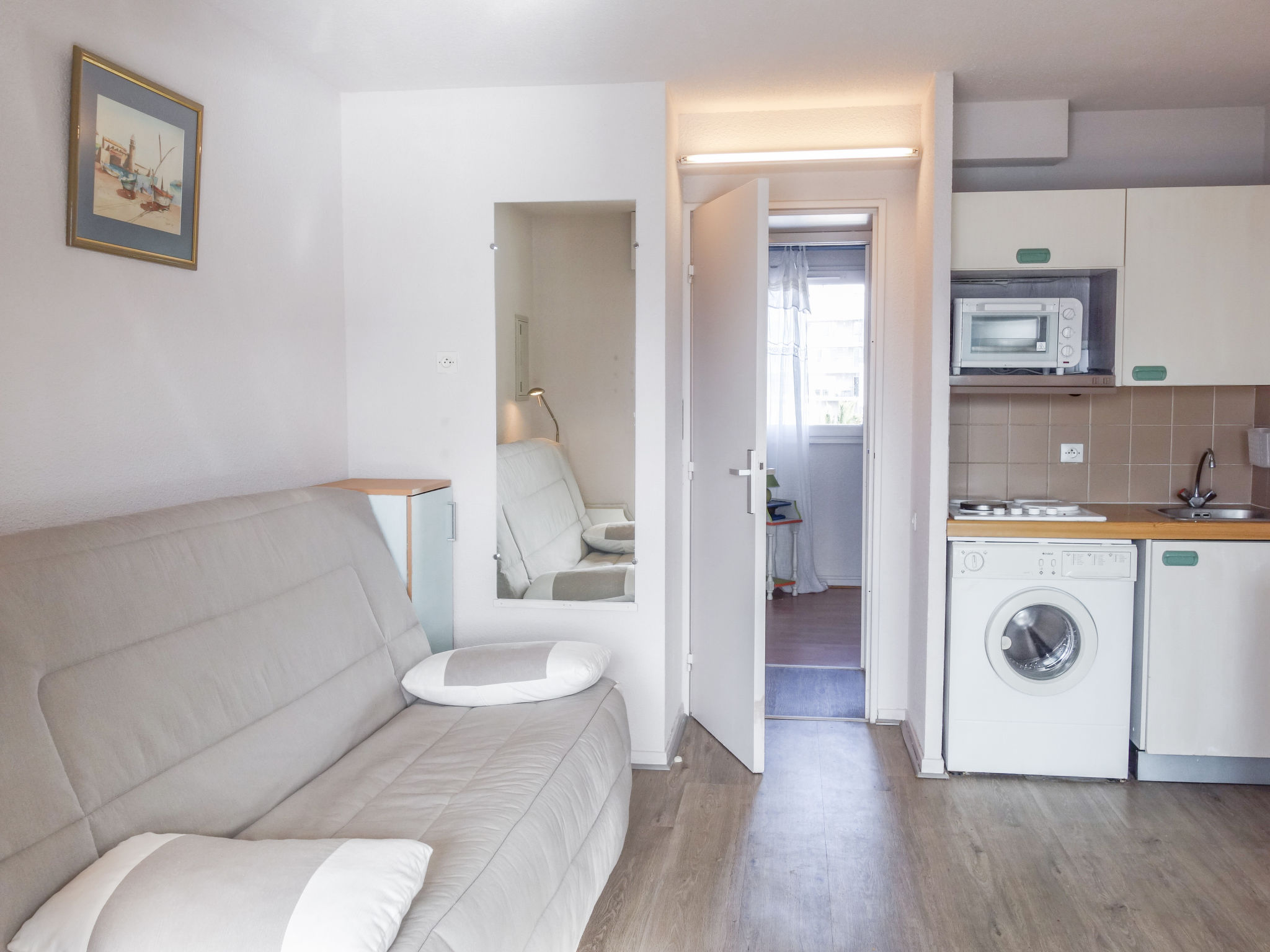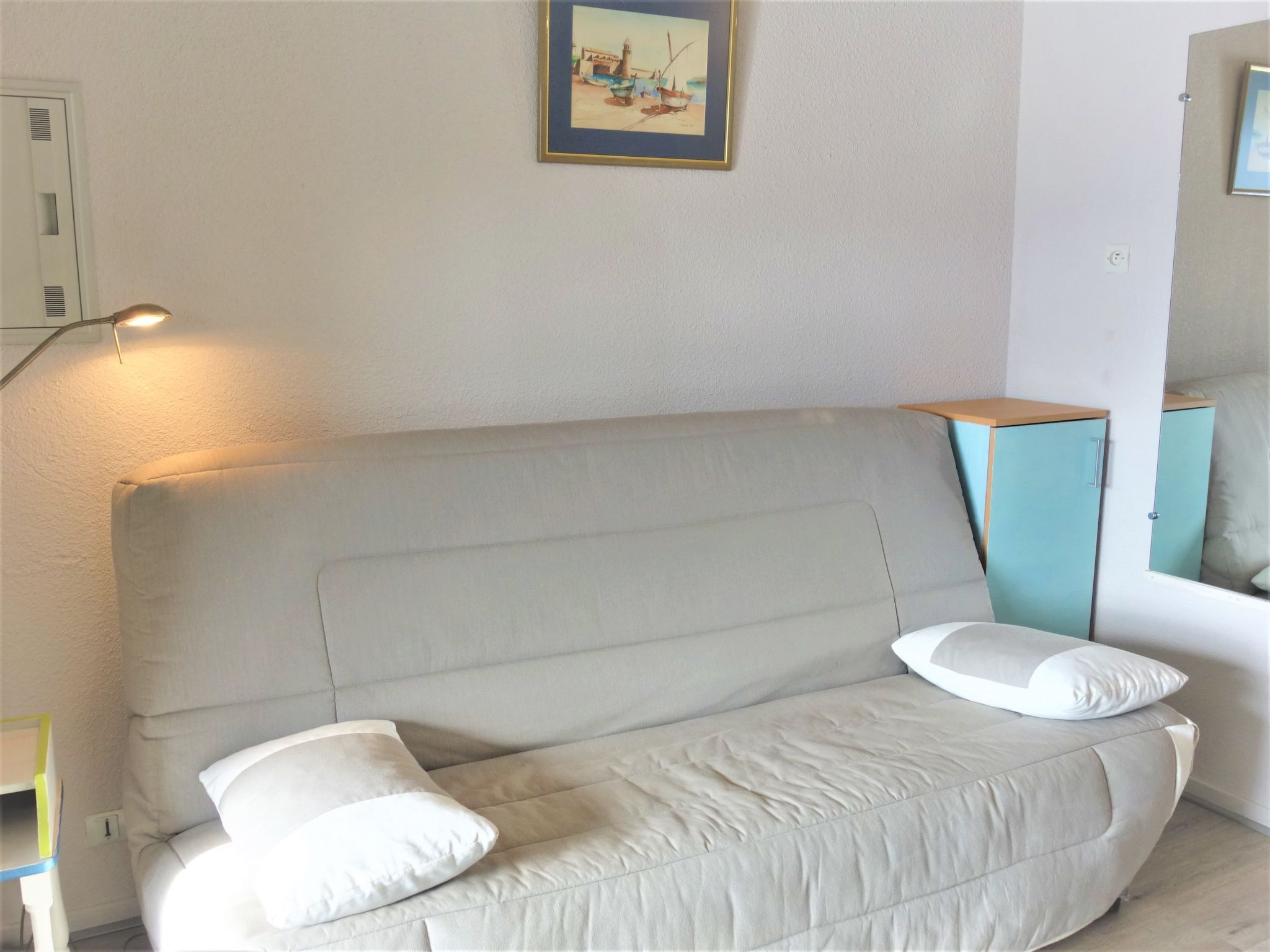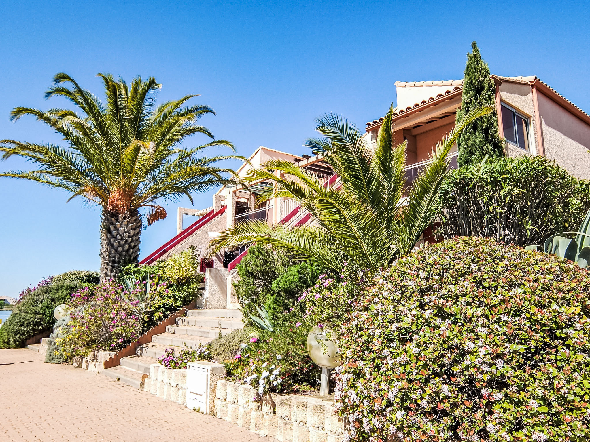 Residenz "Marinas du Ponant", auf 2 Stockwerken. Im Ortsteil La Lagune, 150 m vom Meer, direkter Zugang zur Lagune. Öffentliche Parkplätze auf der Strasse. Einkaufsgeschäft 2 km, Lebensmittelgeschäft 200 m, Supermarkt 3.2 km, Restaurant 350 m, Bahnstation "Elne" 8.2 km, Kieselstrand 150 m. Sporthafen 4 km, Golfplatz (27 Loch) 7 km, Segelschule 3.5 km, Minigolf 6 km, Reitstall 3.5 km, Sportzentrum 2 km. Nahe gelegene Sehenswürdigkeiten: Aqualand 1.8 km.