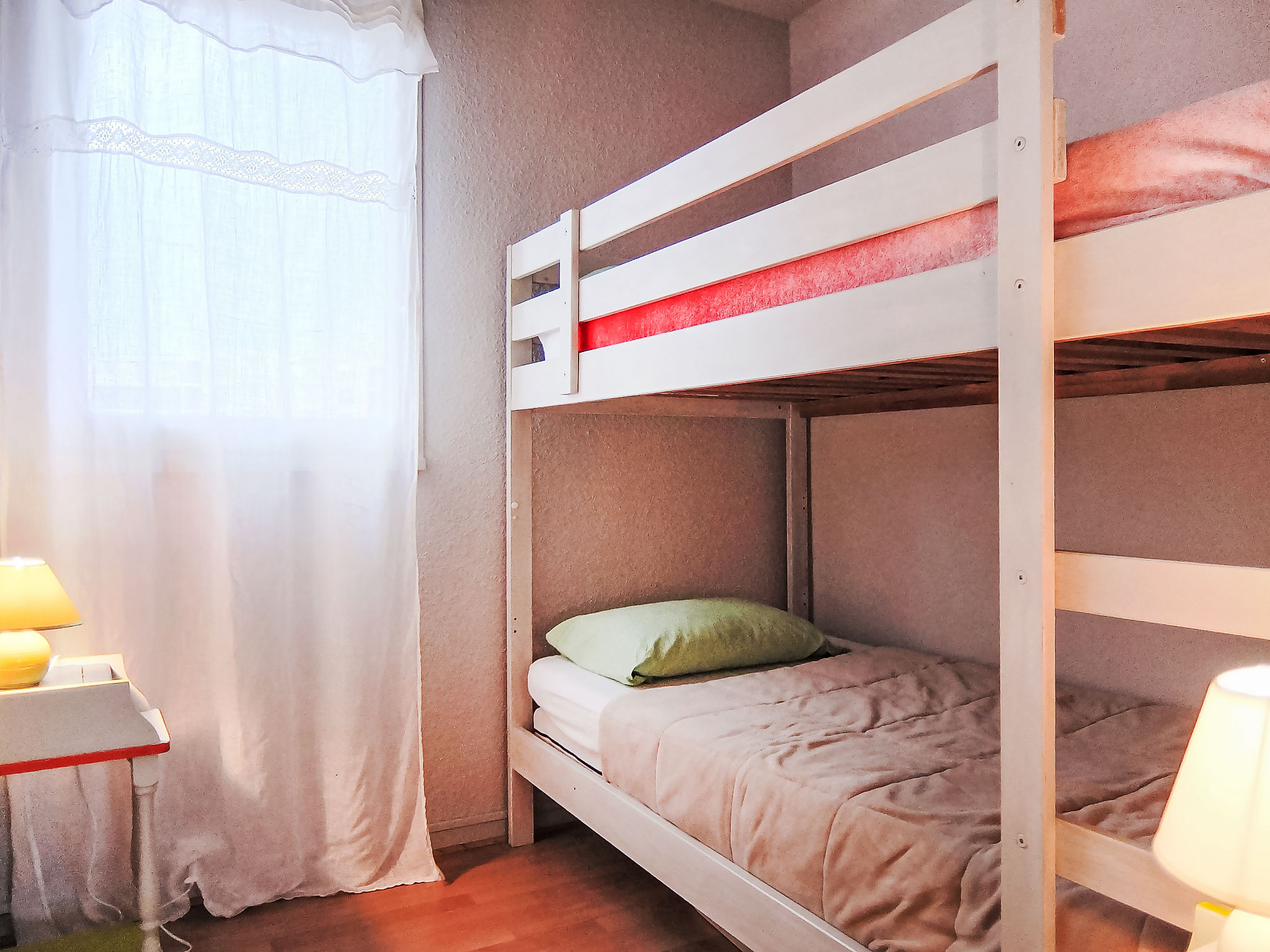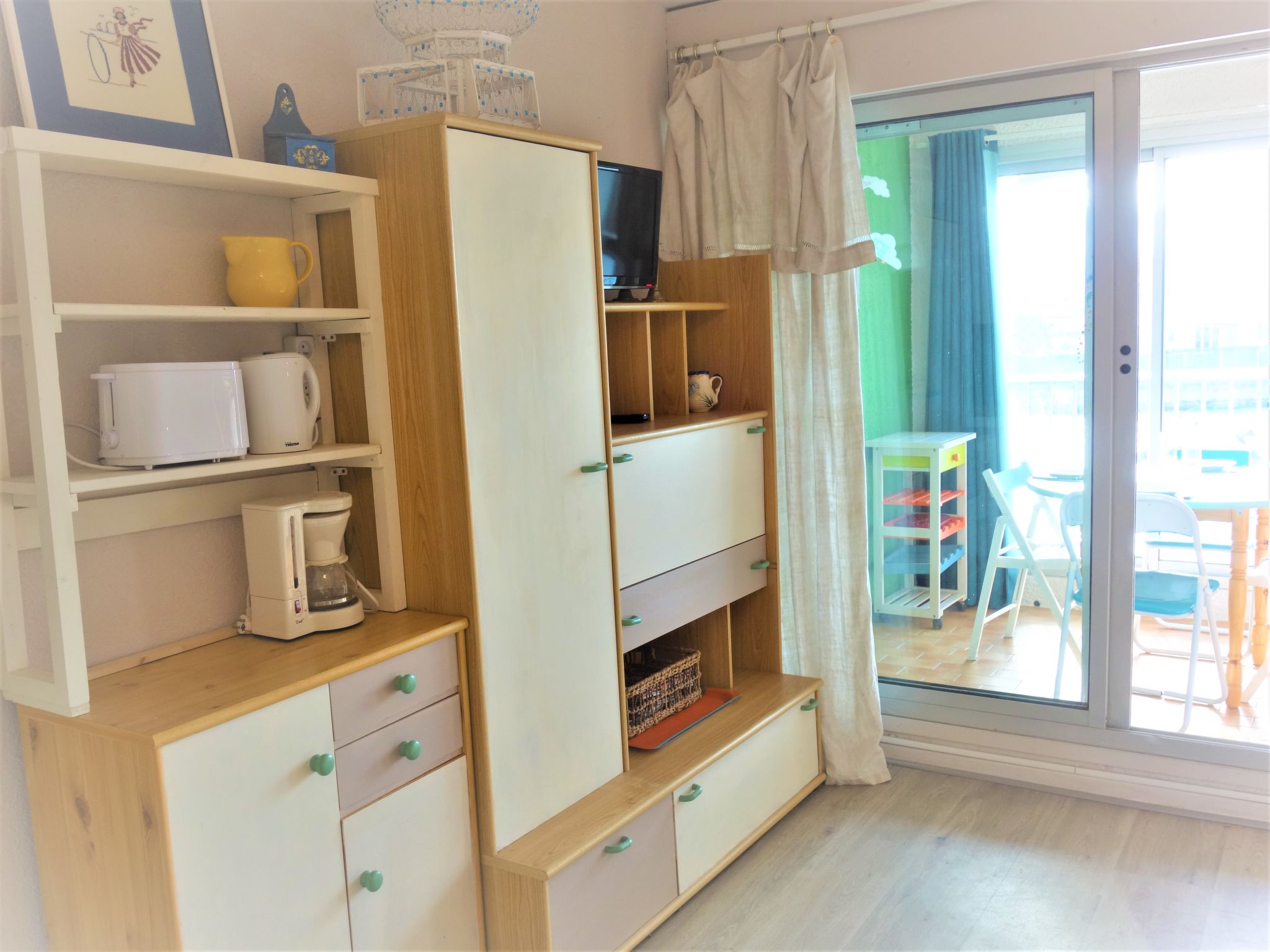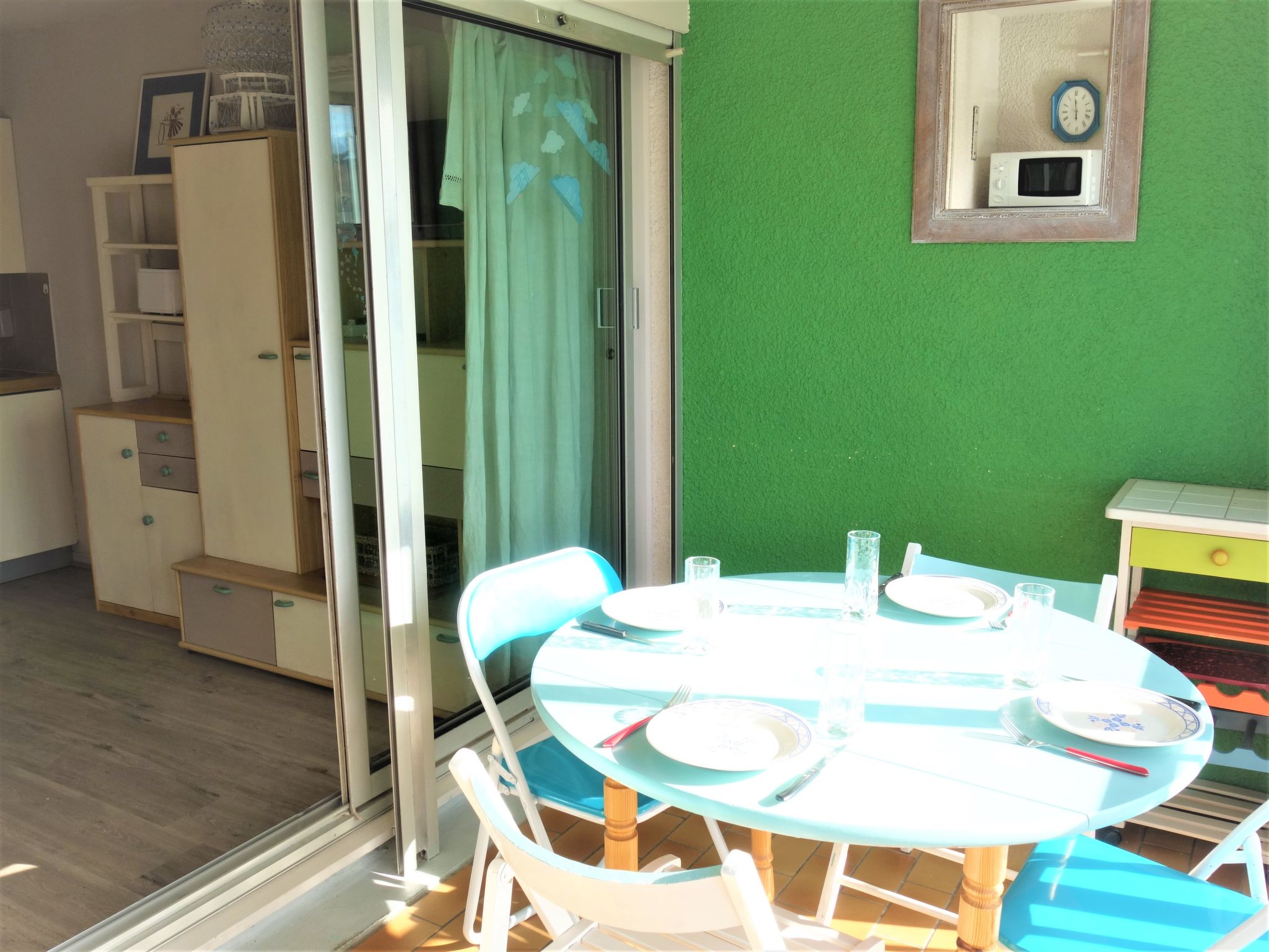 Residenz "Marinas du Ponant", auf 2 Stockwerken. Im Ortsteil La Lagune, 150 m vom Meer, direkter Zugang zur Lagune. Öffentliche Parkplätze auf der Strasse. Einkaufsgeschäft 2 km, Lebensmittelgeschäft 200 m, Supermarkt 3.2 km, Restaurant 350 m, Bahnstation "Elne" 8.2 km, Kieselstrand 150 m. Sporthafen 4 km, Golfplatz (27 Loch) 7 km, Segelschule 3.5 km, Minigolf 6 km, Reitstall 3.5 km, Sportzentrum 2 km. Nahe gelegene Sehenswürdigkeiten: Aqualand 1.8 km.