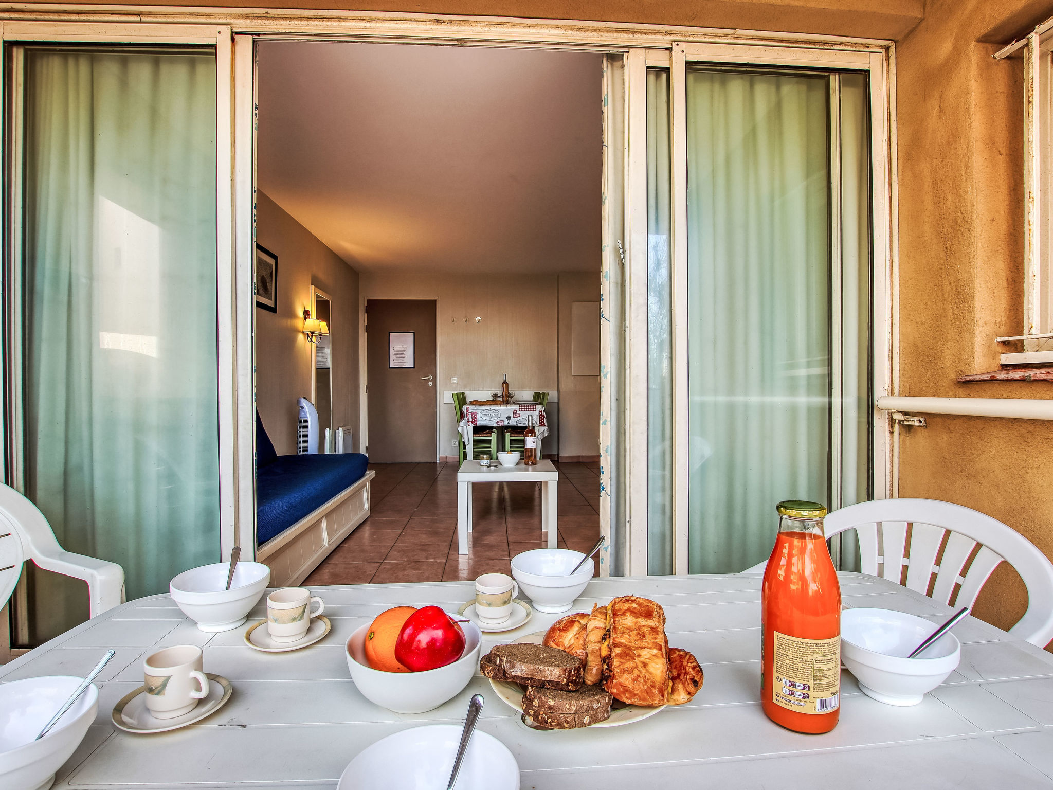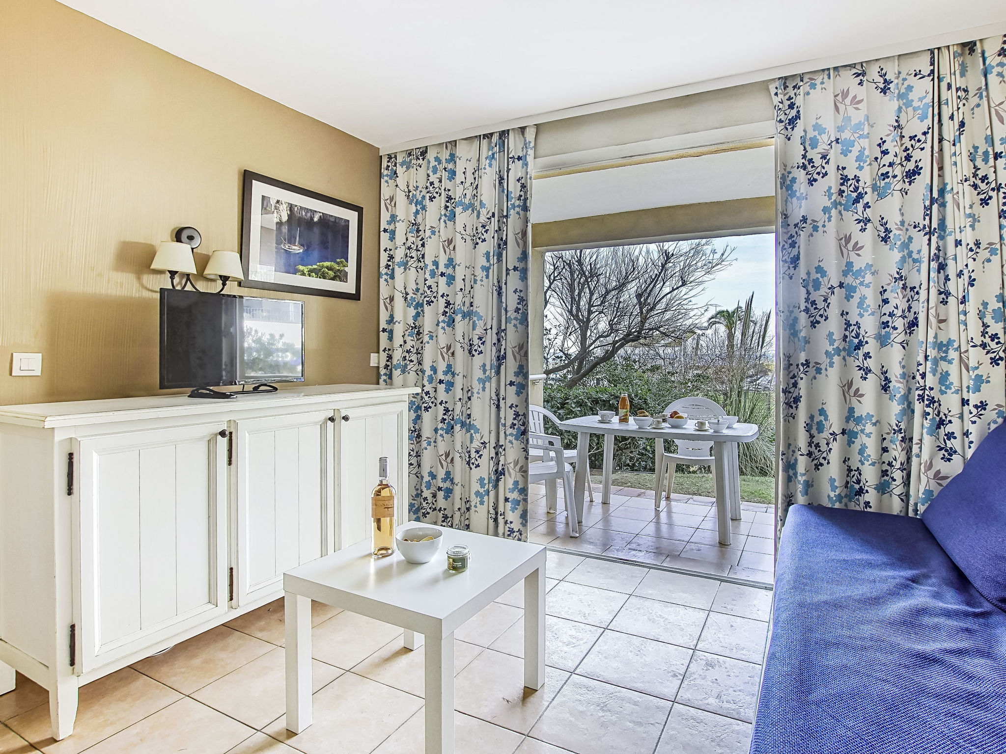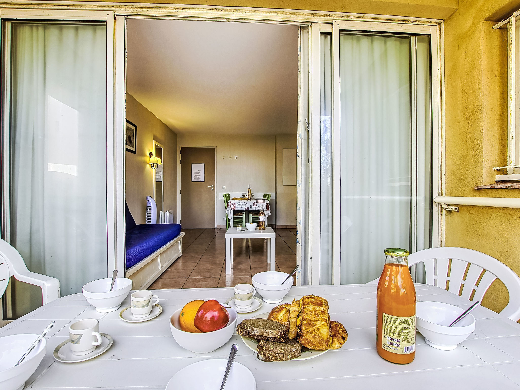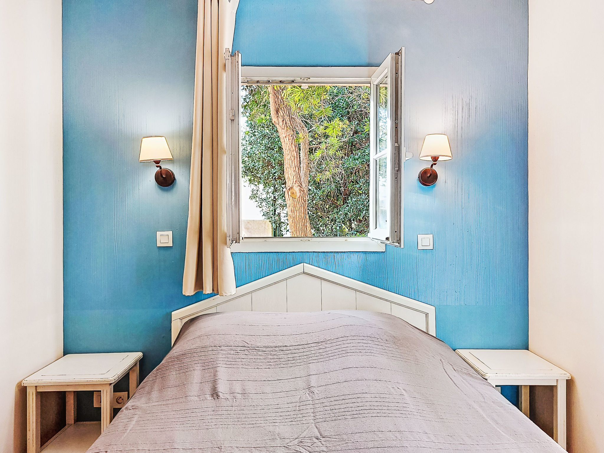 3-Zimmer-Wohnung 45 m2, im Erdgeschoss. Zweckmässig und schön eingerichtet: Wohn-/Esszimmer mit 1 Bett (80 cm, Länge 190 cm), TV (Flachbildschirm). Ausgang zur Terrasse. Kabine mit 1 x 2 Etagenbetten (80 cm, Länge 190 cm). 1 Zimmer mit 1 franz. Bett (140 cm, Länge 190 cm). Kochnische (Geschirrspüler, 4 Glaskeramikherd Platten, Mikrowelle, Tiefkühler, elektrische Kaffeemaschine). Bad, Dusche/WC. E-Heizung. Terrasse 7 m2, überdacht, Westlage, kleiner Gartensitzplatz 3 m2, Westlage. Terrassenmöbel. Fernsicht auf das Meer. Zur Verfügung: Internet (Wireless LAN, extra). Parkplatz Nr. 401 (Niveau 1) (überdacht), Höhe 190 cm, Breite 230 cm. Bitte beachten: Maximal 1 Haustier/Hund erlaubt. TV nur FR. Rauchmelder. Der Garten ist nicht eingezäunt. Inserat einer Privatperson nach Artikel 155, IV, CGI.