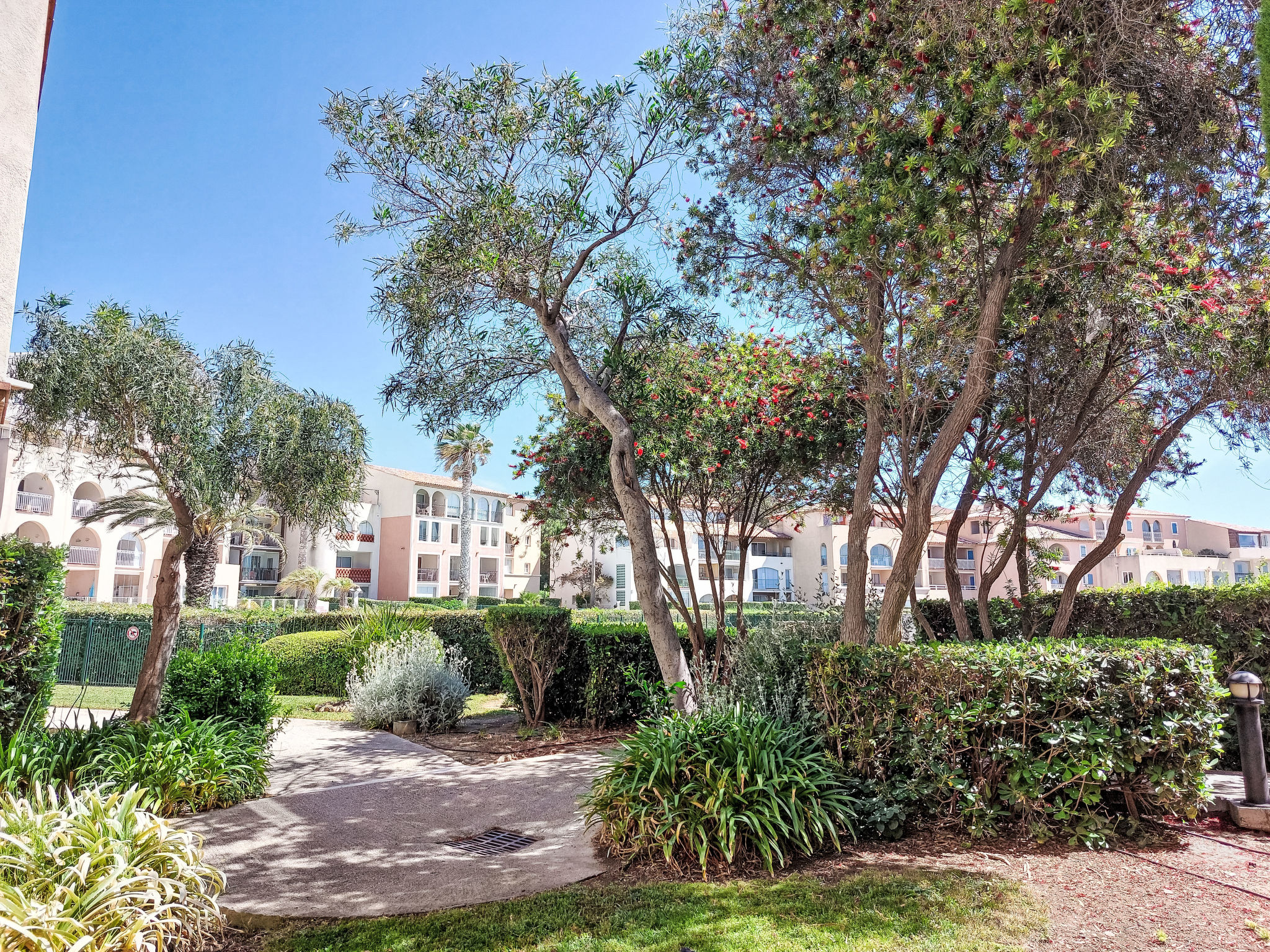 La Coudoulière: Residenz "Les Rivages de Coudoulière", auf 3 Stockwerken. 2 km vom Zentrum von Six Fours, 50 m vom Meer, 100 m vom Strand, im Grünen. Zur Mitbenutzung: Schwimmbad eingezäunt (25 x 15 m, 340 m2, 60 - 160 cm tief, saisonale Verfügbarkeit: 12.Jun.-15.Okt. Öffnungszeiten Schwimmbad: 10:00-19:00) mit Innentreppe. Ungleichmässige Schwimmbadform, Kinderbecken. In der Anlage: Einkaufsgeschäft, Restaurant, Café 50 m, Sandstrand, Kieselstrand 100 m. Sporthafen 50 m, Golfplatz (18 Loch) 13 km. Wandergebiete: Sainte Baume, Sainte Victoire, Calanques Port-Cros, Porquerolles, Ile verte, Embiez, Figuerolles, Cassis. Bitte beachten: Die Schlüsselübergabe findet bei der Agentur Interhome in Saint Cyr Sur Mer statt, 15 km. In diesem Haus sind weitere Ferienwohnungen mietbar.