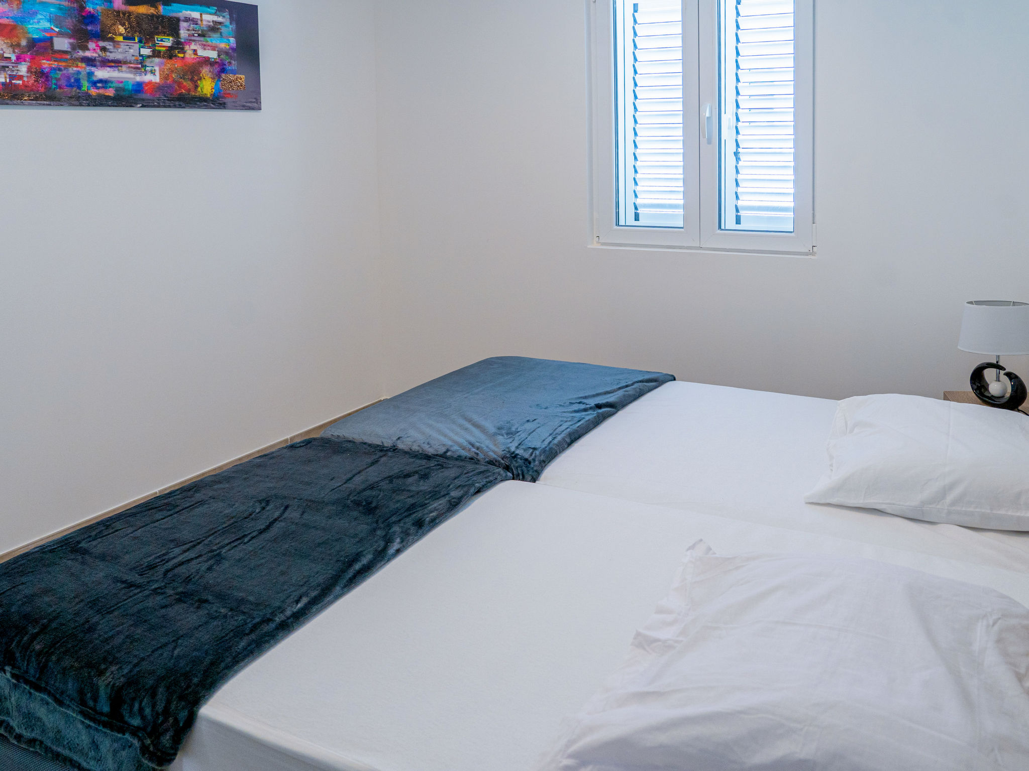 3-Zimmer-Haushälfte, ca. 75 m². Wohn-/Schlafraum mit Doppelbettcouch, Essplatz, offene Küche (4 Ceranfelder, Backofen, Mikrowelle, Geschirrspüler, Kühl-/Gefrierkombination, Kaffeemaschine), Terrassenausgang. Schlafzimmer mit franz. Bett. Zweibettzimmer. Dusche/WC.
