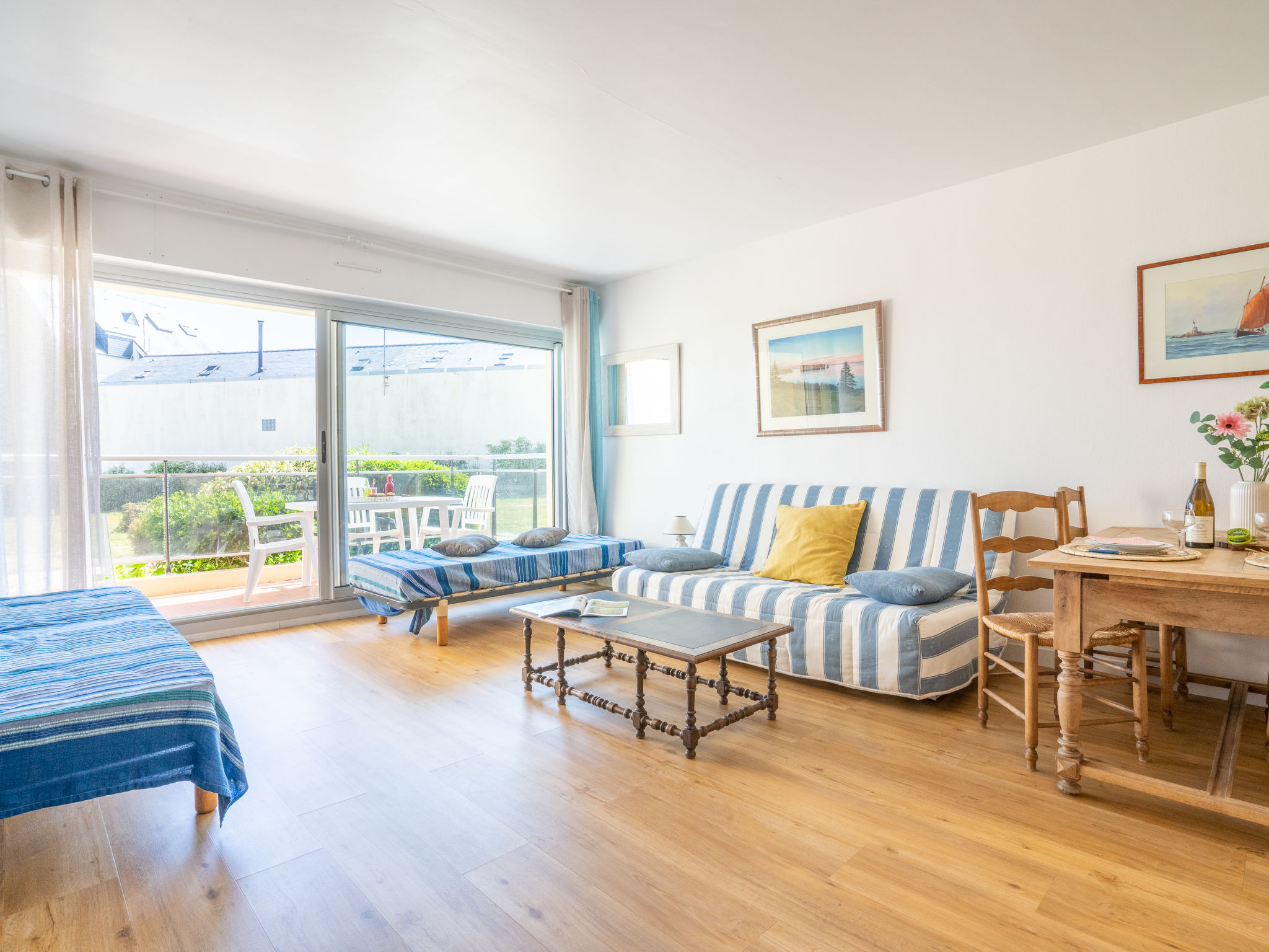Appartementhaus "Les Terrasses Port Maria", auf 3 Stockwerken. Am Ortsrand, 500 m vom Meer, 500 m vom Strand. Parkplatz. Einkaufsgeschäft, Lebensmittelgeschäft, Restaurant 350 m, Sandstrand 500 m. Sporthafen 400 m, Golfplatz (18 Loch) 26 km, Surfschule 5.4 km, Segelschule 4.5 km. Nahe gelegene Sehenswürdigkeiten: Casino 1.8 km, Thalasso 2.7 km, Alignements de Carnac 20 km, La Trinité sur Mer 29 km, Vannes 47 km, Belle-Ile-en-Mer.