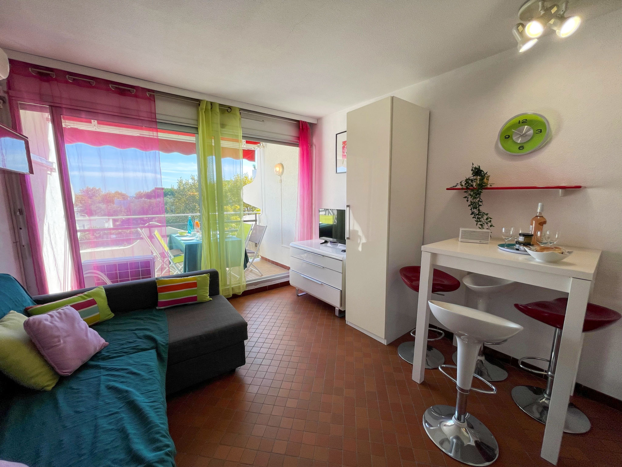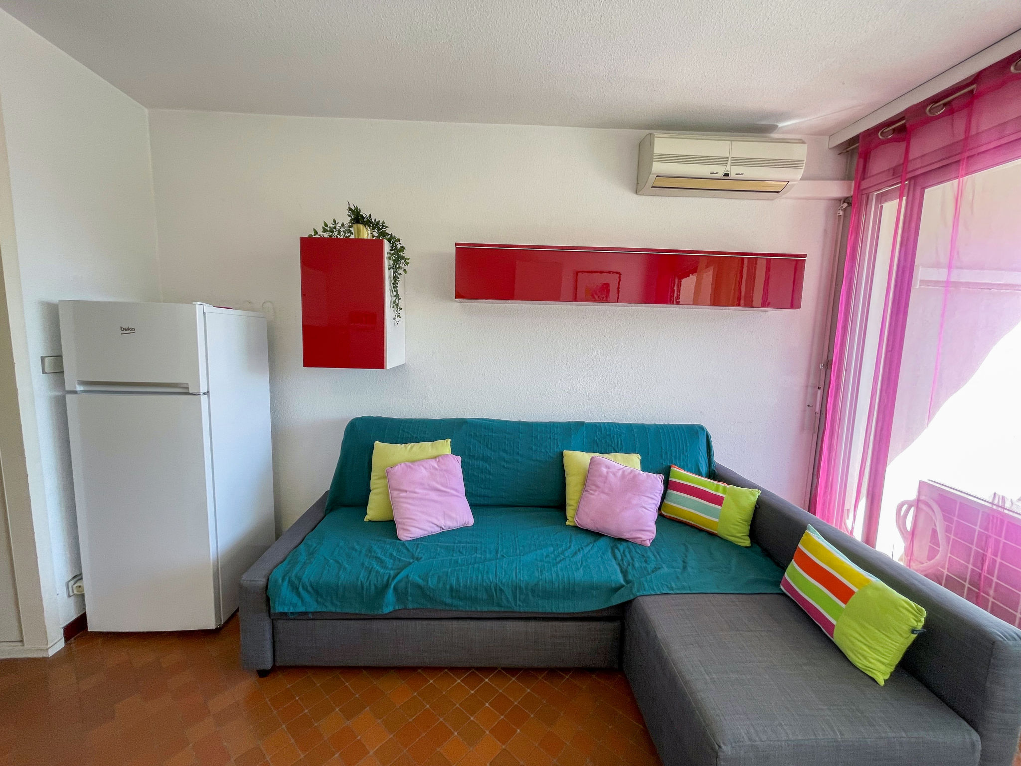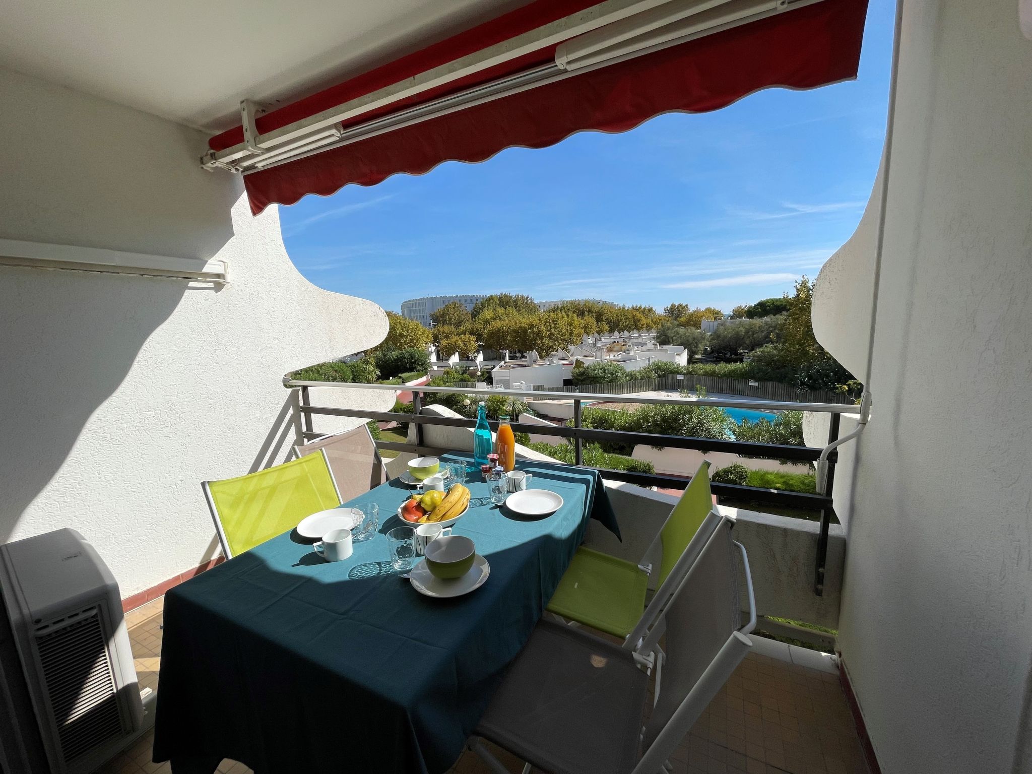 Residenz "Du Soleil". Im Ortsteil La Motte du Couchant, 1.2 km vom Zentrum, 200 m vom Meer, 150 m vom Strand. Zur Mitbenutzung: Schwimmbad (21 x 12 m, 60 - 190 cm tief, saisonale Verfügbarkeit: 15.Jun.-15.Sep.). Aussendusche. In der Anlage: Fahrstuhl. Öffentliche Parkplätze auf der Strasse extra. Einkaufszentrum, Restaurant, Bar 100 m, Bushaltestelle 250 m, Bahnstation "Montpellier" 25 km, Sandstrand 150 m, Hallenbad 3 km, Thermalbad "Thalasso Spa" 3 km. Sporthafen 900 m, Golfplatz (18 Loch) 3.5 km, Segelschule 700 m, Tennis 3 km, Reitstall 1 km. Nahe gelegene Sehenswürdigkeiten: Le Seaquarium du Grau Du Roi 10 km, Les Remparts d'Aigues Mortes 12 km, Les Saintes Maries de la Mer 40 km. Bitte beachten: Flugplatz in der Nähe 20 km vom Haus. In diesem Haus sind weitere Ferienwohnungen mietbar.