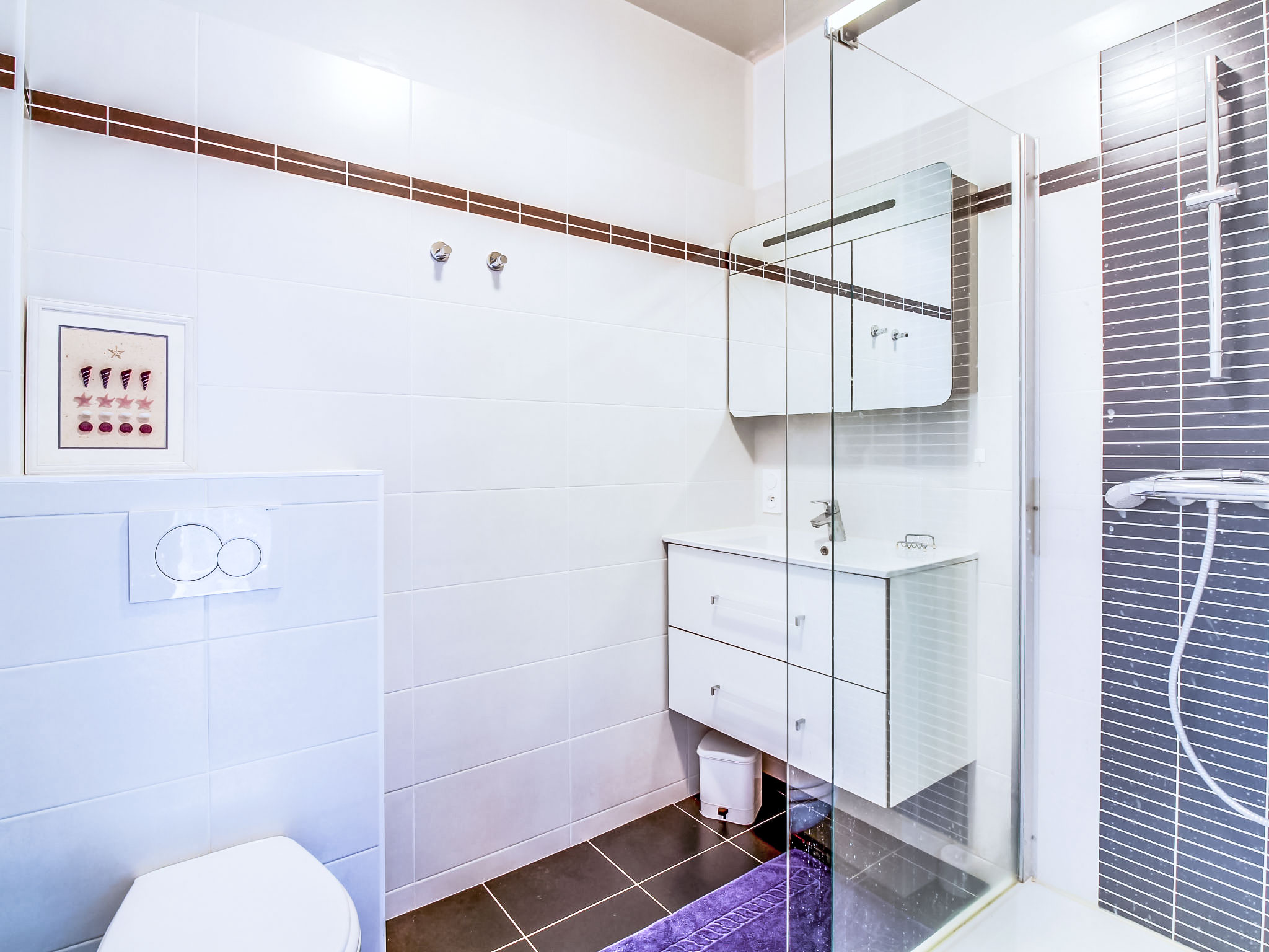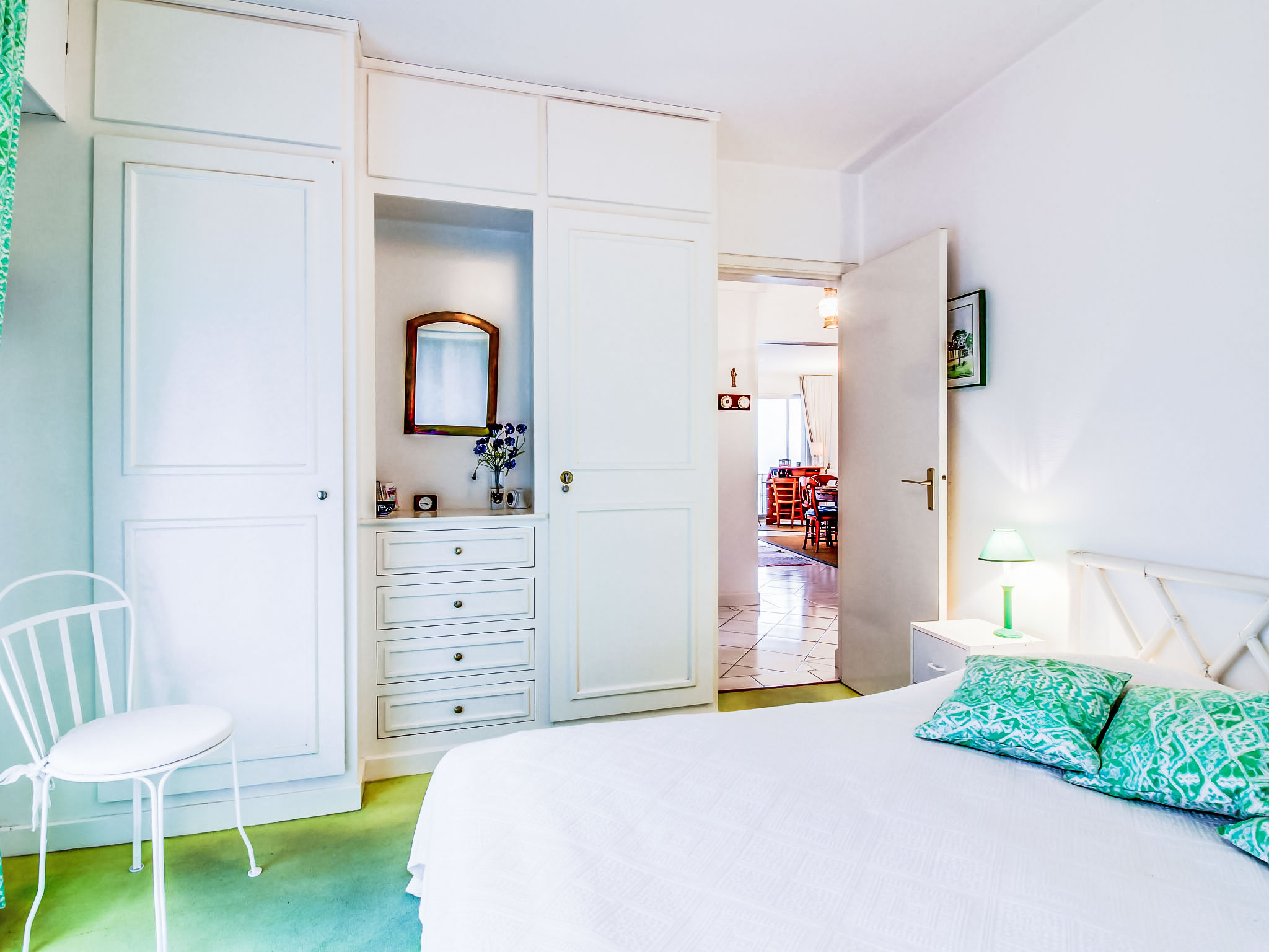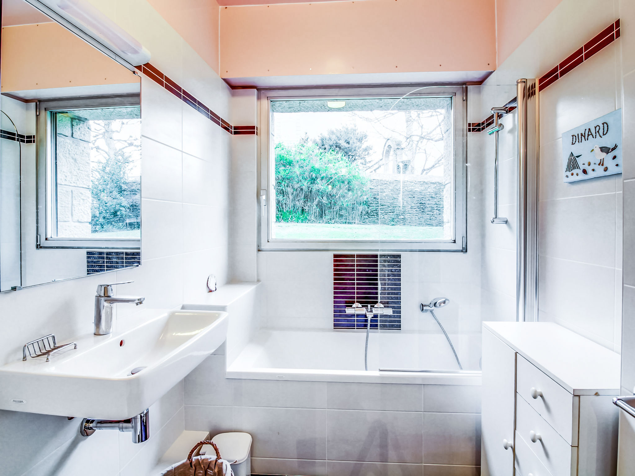 Residenz "La Baie". Im Ortsteil 'Le Bec de la Vallée', ruhige Lage in einem Wohnquartier, 50 m vom Meer, 350 m vom Strand. In der Anlage: Fahrstuhl. Einkaufsgeschäft 300 m, Lebensmittelgeschäft 450 m, Restaurant 300 m, Bahnstation 11 km, Sandstrand "L'Ecluse" 350 m, Park "Port Breton" 1.5 km, Freibad 600 m, Thermalbad "Thalassa de Dinard" 2.5 km. Golfplatz 7.2 km, Segelschule 700 m, Tennis 1.5 km, Minigolf 2 km, Reitstall 1.5 km. Nahe gelegene Sehenswürdigkeiten: Le Grand Aquarium de Saint Malo 8.4 km, Saint Malo et ses remparts 11.5 km, Cancale et ses Huitres 22 km, Dinan 23 km, Fort Lalatte / Le Cap Fréhel 36 km, Le Mont Saint Michel 60 km. Bitte beachten: Die Residenz wird durch elektrische Tore geschlossen. Autobahn 11 km vom Haus. Flugplatz 7 km vom Haus.