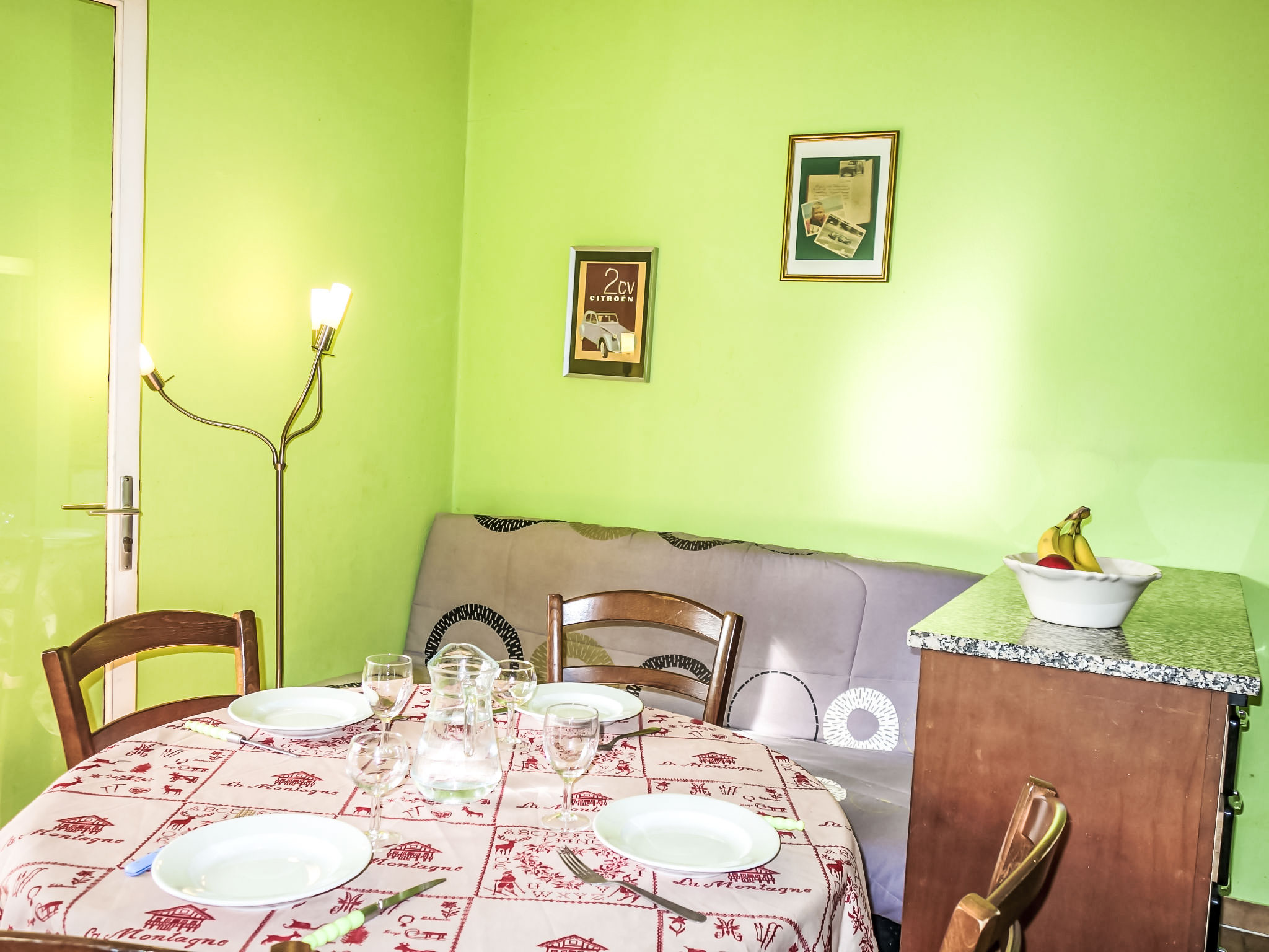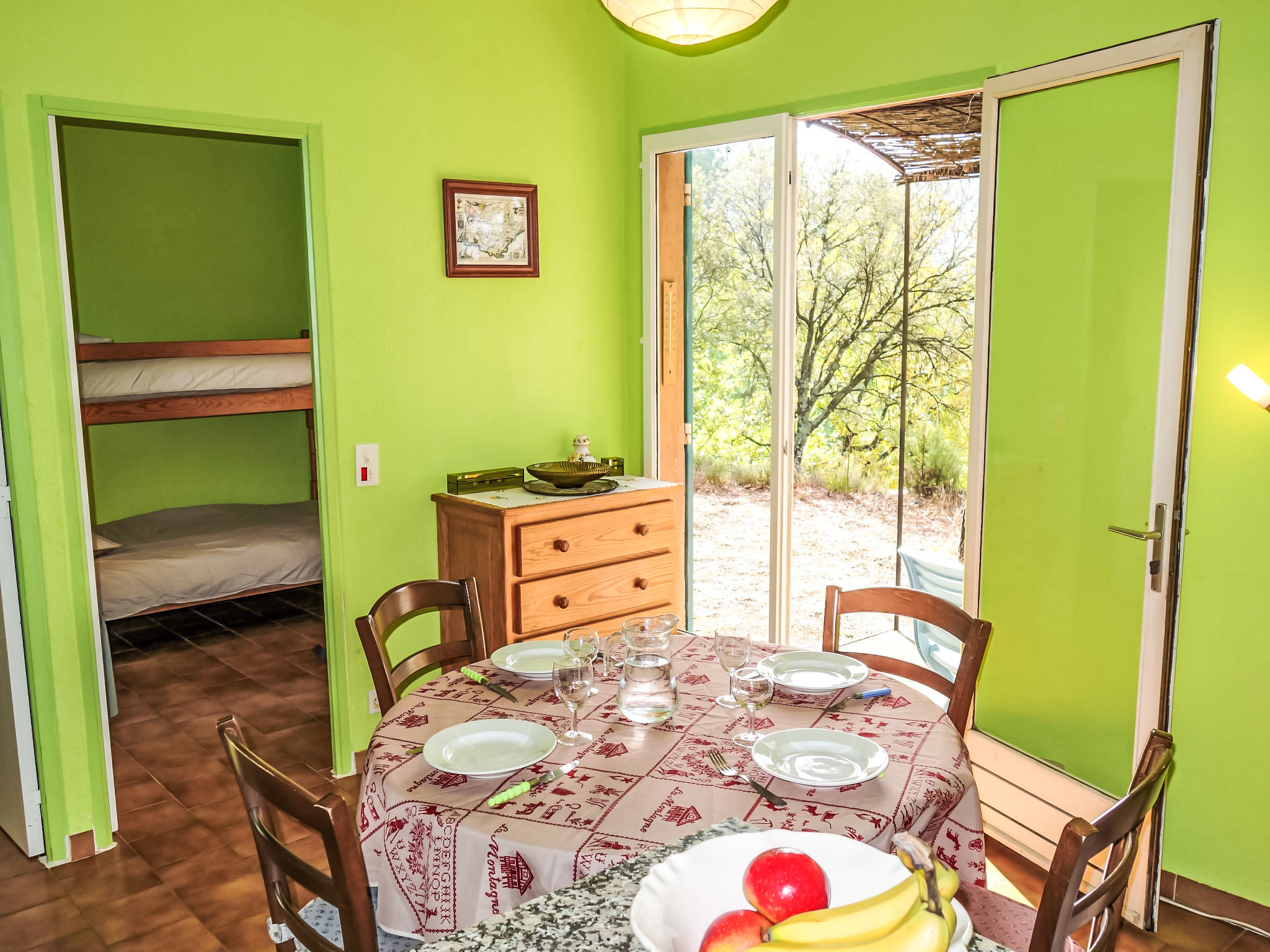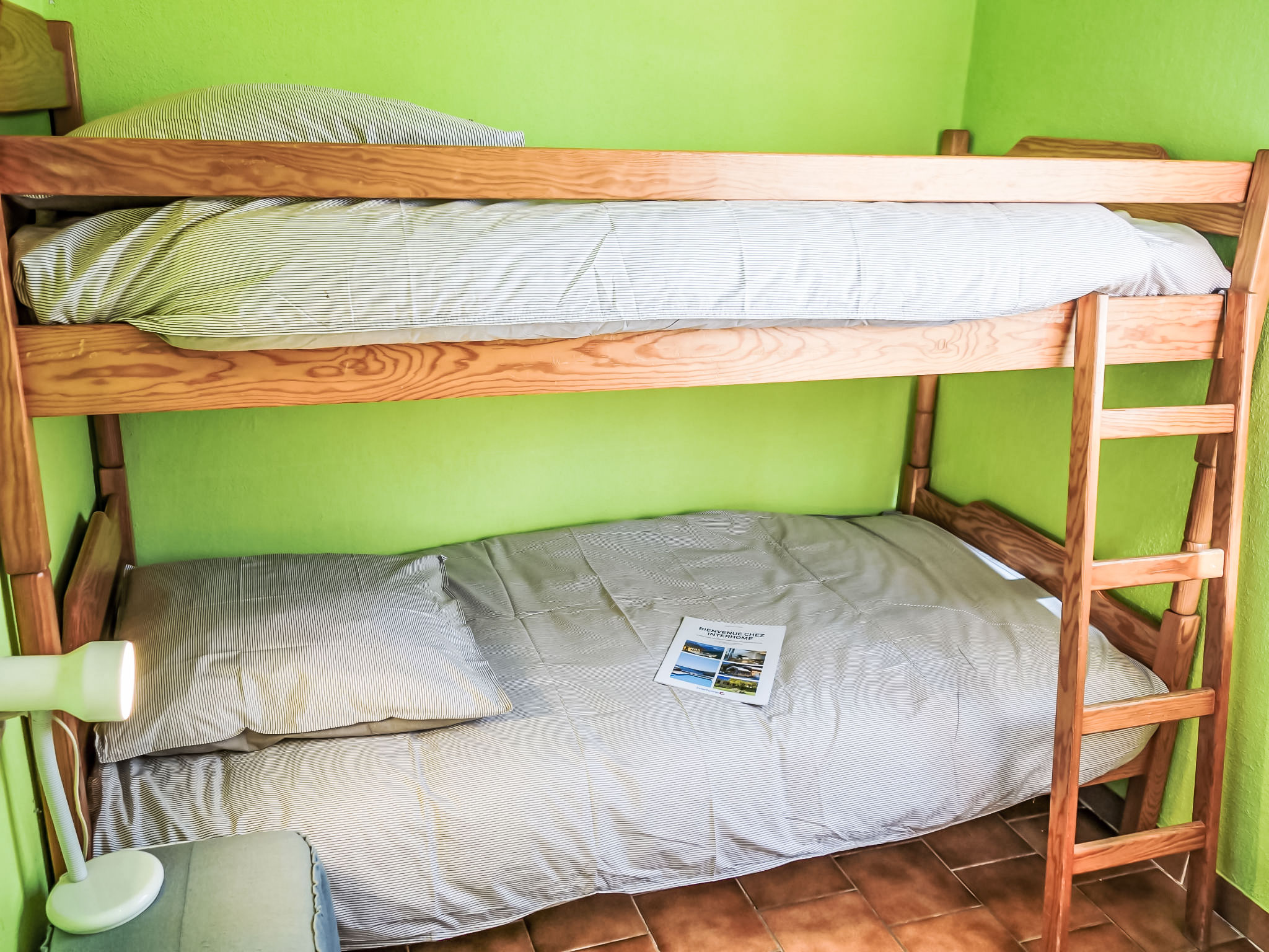 3-Zimmer-Haus 35 m2. Objekt geeignet für 2 Erwachsene + 2 Kinder. Rustikal eingerichtet: Wohn-/Esszimmer. Ausgang zur Terrasse. 1 Zimmer mit 1 franz. Bett (140 cm). 1 Zimmer mit 1 x 2 Etagenbetten (80 cm). Kochnische (2 Kochplatten, Backofen, elektrische Kaffeemaschine). Bad, sep. WC. E-Heizung. Liegestühle. Bitte beachten: 1 Haustier/Hund erlaubt. Rauchmelder. Inserat einer Privatperson nach Artikel 155, IV, CGI.